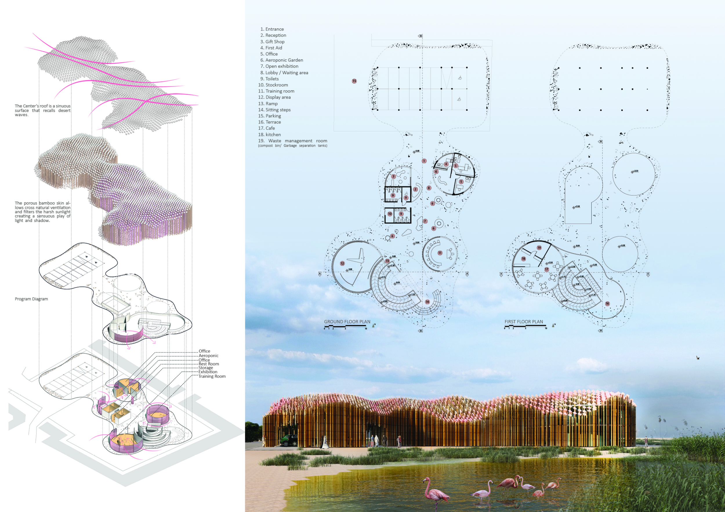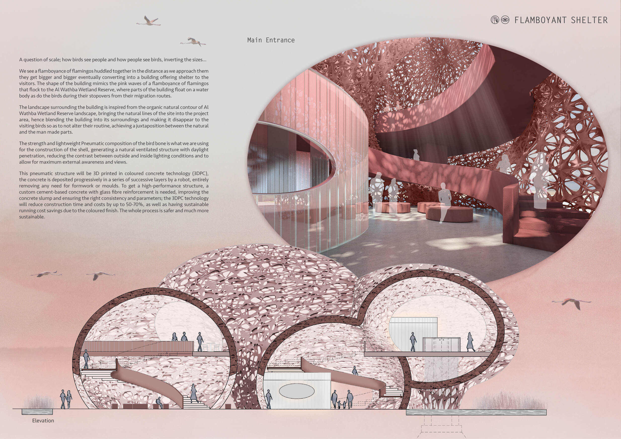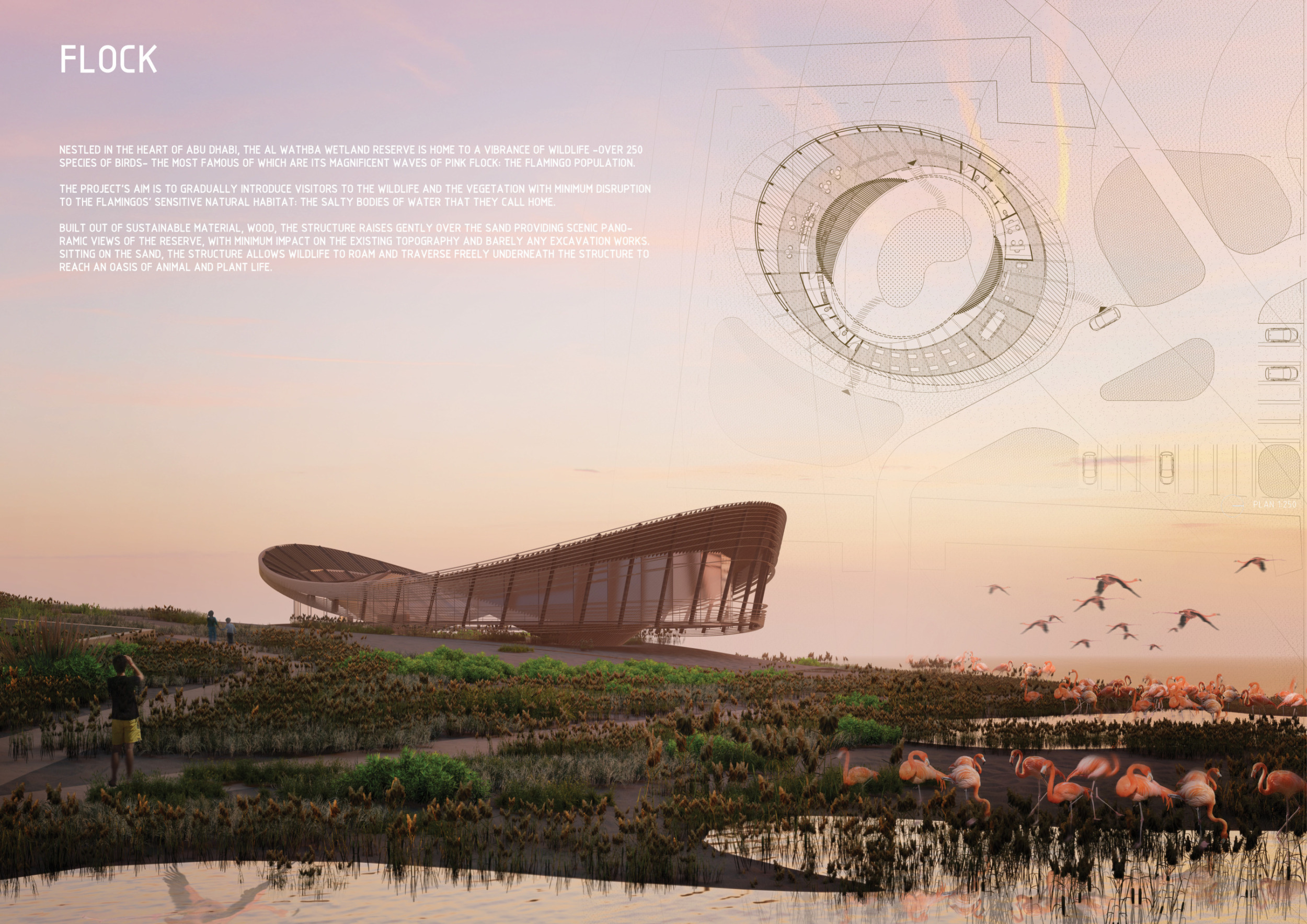 Following the success of the Flamingo Observation Tower competition, the Abu Dhabi Flamingo Visitor Center challenge is the second Bee Breeders competition set in the Al Wathba Wetland Reserve in partnership with the EAD. The EAD will consider winning proposals for construction.
