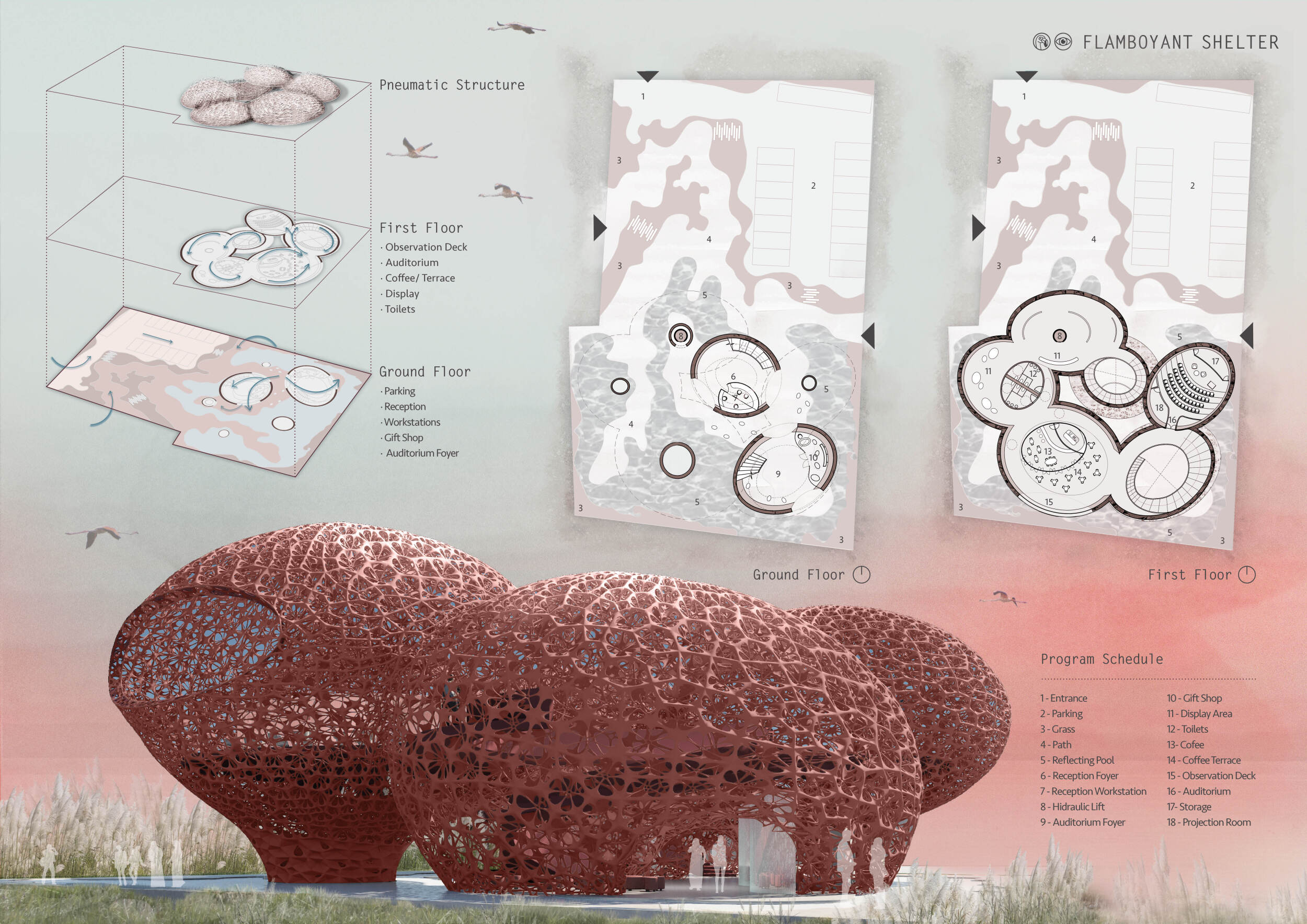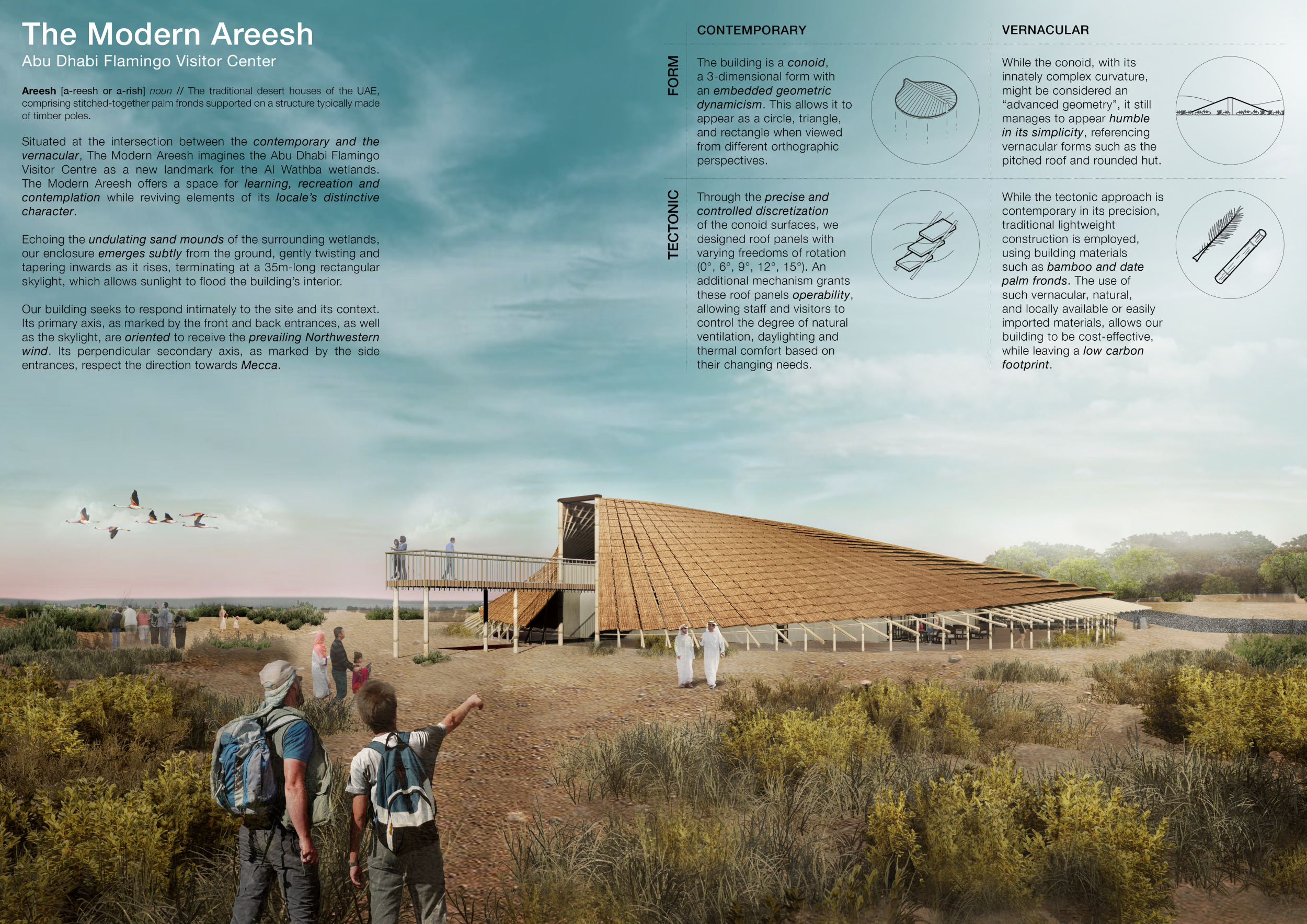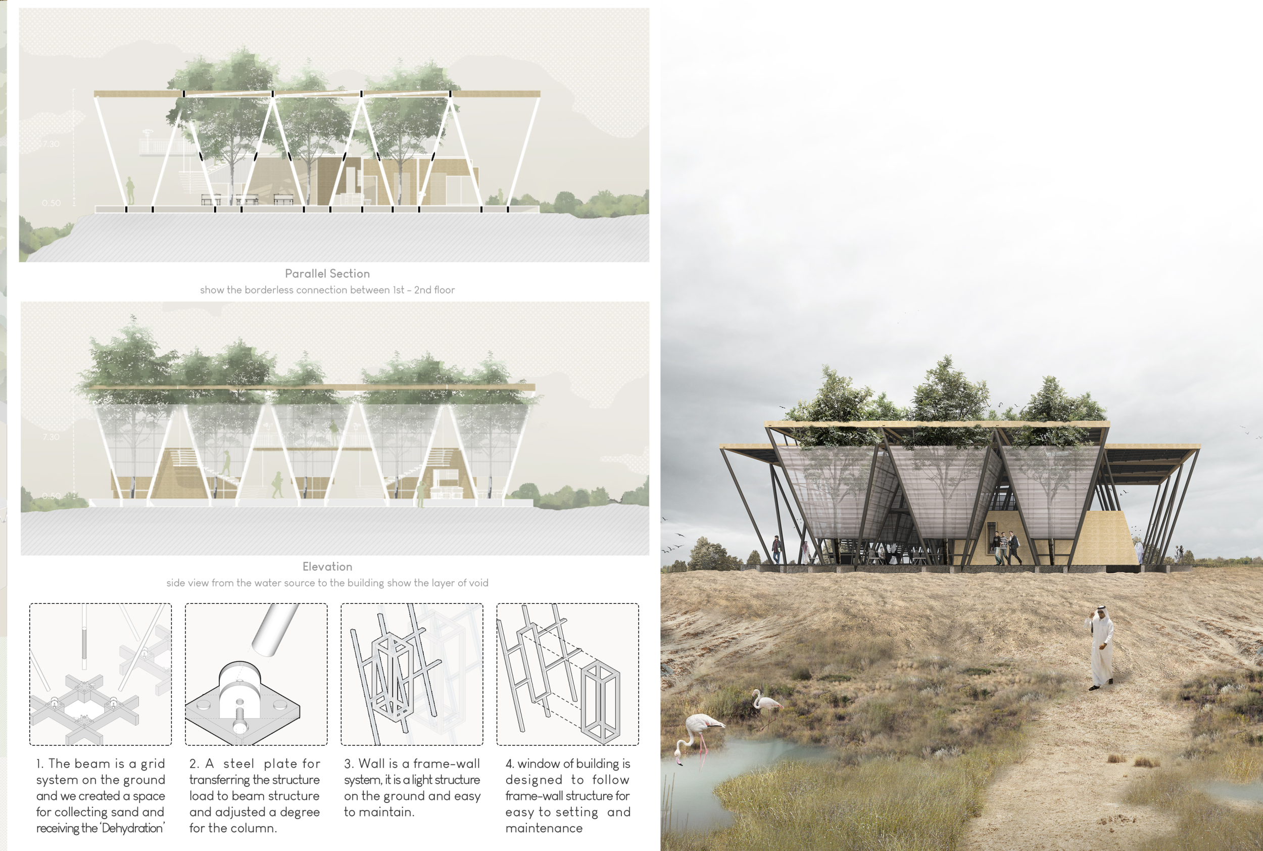 Following the success of the Flamingo Observation Tower competition, the Abu Dhabi Flamingo Visitor Center challenge is the second Bee Breeders competition set in the Al Wathba Wetland Reserve in partnership with the EAD. The EAD will consider winning proposals for construction.