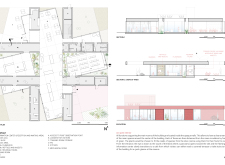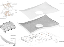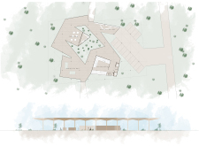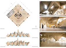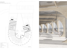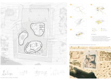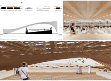 The Dune offers a design that makes use of the entire site. It conceives a series of dispersed pavilions unified under a single roof canopy with a central void - its form is reminiscent of SANAA’s 2009 Serpentine Pavilion, or the same studio’s later multipurpose Grace Farms project. The jury writes of The Dune: “It feels appropriate to the needs of the site.
