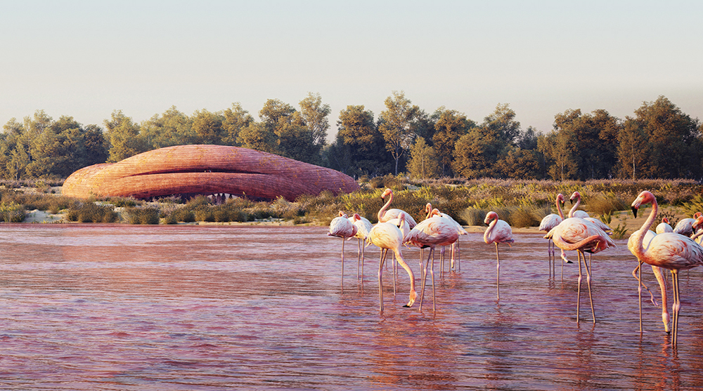 The Abu Dhabi Flamingo Visitor Center competition was the second collaboration between Buildner architecture competitions and Abu Dhabi Environment Agency (EAD). Participants were tasked withdesigning a visitor center in the Al Wathba Wetland Reserve. The jurysought designs with both sustainability and constructability in mind, and the shortlisted entries were those that showed respect for the reserve’s fragile ecosystem.