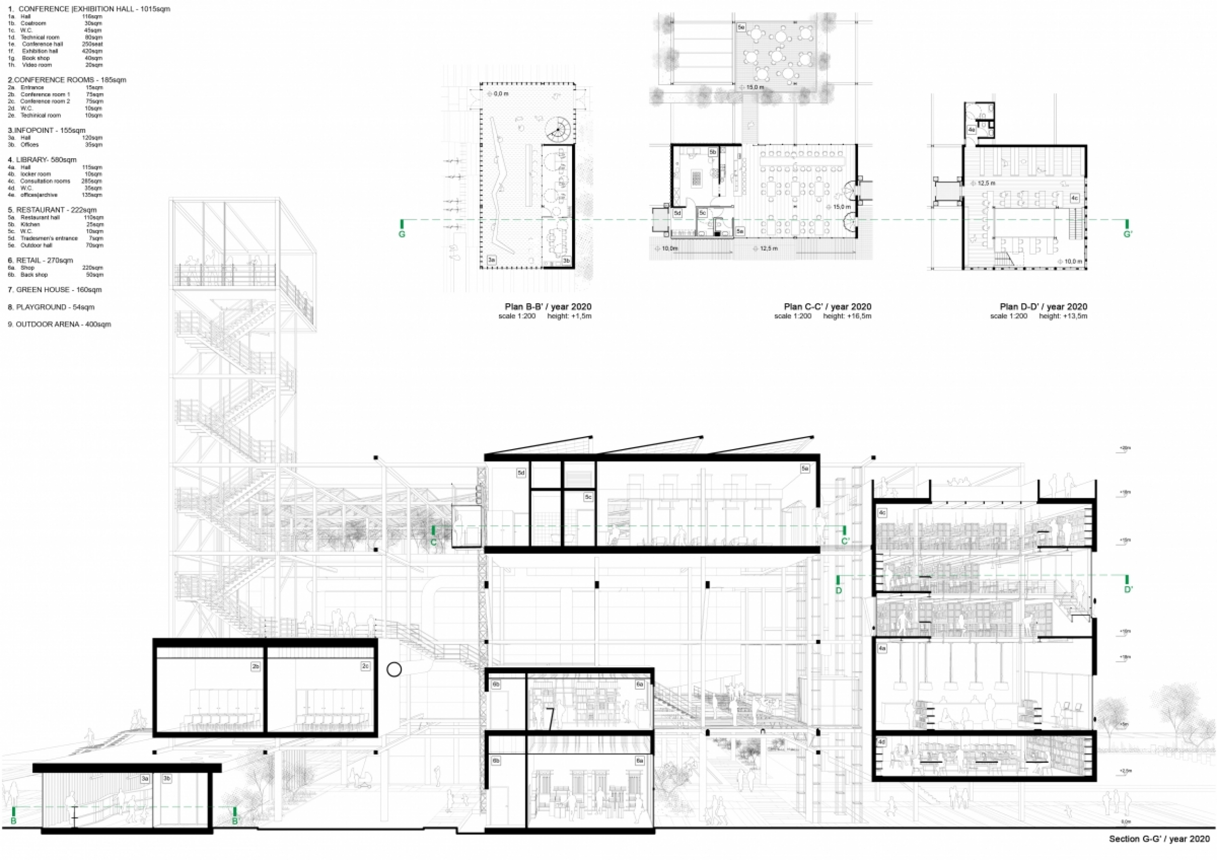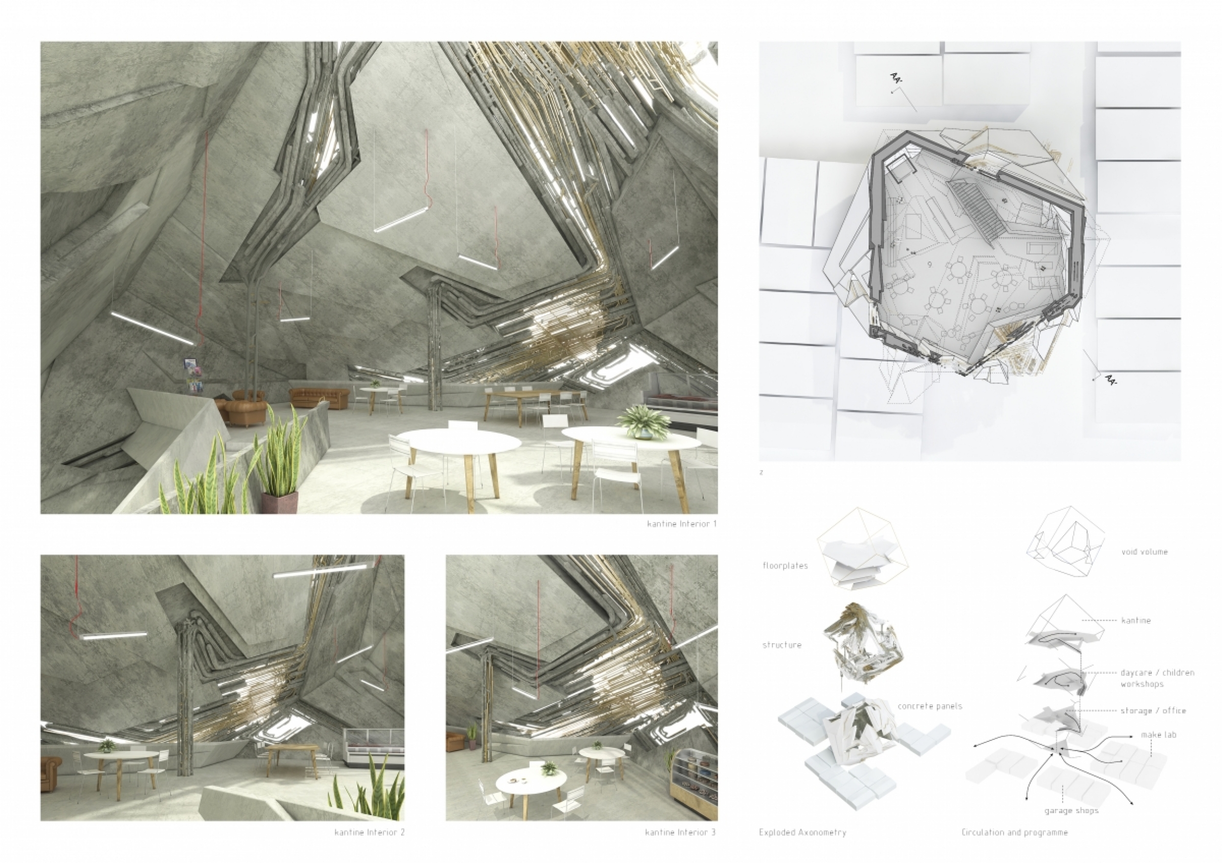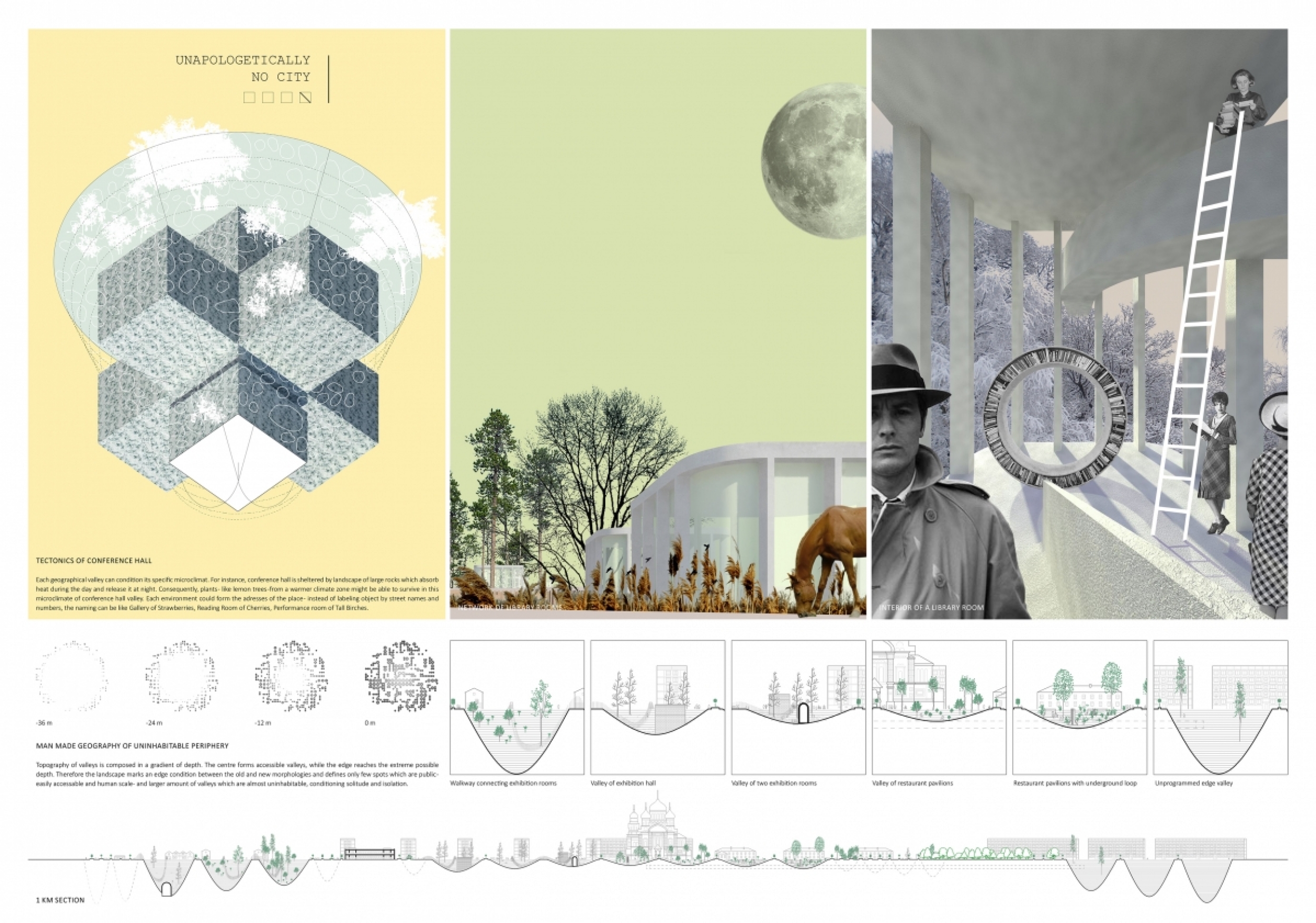 Taking cues from former Soviet bunker design, the proposal reinterprets the heavy and closed concrete form as an open centre for civic activity, elegantly incorporating light, landscape and public space at a variety of scales. The jury was impressed with the submission’s professionalism, and the clarity and refinement of its diagrams.