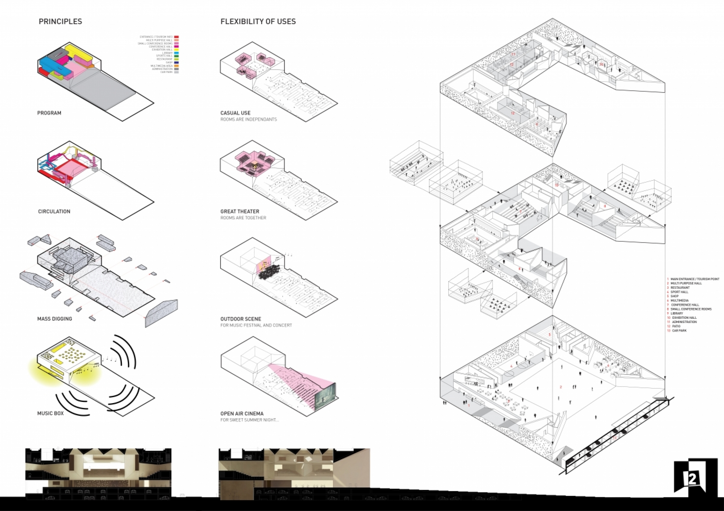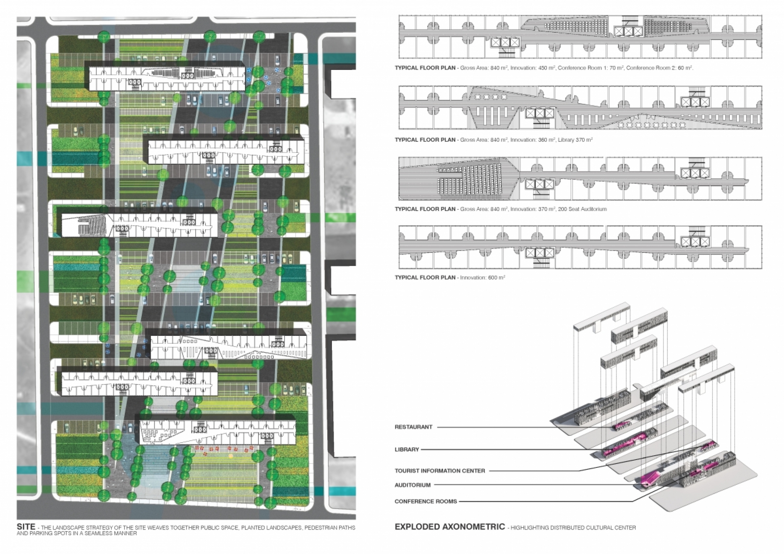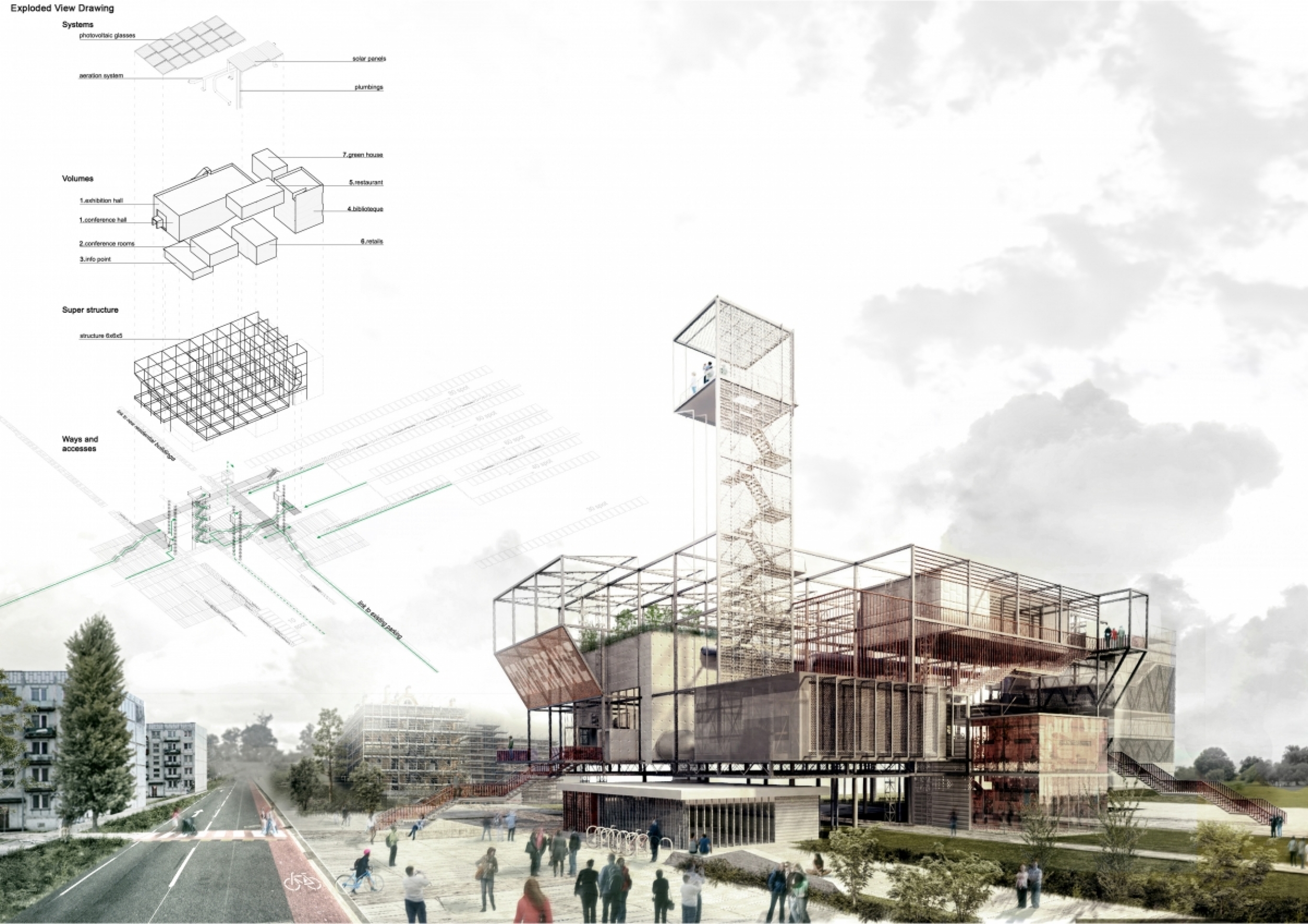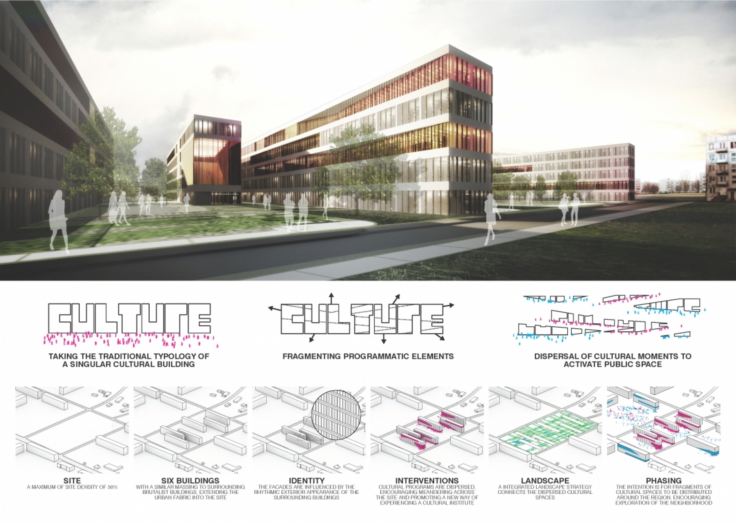 Taking cues from former Soviet bunker design, the proposal reinterprets the heavy and closed concrete form as an open centre for civic activity, elegantly incorporating light, landscape and public space at a variety of scales. The jury was impressed with the submission’s professionalism, and the clarity and refinement of its diagrams.