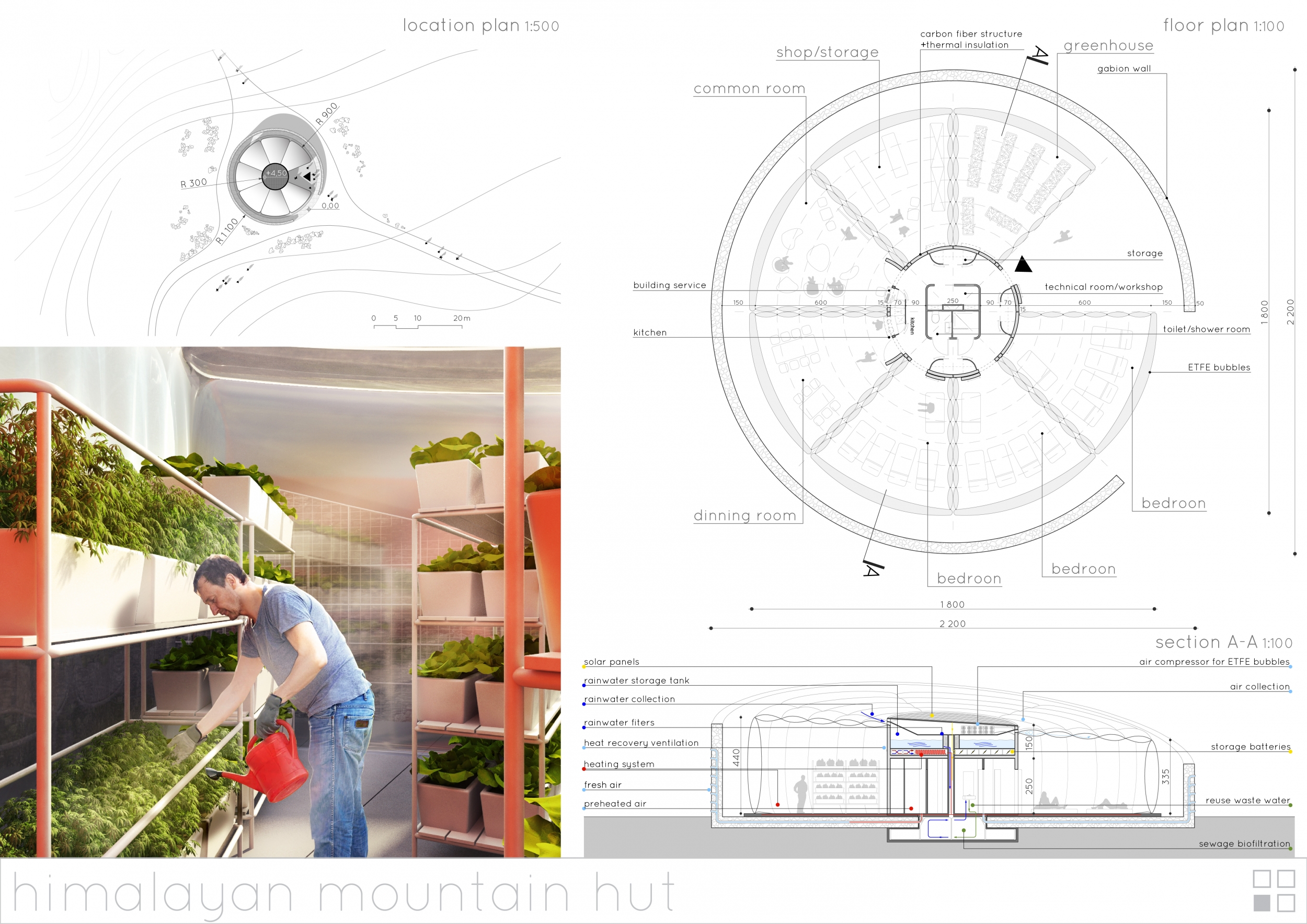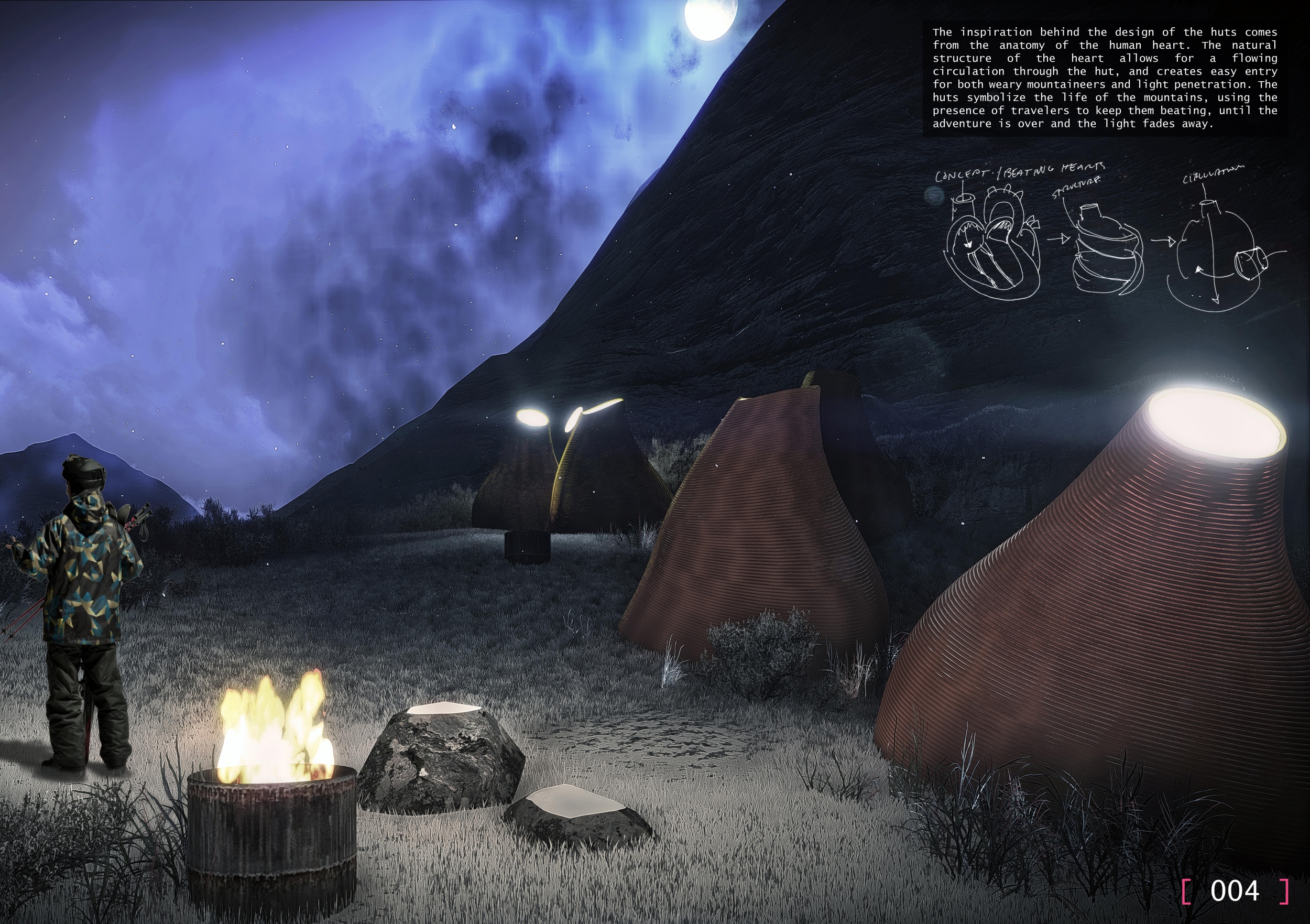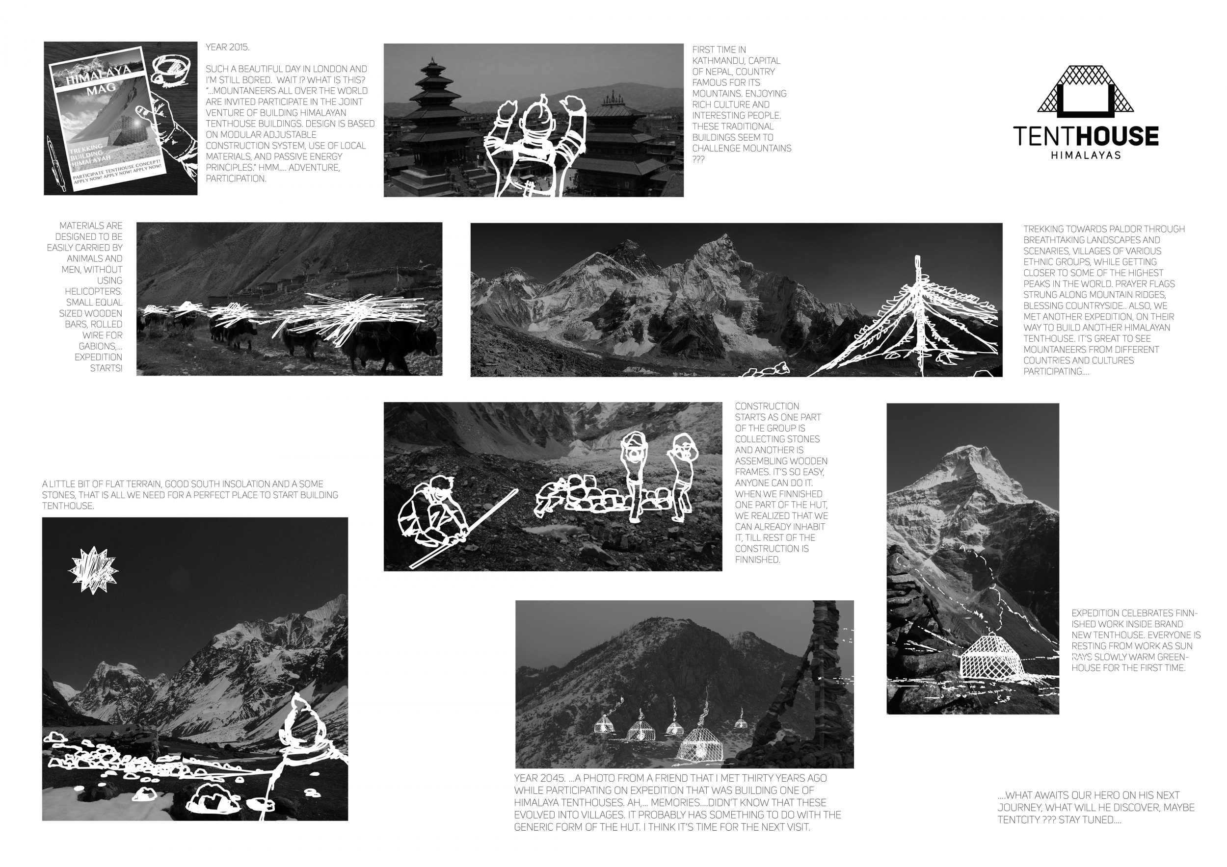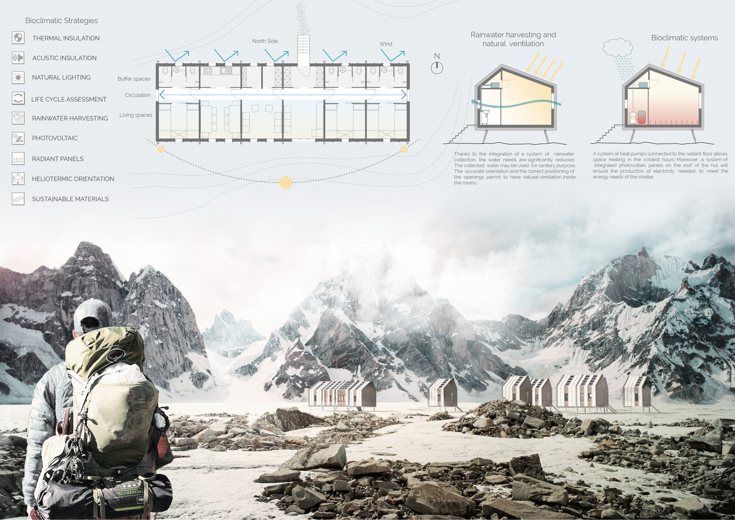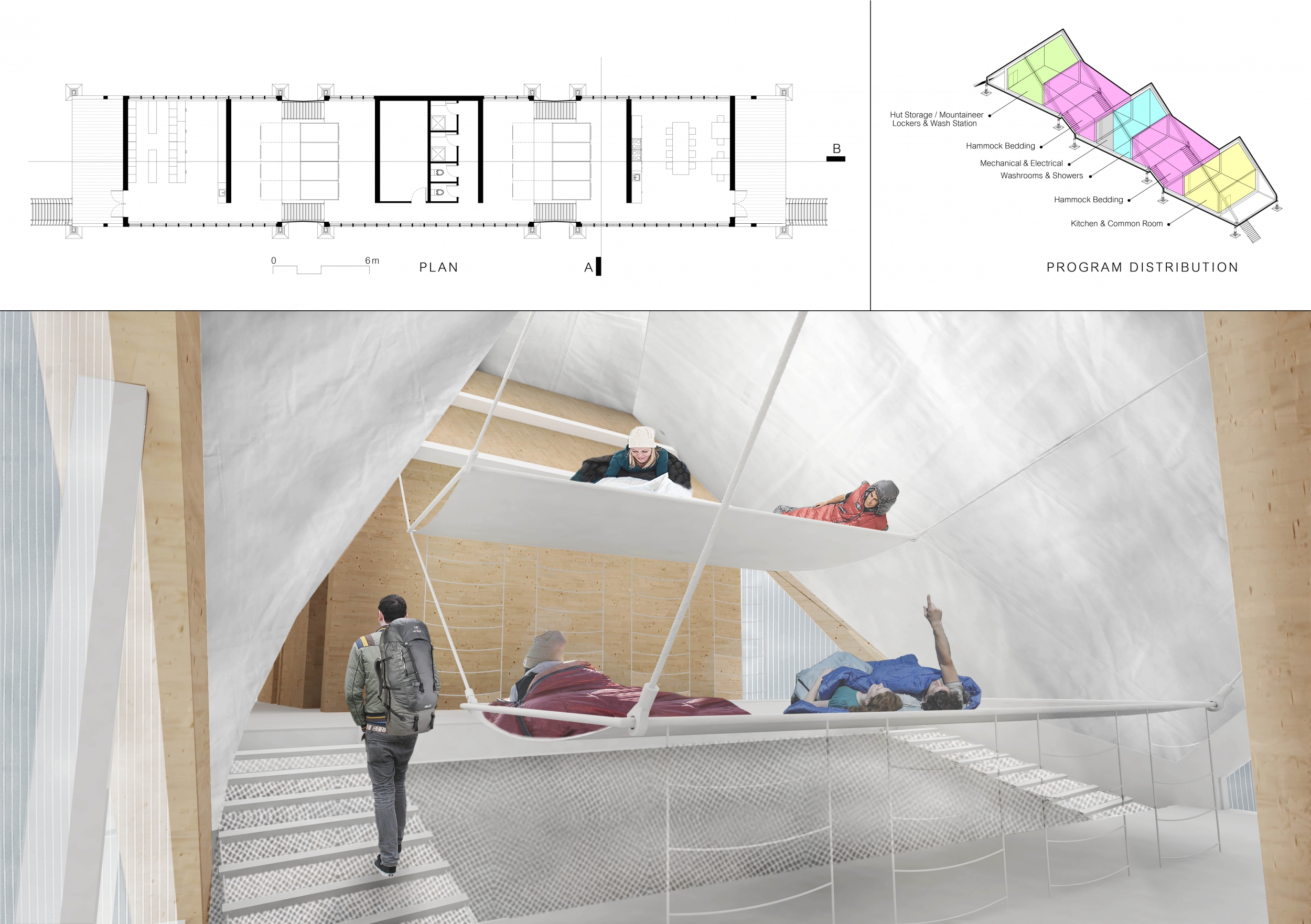 Each entry was evaluated on a number of criteria, including but not limited to: strength and clarity of concept, originality, quality of presentation, appropriateness to context, and most importantly, its constructability and efficiency at a remote site with an extreme climate. Although a Himalayan Mountain Hut is primarily for shelter during long treks, the judges placed additional focus on the hut's ability to serve the culture and community of mountaineering. Successful proposals were not only buildable, affordable, efficient with systems, and efficient with transport, but they also incorporated comfortable sleeping arrangements and a potential gathering space to replace and/or supplement the traditional camp fire, around which stories are shared and bonds are made. While isolated in extreme climates, one's humanity becomes an important component in surviving nature's perils, and successful entries embraced the idea of gathering for weary trekkers.
