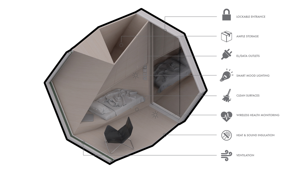 Homed has garnered media attention with coverage by the World Economic Forum, Architectural Digest, and Business Insider. When asked if he was surprised about the project’s positive reception, Tjeldflaat said: “I believe this is because it is an optimistic proposal that addresses a pressing societal issue in an innovative way.” ●