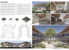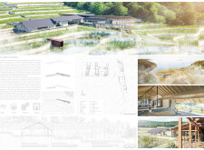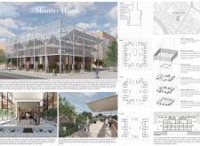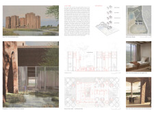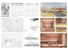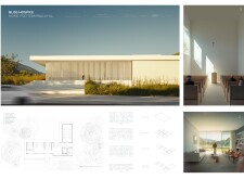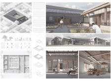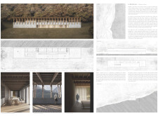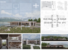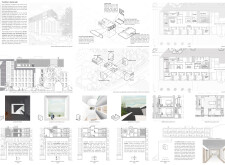The project is well-presented, featuring a balanced layout with clear, modest renderings on the right and a combination of drawings, diagrams, and sketches on the left. However, the presentation could be improved with concise texts that highlight key ideas, using subtitles or sections for easier and more direct reading. Adding annotations to the imagery would help clarify materials, spaces, and design concepts. Read more Including a detailed architectural element—such as a material breakdown or wall/roof structure—would provide greater complexity and insight into the building's systems, beyond the heavy dark lines currently shown in the plans and sections.