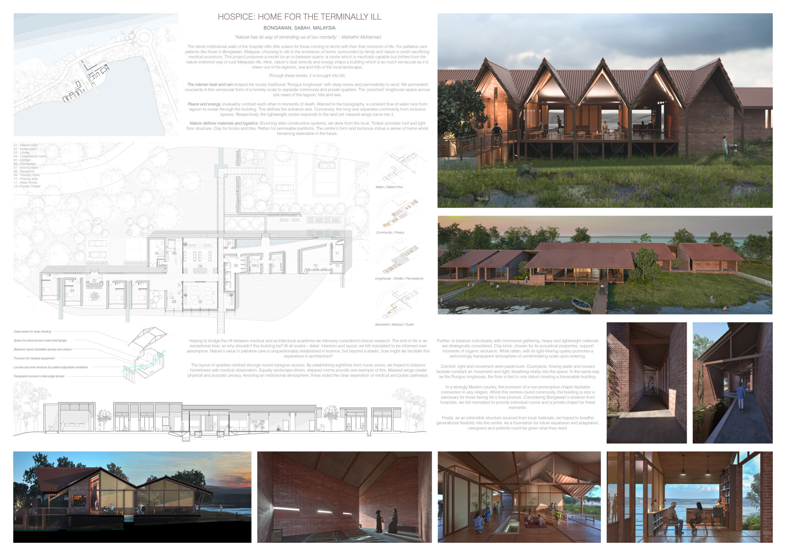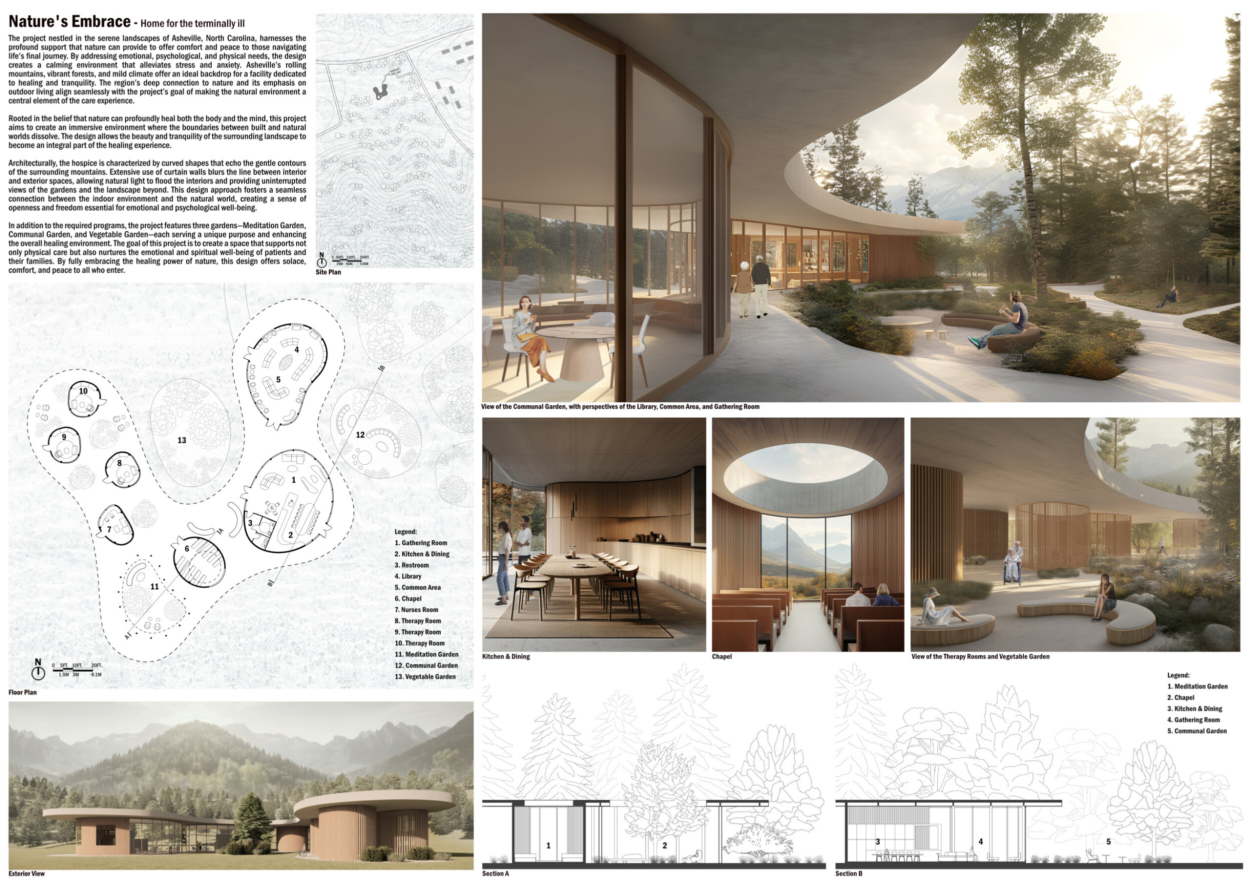 This year's competition continued exploring design concepts that go beyond medical treatment. Architects were invited to innovate and develop environments that promote comfort, dignity, and a sense of community for those dealing with life-threatening conditions.