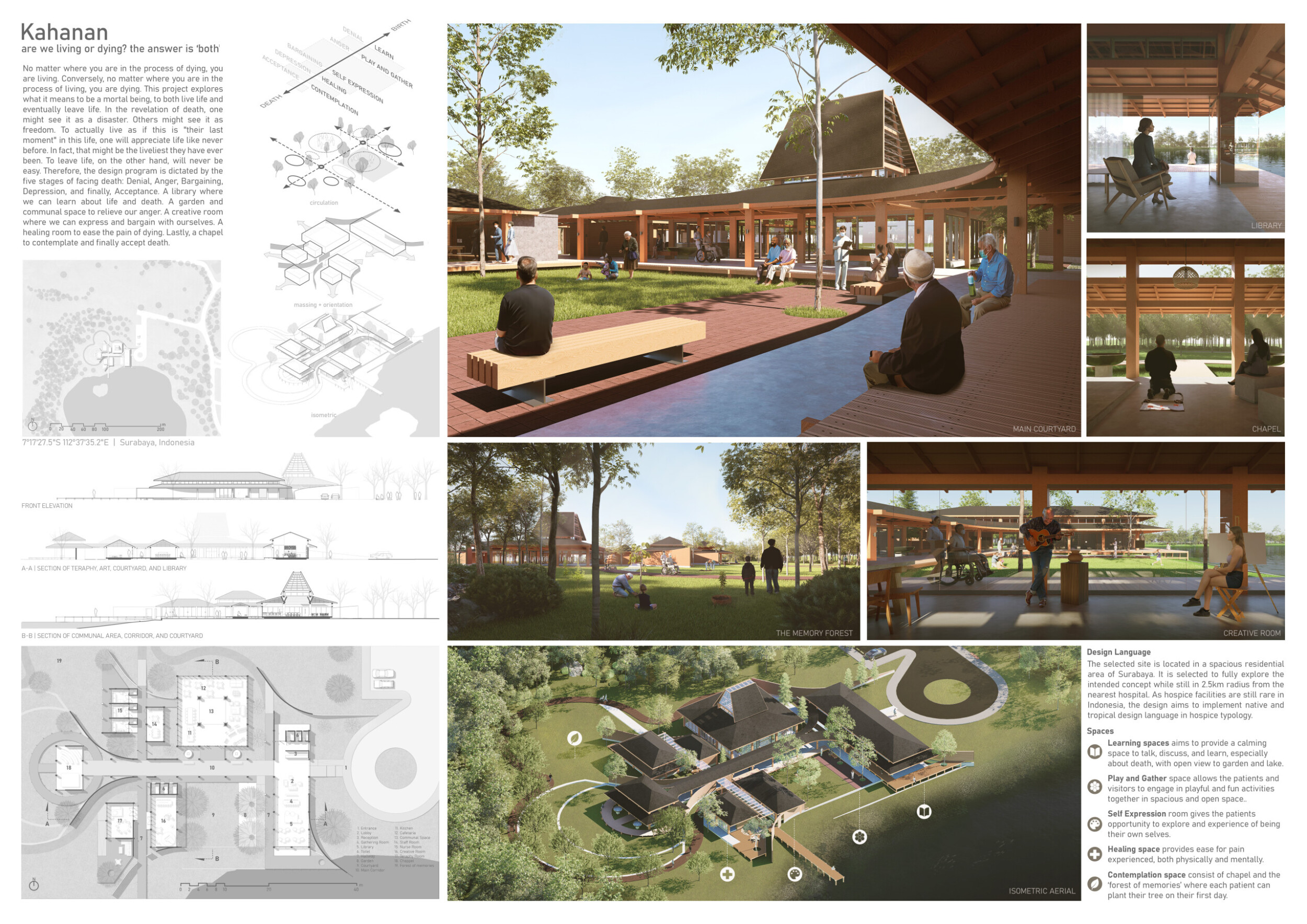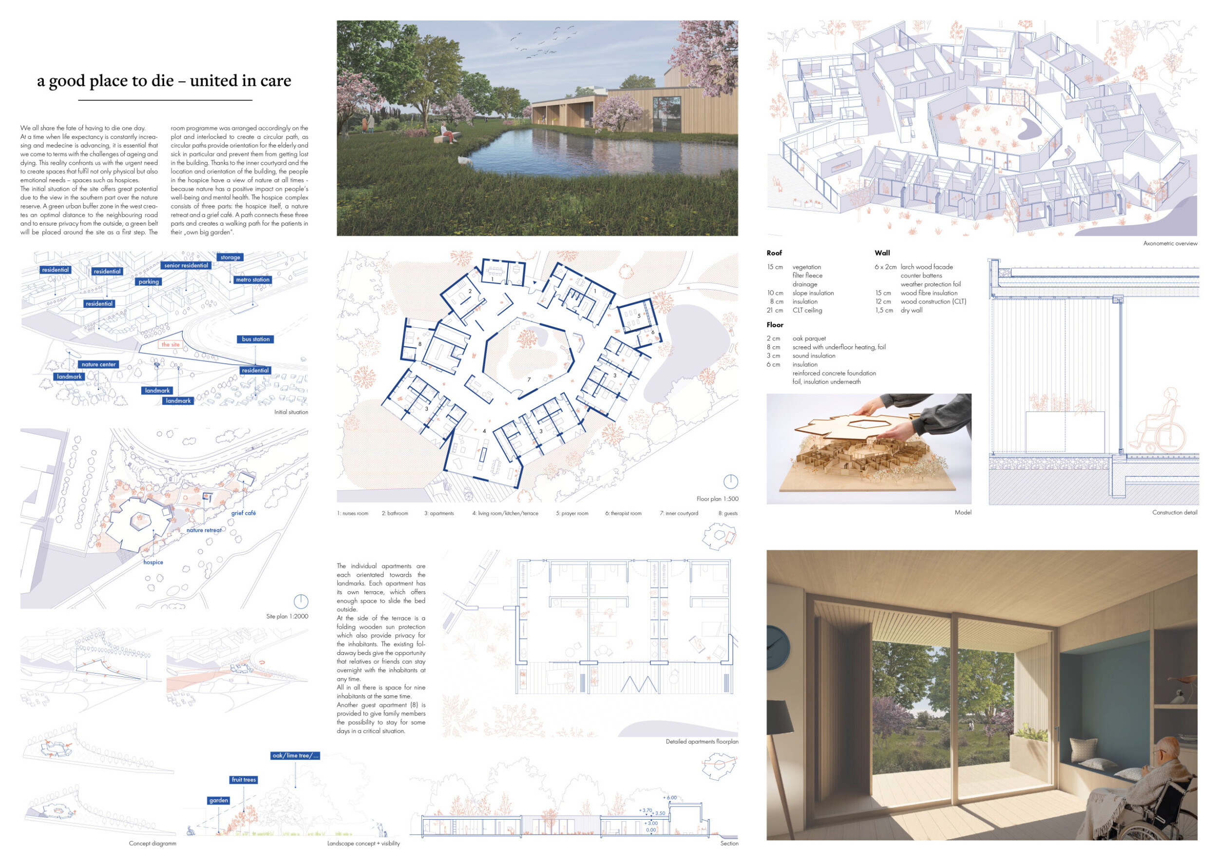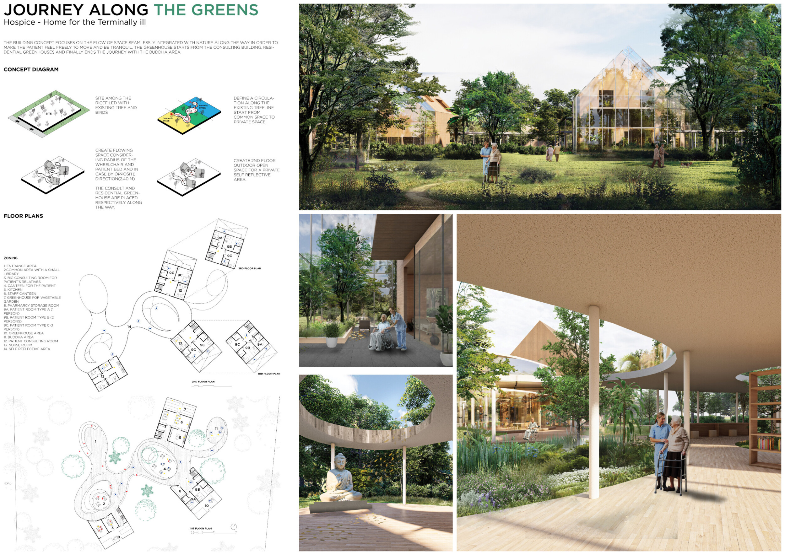 International ideas competitions and design competitions provide the best opportunities to design according to a brief and scope of work. From concept development and site selection or analysis (if already provided) to architectural design and its refinement, these challenges allow for remarkable outcomes where architecture is created with its users in mind. Participating in these competitions fosters critical thinking and adaptability, particularly when addressing sensitive projects like the Hospice, which is deeply meaningful to our team. By embracing diverse contexts, this process encourages thoughtful, inclusive, and responsive architectural practices that resonate with both place and purpose.