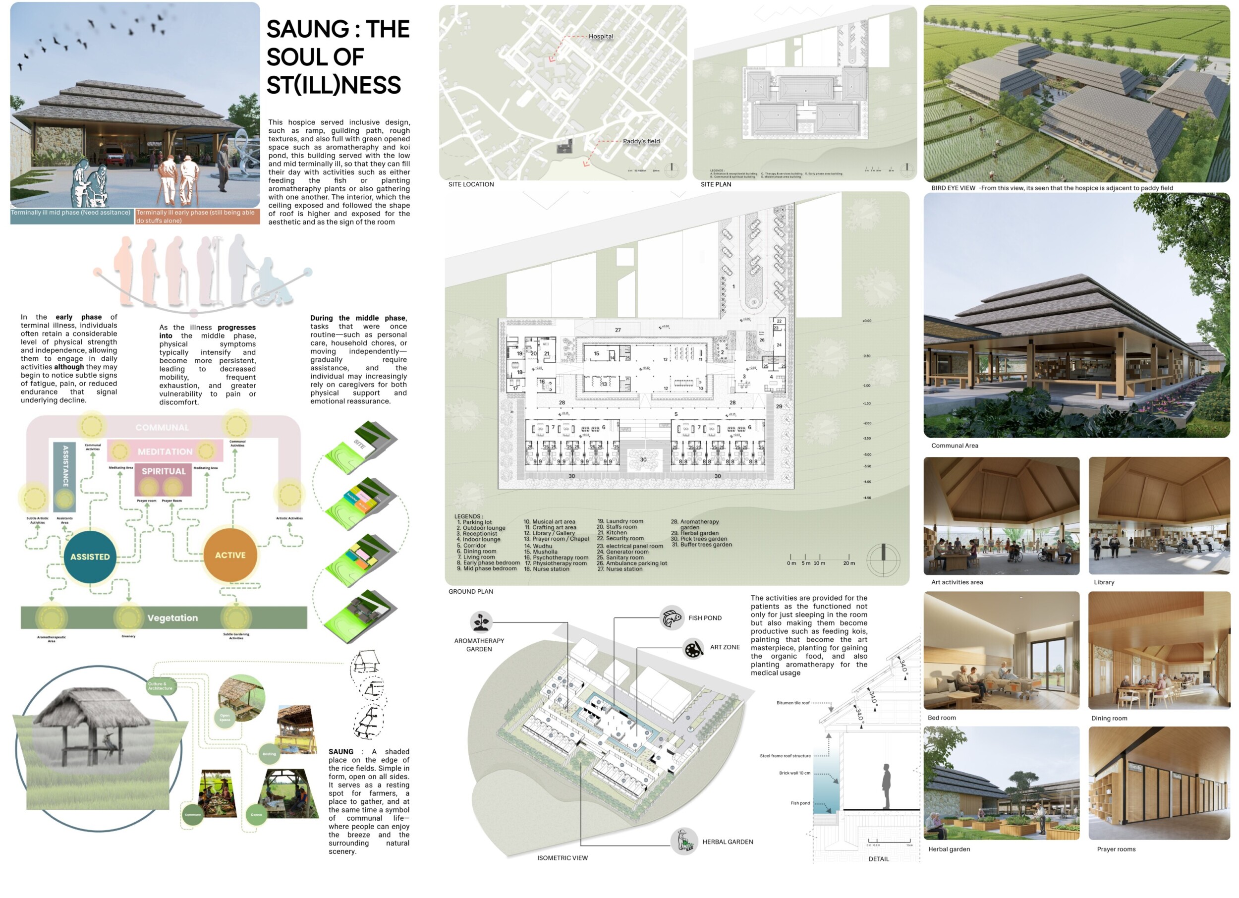 Following review by an international jury panel, prize winners and honorable mentions have been selected for their conceptual clarity, spatial sensitivity, and thoughtful interpretation of the brief. Together, the selected projects demonstrate how architecture can shape environments of care that are not only functional but deeply humane, offering spaces where reflection, companionship, and dignity remain central to the experience of end-of-life care.