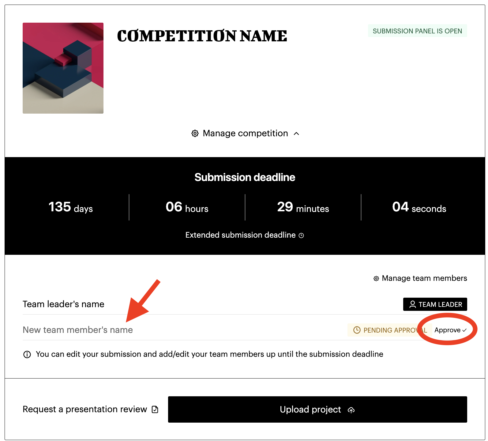 Take note, as a team leader, you have exclusive rights to appoint new team members, approve their participation, and remove team members if necessary. This is an important aspect of managing your competition team.