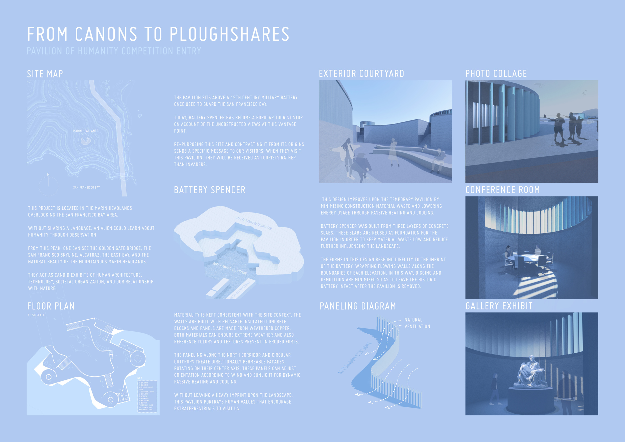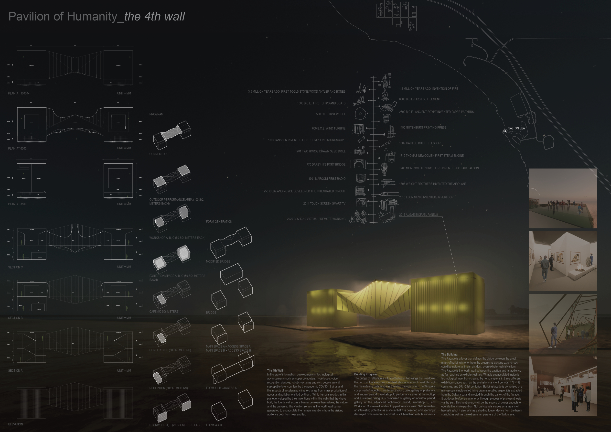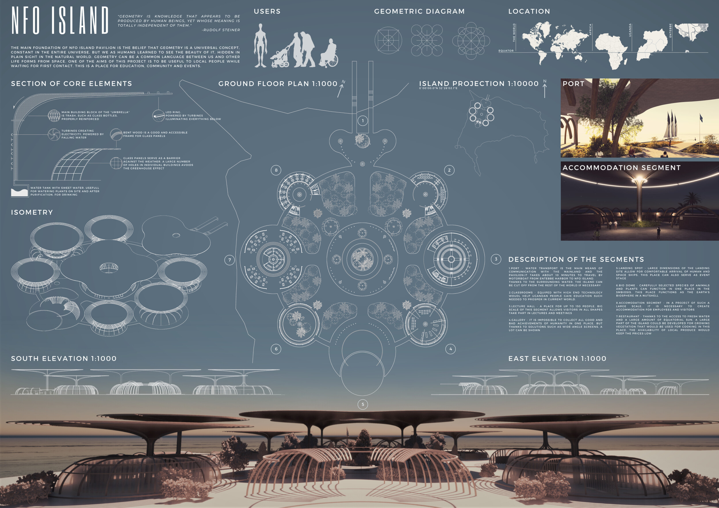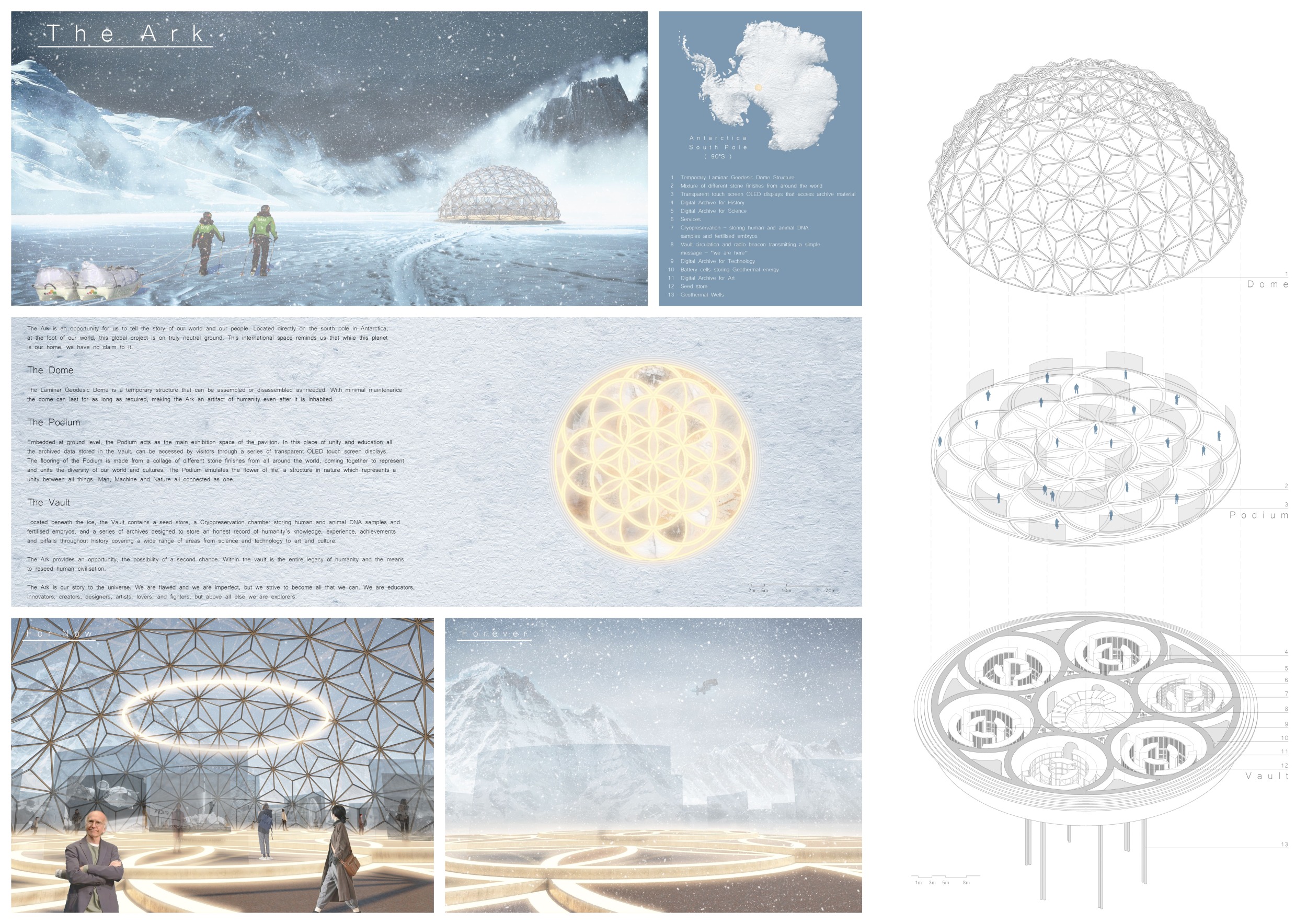 The Pavilion of Humanity: First Contact ideas competition tasked participants with designing a structure encapsulating the best and brightest of our species in a way that, should we ever be visited by extraterrestrial lifeforms, would appropriately communicate the achievements of human civilization in a single space, constructed on a site chosen by the participants located anywhere on Earth.