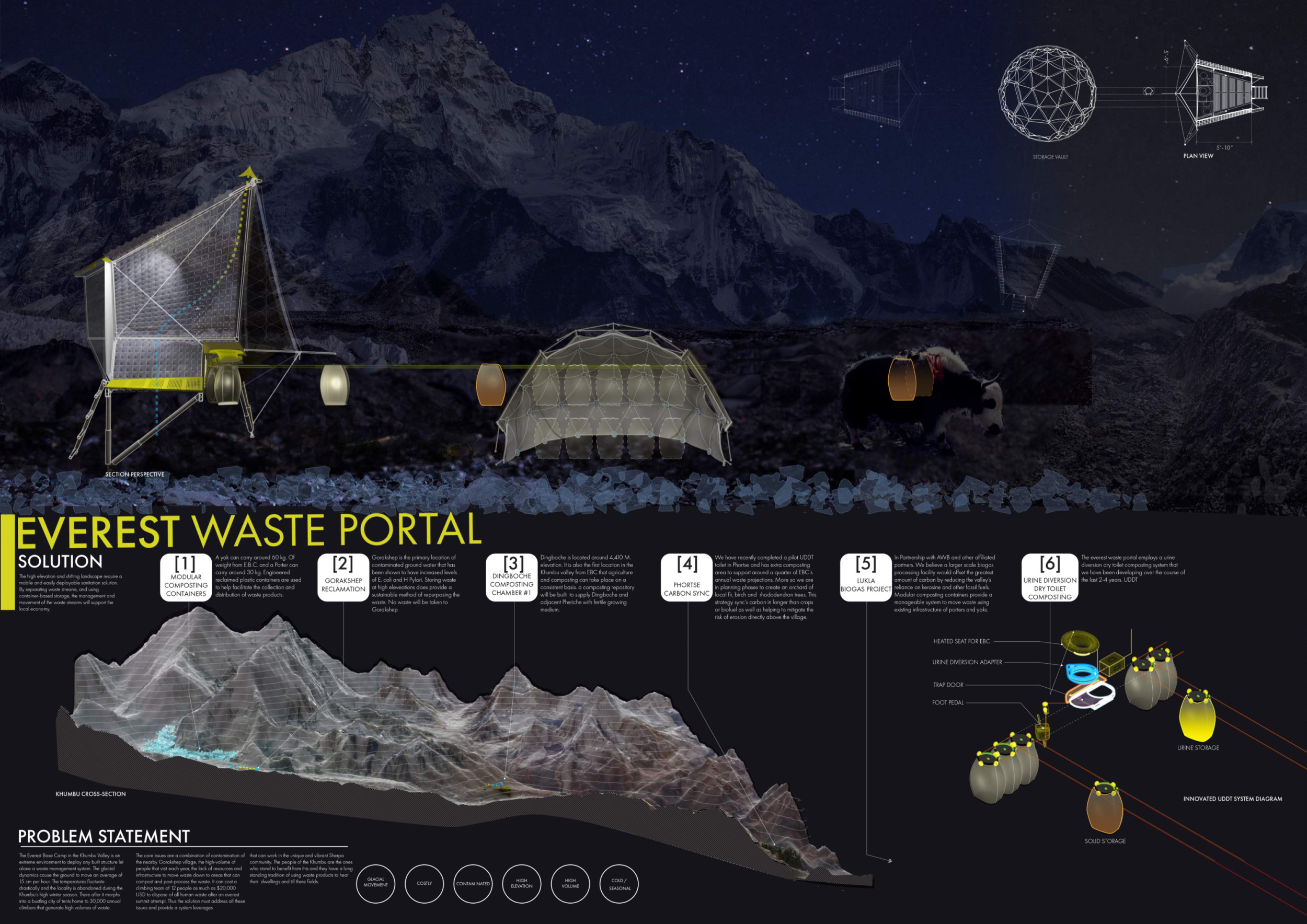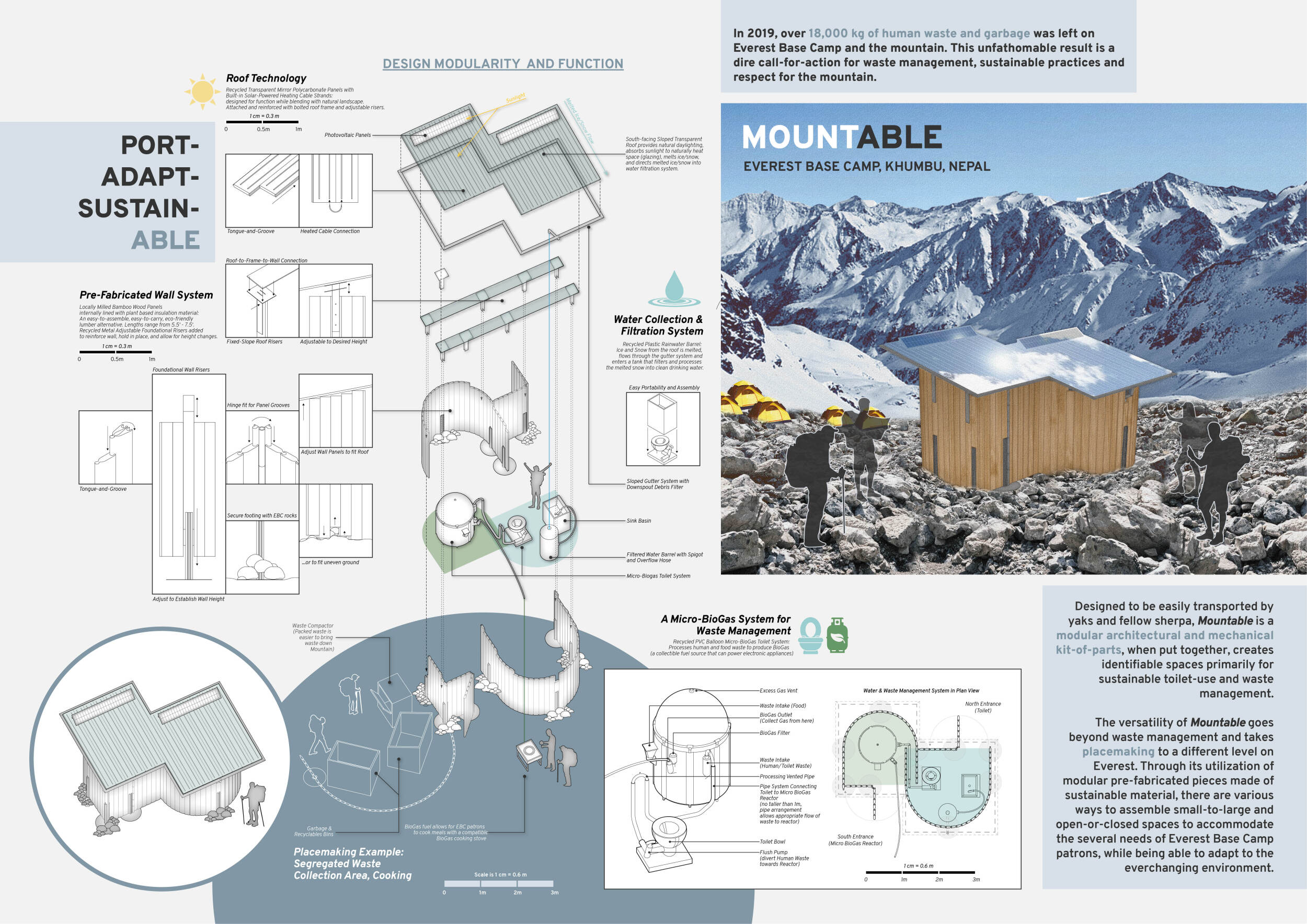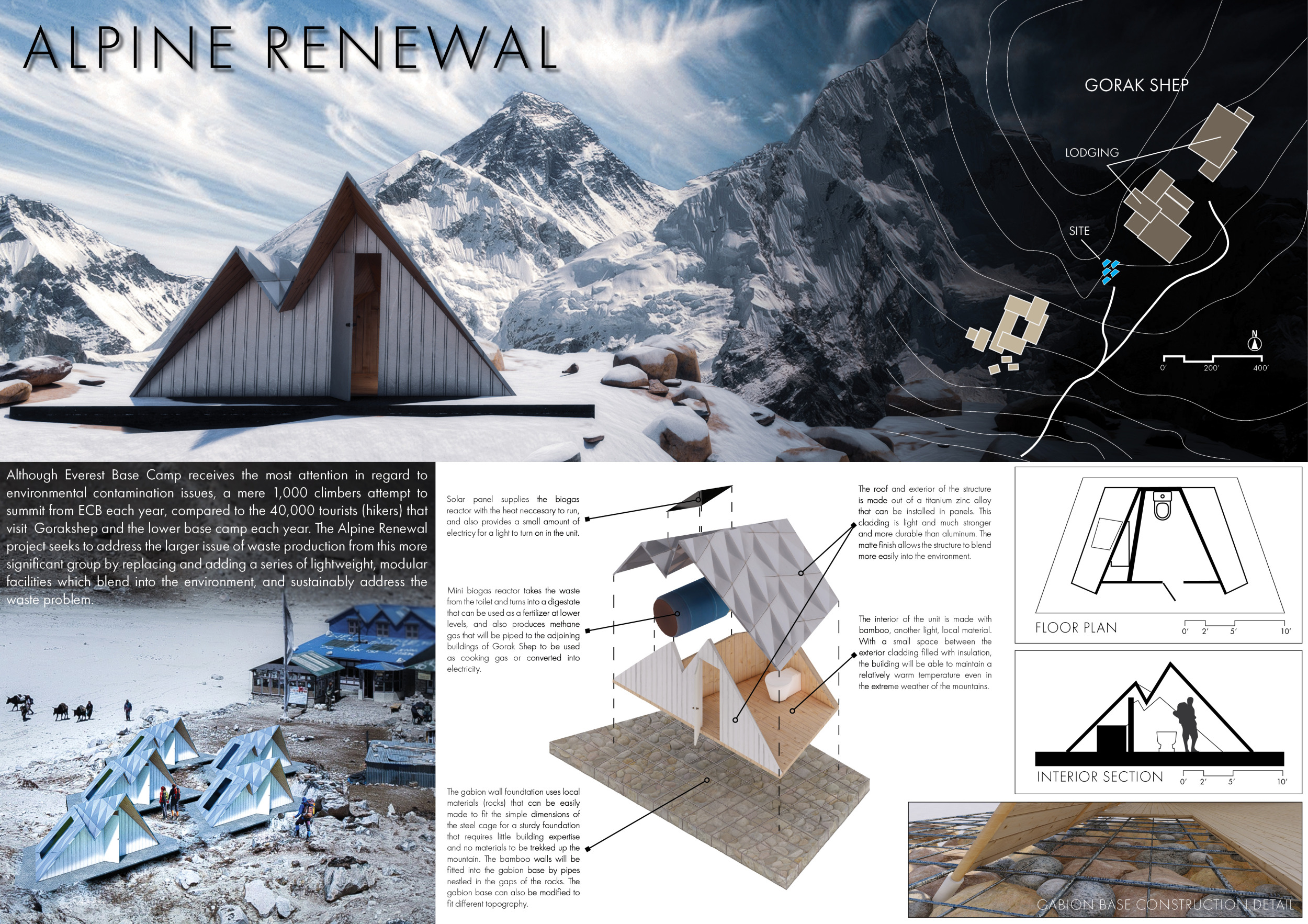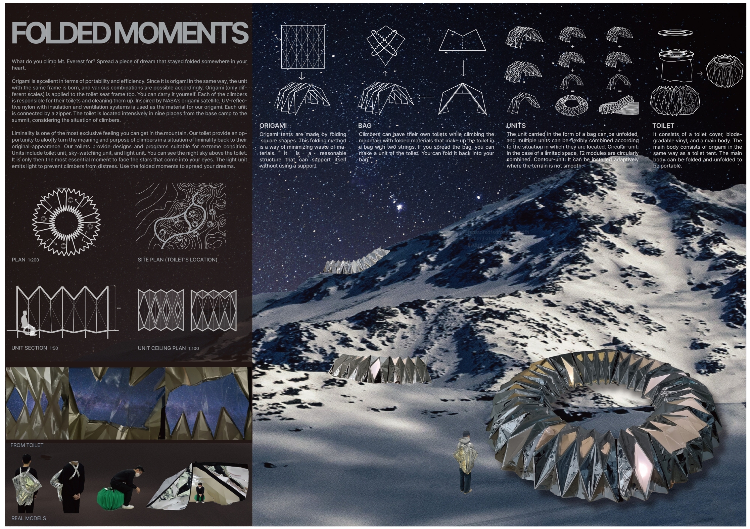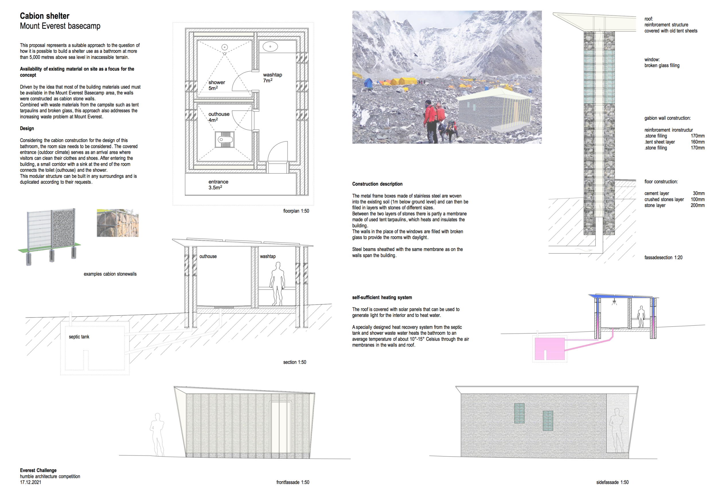 The Humble Architecture competition series seeks designs for toilet facilities that could improve the lives of their users and consider the highest environmental standards for their sites. This first event tasked participants with designing sustainable toilet facilities on Mount Everest - a remote location with a harsh climate that sees many visitors, but is programmed with limited waste facilities.