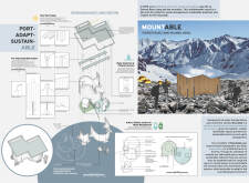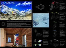The Peak seeks to create a closed cycle for water use. Its round elegant shape blends with the panoramic views from the mountains and resists snow loads. The technology of a Nano membrane decomposes human waste and produces water in this process, returning the water to nature without the need for an energy source. According to the jury, "A fascinating proposal with a solution to treat the human waste directly on-site using the nano-filtration system.