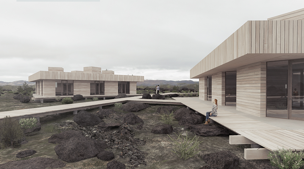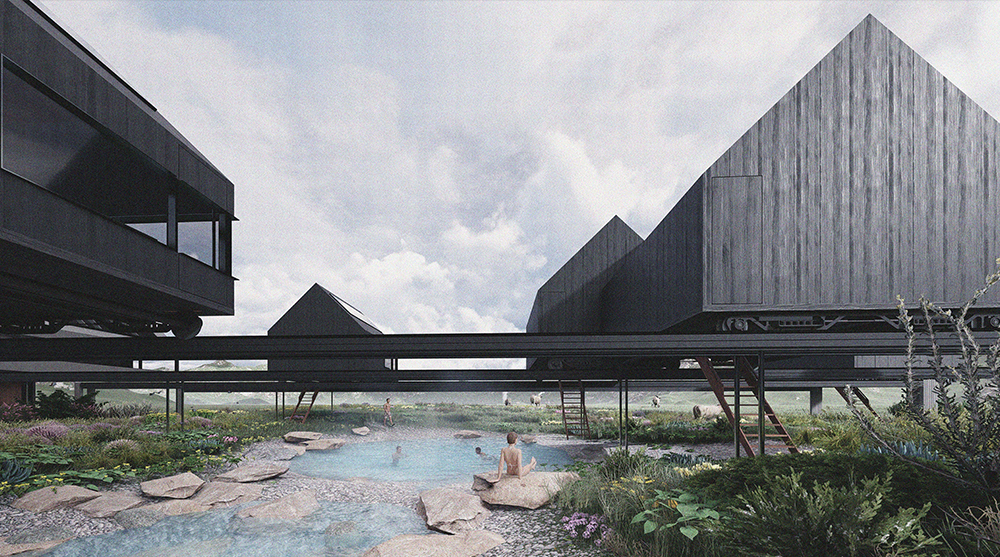 The Iceland Thermal Springs Guest House competition was part of a series of design competitions based on sites around northern Iceland. Participants were tasked with creating an additional guest house for the traditional Vogafjós Farm Resort. The use of earthwork, wood, and water, were common themes in the submitted proposals, and the jury favoured those that showed the most respect for the site and explored the capacity to offer visitors a truly special, local experience.