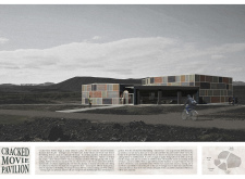 An expertly designed proposal. The project involves the visitors into a tectonic rift of spatial screens that could make the pavilion stand by itself even without an additional function as a movie theater. The building is, however, not ideally connected to the cinematic program experience and the support of such.