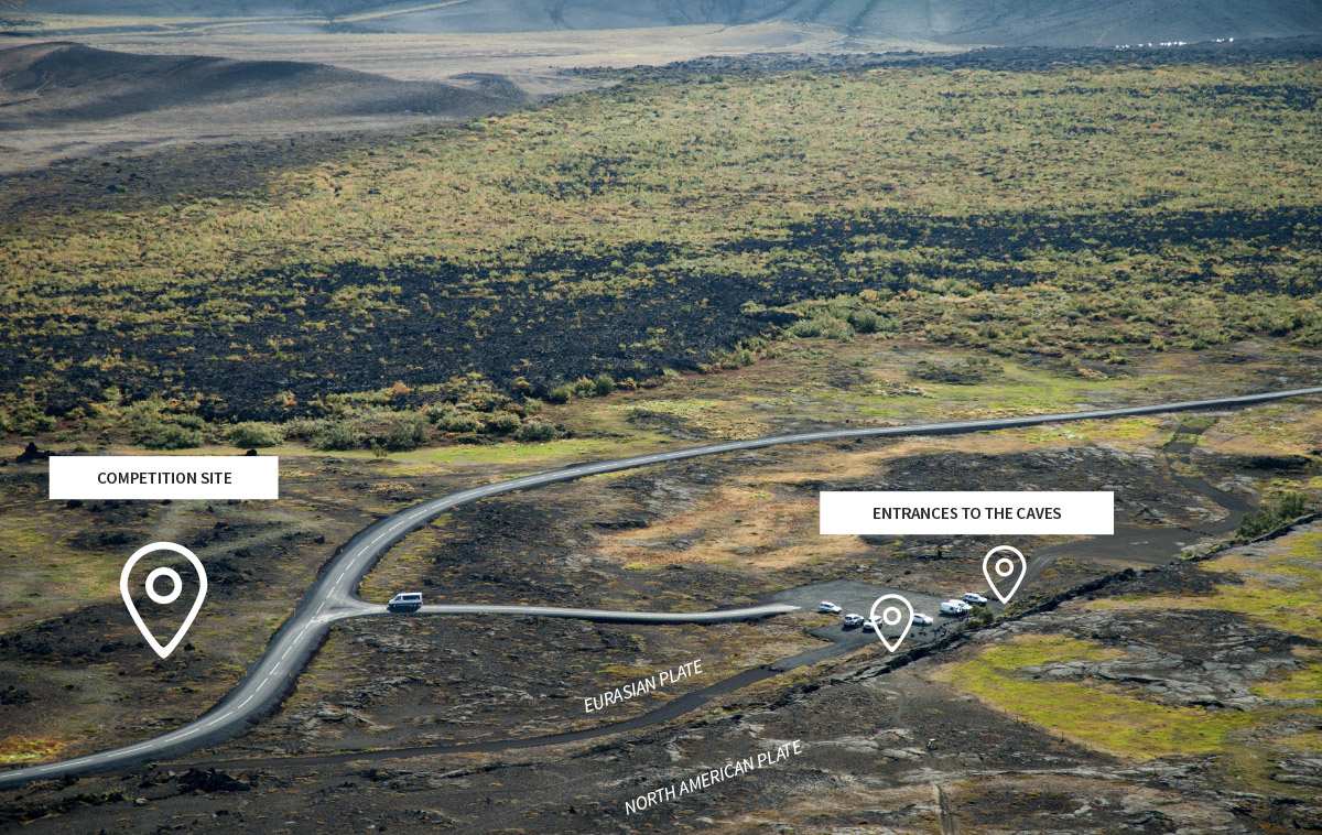 The competition site is located 100 meters from the Grjótagjá caves.