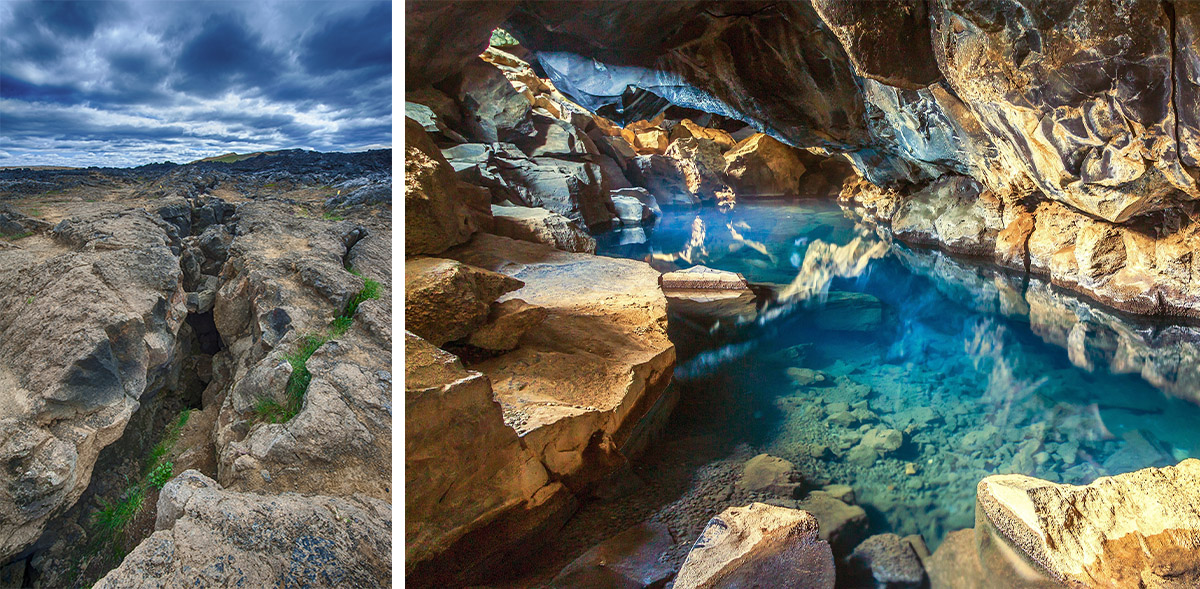 Sitting on the tectonic divide between Europe and America, the caves were first discovered back in the 18th century when the outlaw Jón Markússon made them his home.
