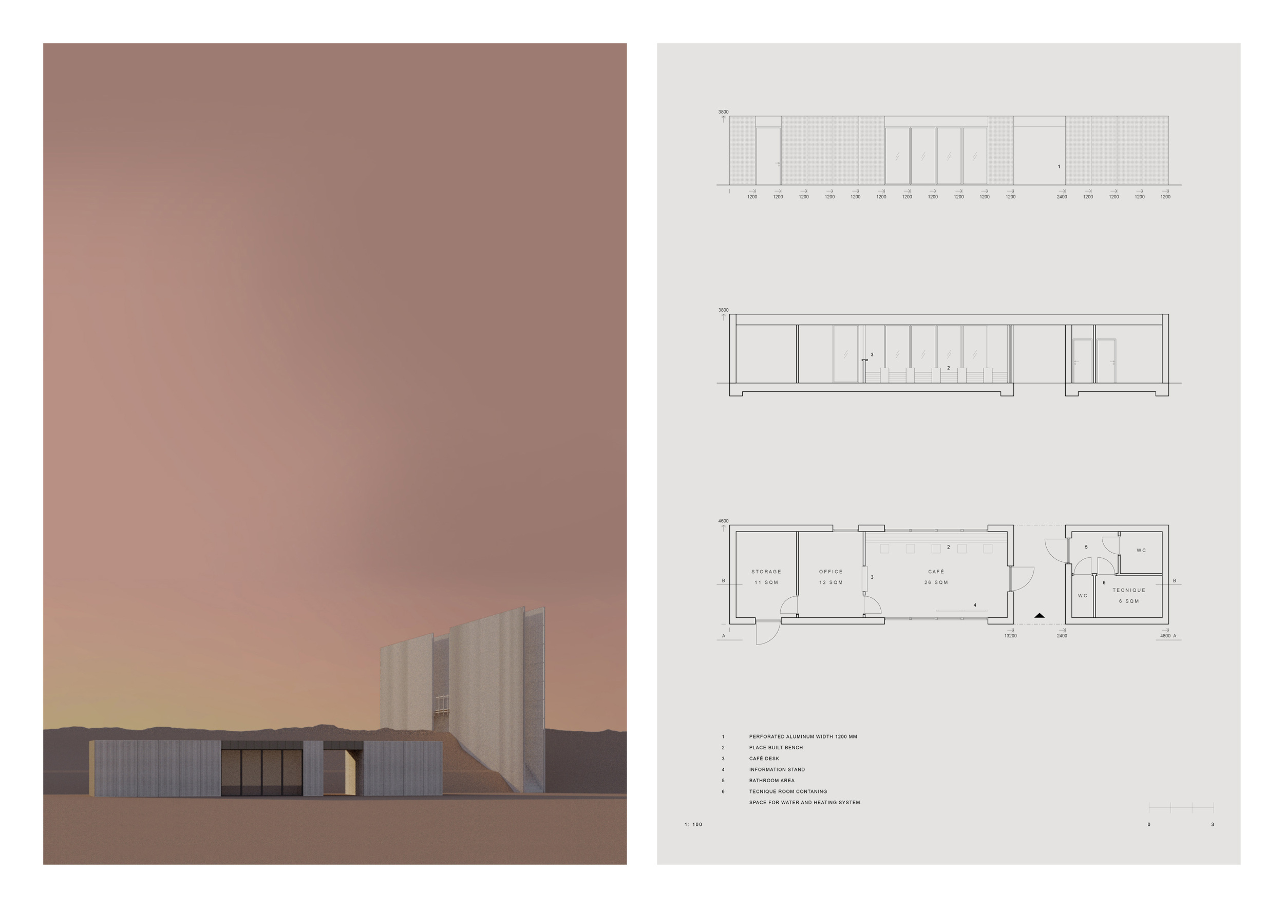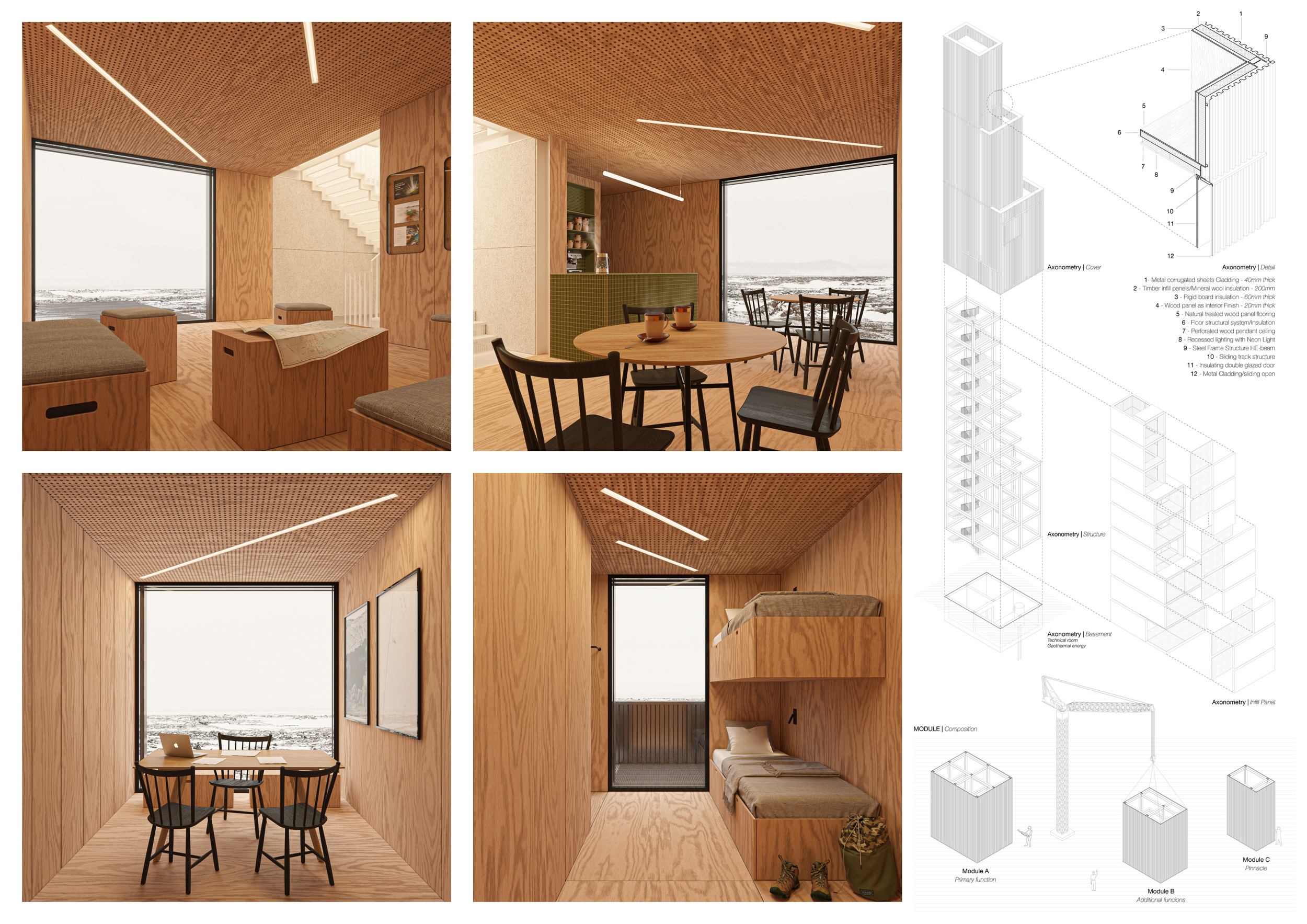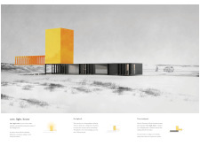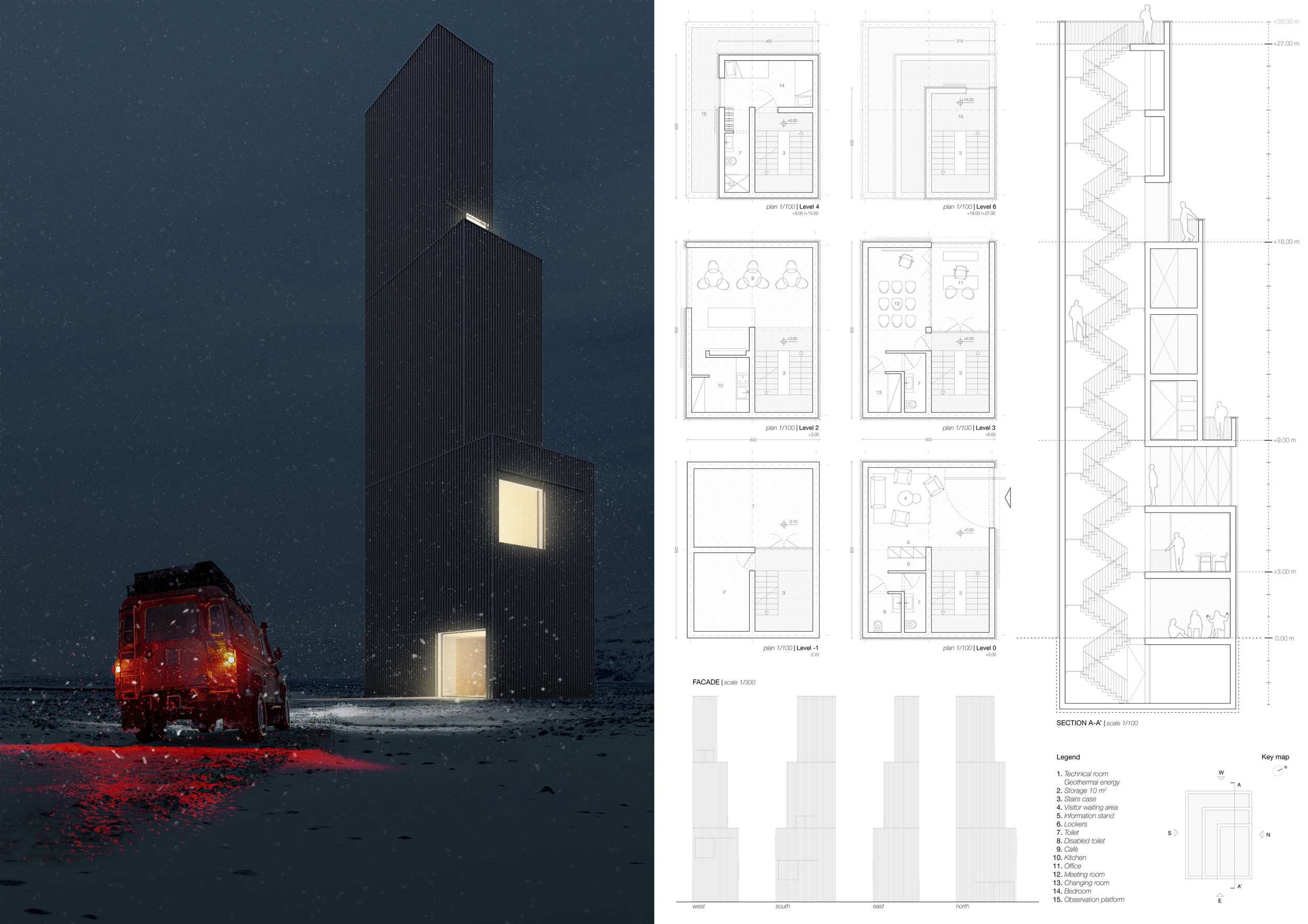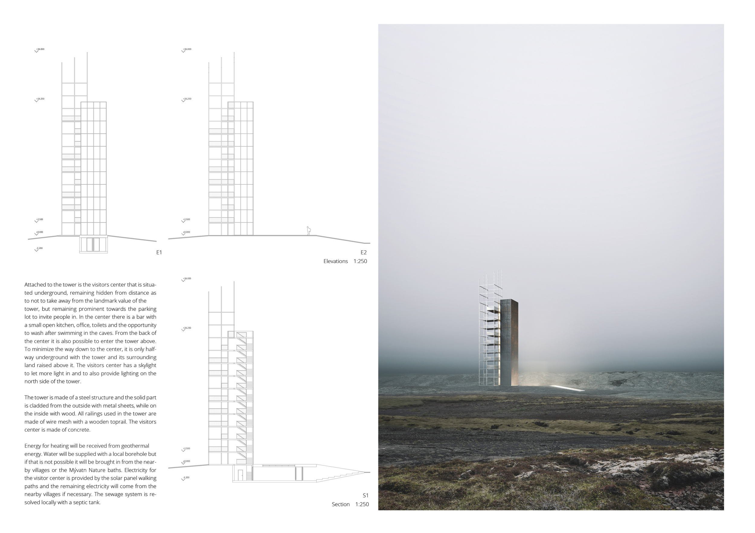 Hófsemi (translation = moderation) is a well-resolved proposal with a strong connection to the surrounding landscape and a unique lookout point. The project proposes three distinct blackened box-forms housing the toilets and showers, a visitor center, and an observation platform.