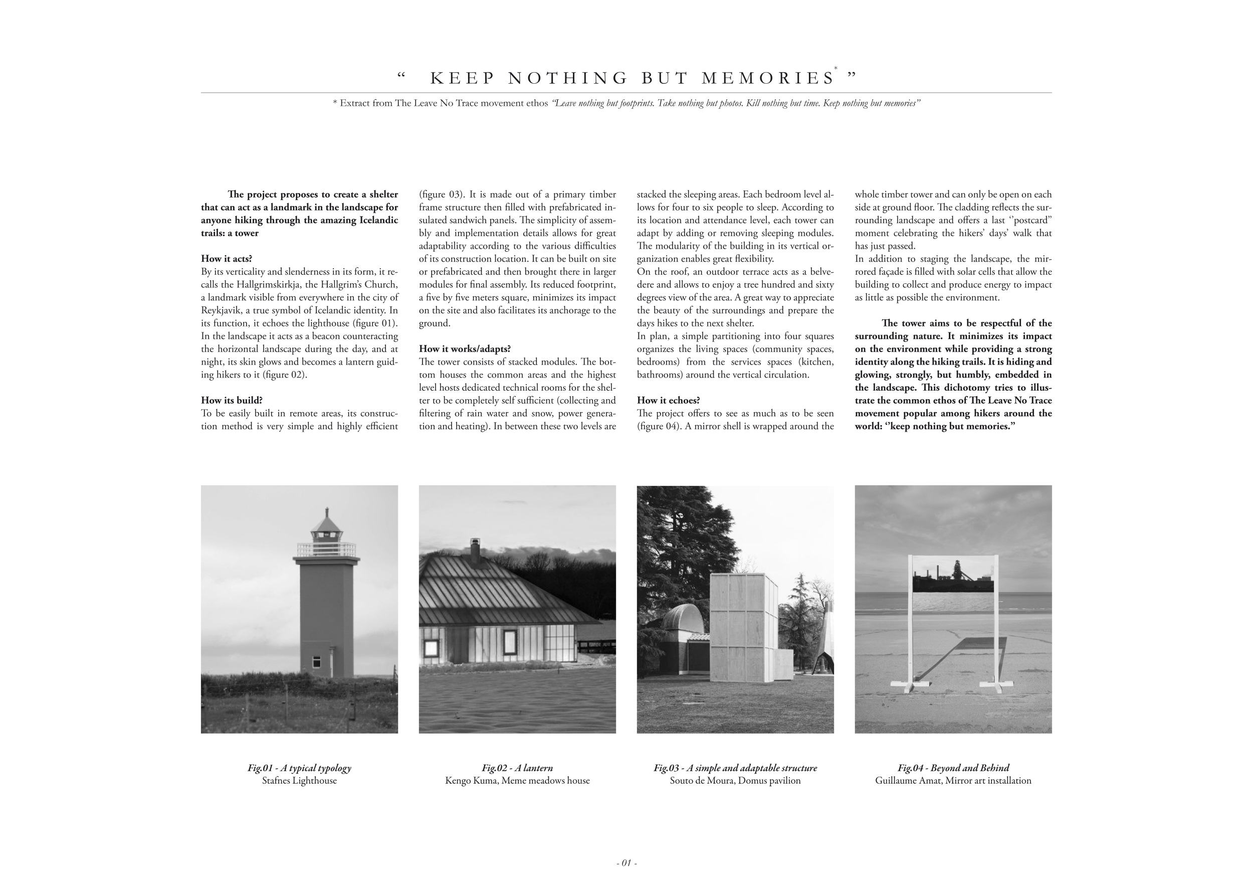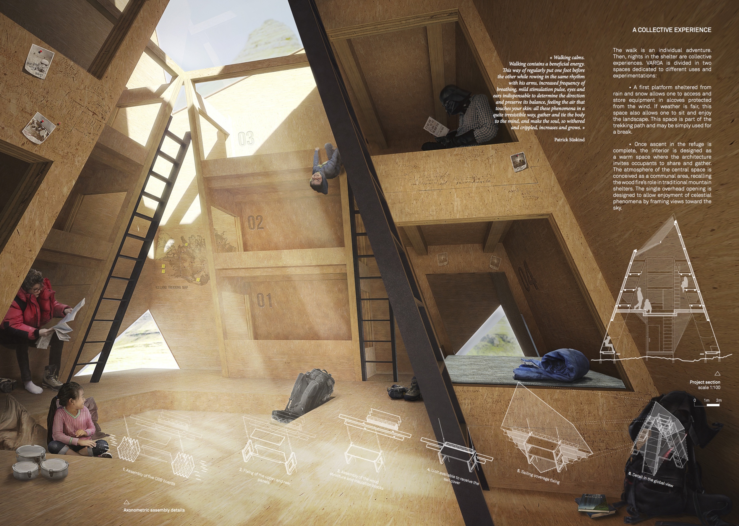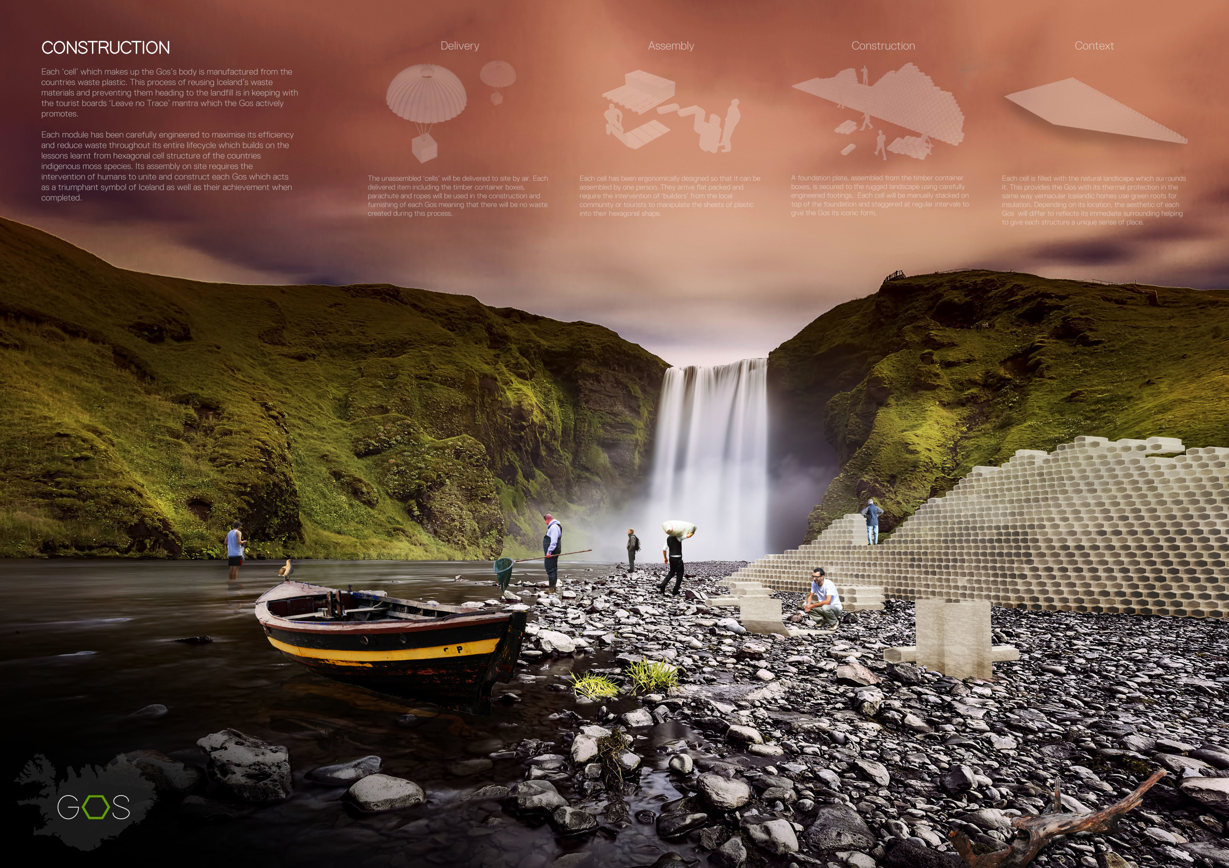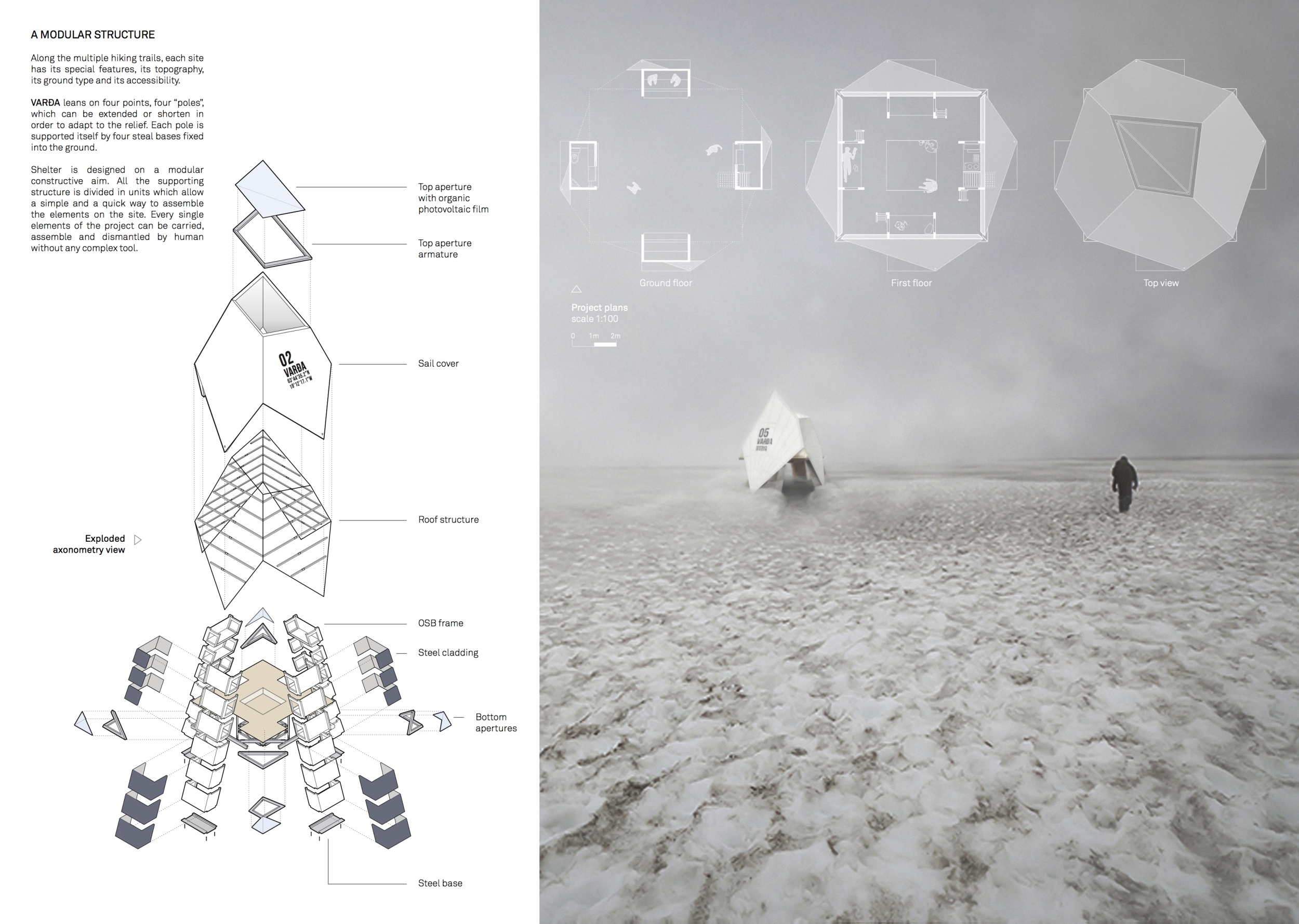 The Iceland Trekking Cabin provokes consideration of architecture's rudiments. This includes most specifically provision for enclosure, place, and social collectivity. These three issues form the conceptual framework and challenge of the brief. The project requires entrants to imagine a versatile architecture for sheltering travelers in a vast, dynamic landscape defined by topographic contrast and ecological variation; associated with cultural folklore, wonder and imagination. As a structure for nomads and backpackers, the project is culturally precedented, although urbanely by the hostel. Within the context of fjords, lava fields, glaciers, and mountains, and accompanied by the respective trekking ethos, leaving only footprints, the nearest architectural paradigm is perhaps that of a tent.