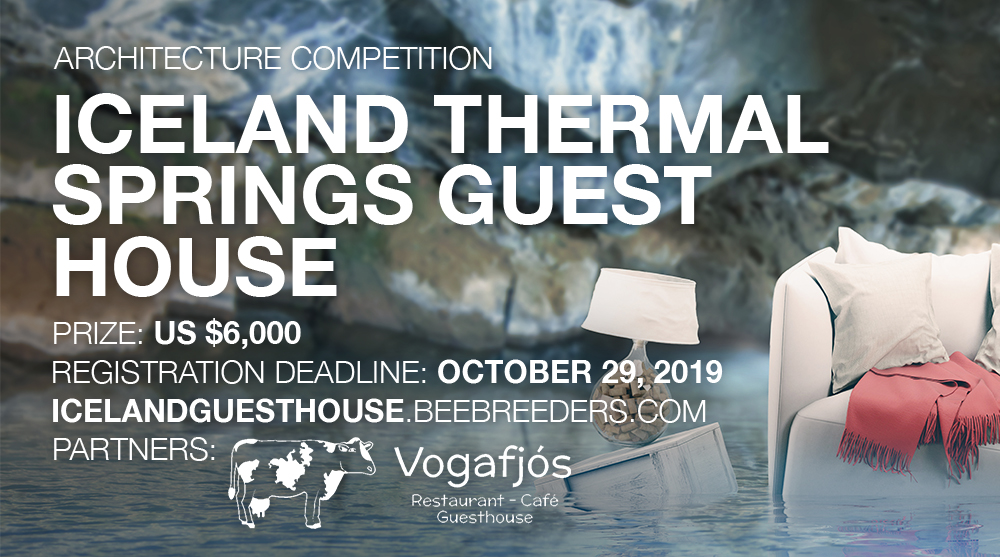 Il concorso architettonico Iceland Thermal Springs Guest House, in collaborazione con il Vogafjós Farm Resort, è alla ricerca di progetti per estendere la struttura attuale. Il resort agricolo è un rifugio per vacanze all’insegna della produzione e del consumo organici, situato a breve distanza dalle sorgenti termali. Ai partecipanti al concorso è richiesto di creare una guest house esclusiva in aggiunta a quelle attualmente presenti, che funzioni come struttura separata, al fine di ospitare personaggi di alto profilo e celebrità. La guest house deve essere progettata in modo da poter ammirare da essa le vedute straordinarie della natura islandese e la frequente Aurora Boreale.