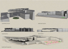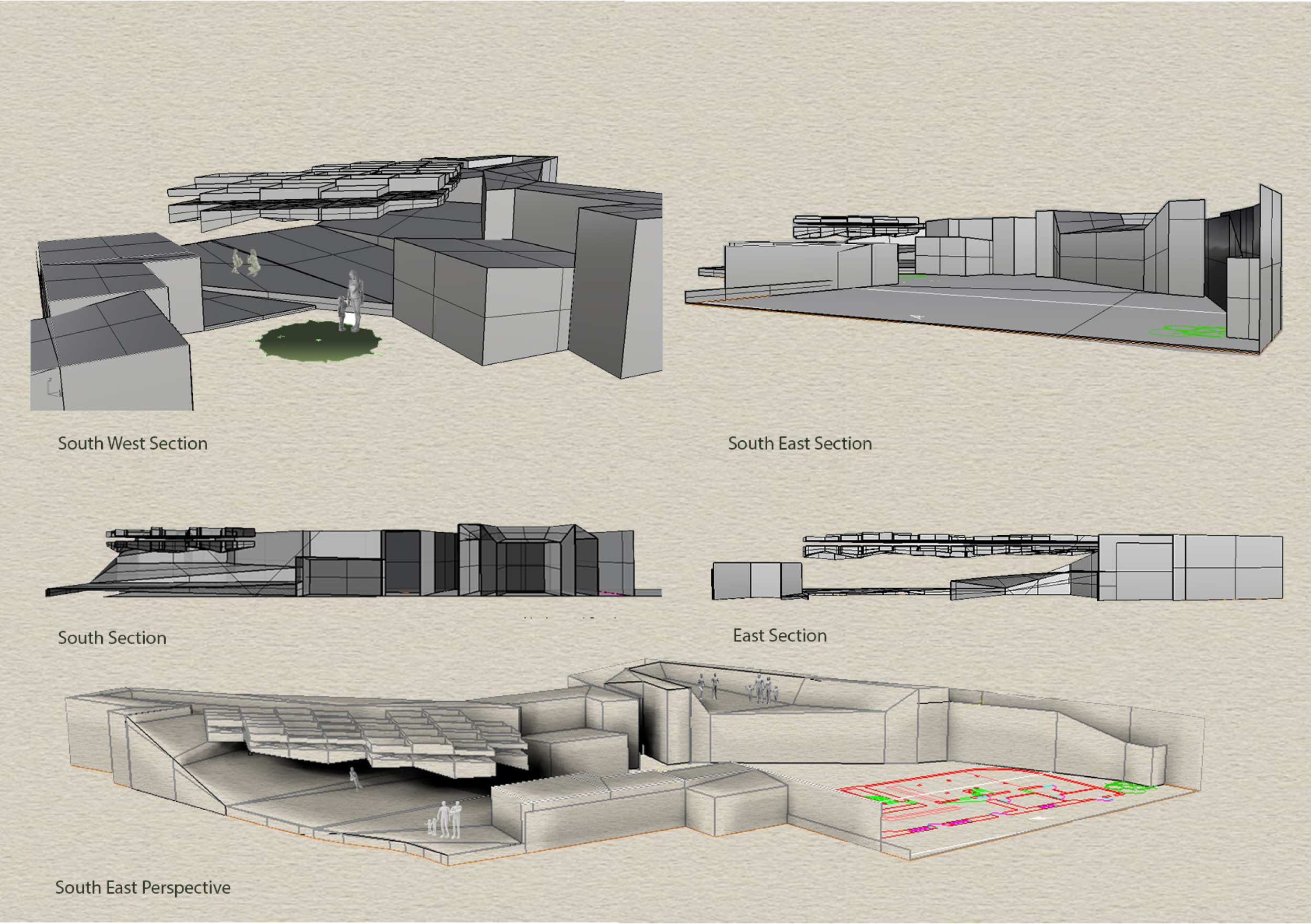 In the submission that most challenged the existing site, “Shaping the Sound” carved from the hillside to compose a series of semi-underground spaces with curved shapes that take cues from instrument design. It proposes a number of viewing points from which to observe the site, and both internal and outdoor events.