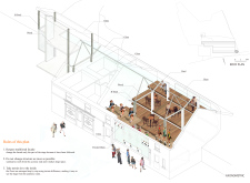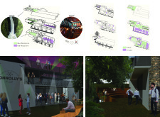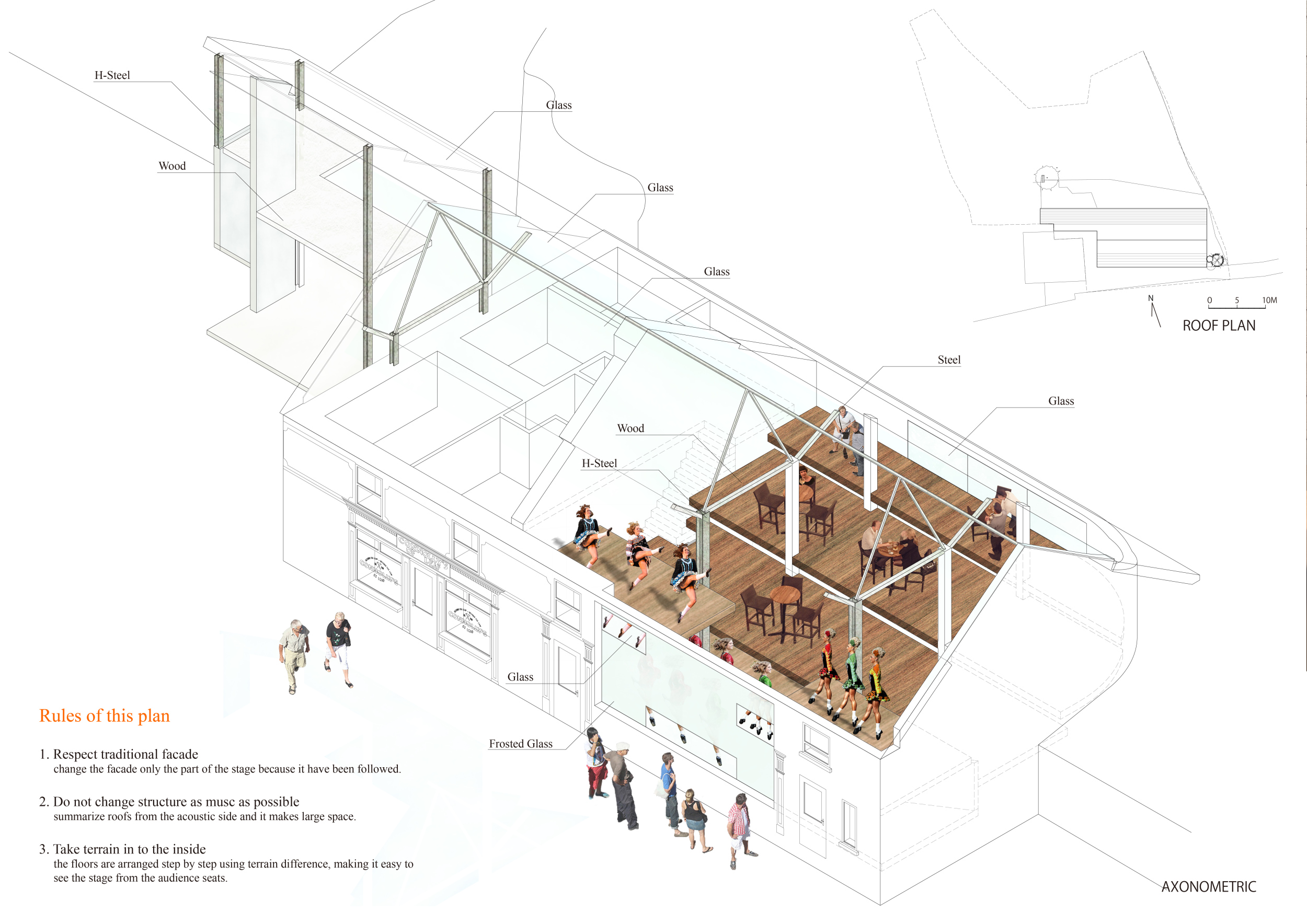 The jury found this submission to be buildable, well-suited for its site, and respectful of the existing building. It intelligently reorganizes the music venue, and it’s primary modification is the insertion of a raised glass skylight, allowing natural light to penetrate the event space.