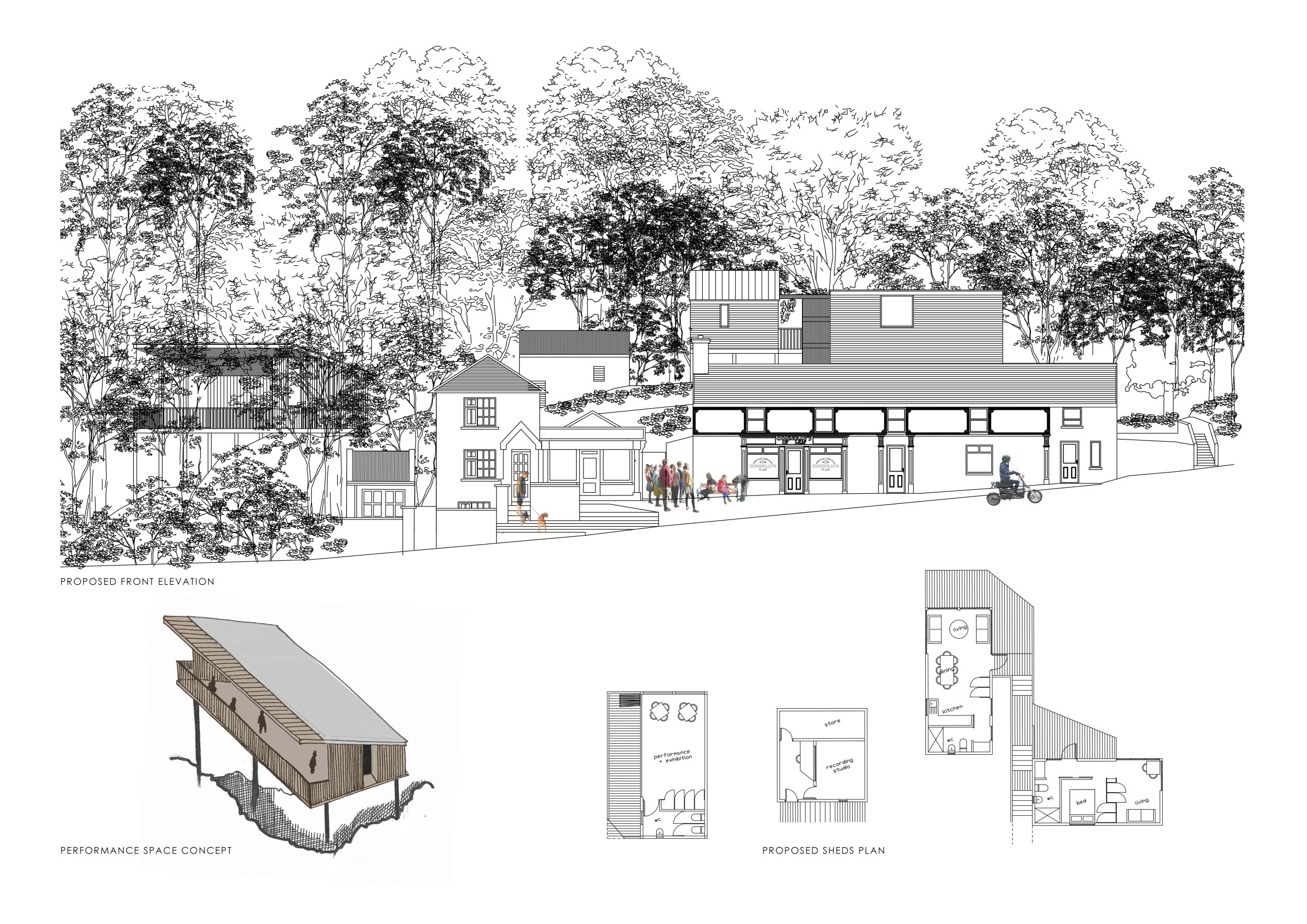 Several factors were considered by the jury while reviewing the submissions. Those which were considerate of the landscape, as well as the integrity and spirit of the existing venue, were reviewed favorably. The jury also gave importance to design which acknowledged the ravine, waterfall, and neighborhood context. The winning proposals offer flexible building plans, and programs which test new ideas for viewing and performing. Bee Breeders would like to thank all participants for their submissions, and looks forward to further development of Connolly’s of Leap’s site and venue.