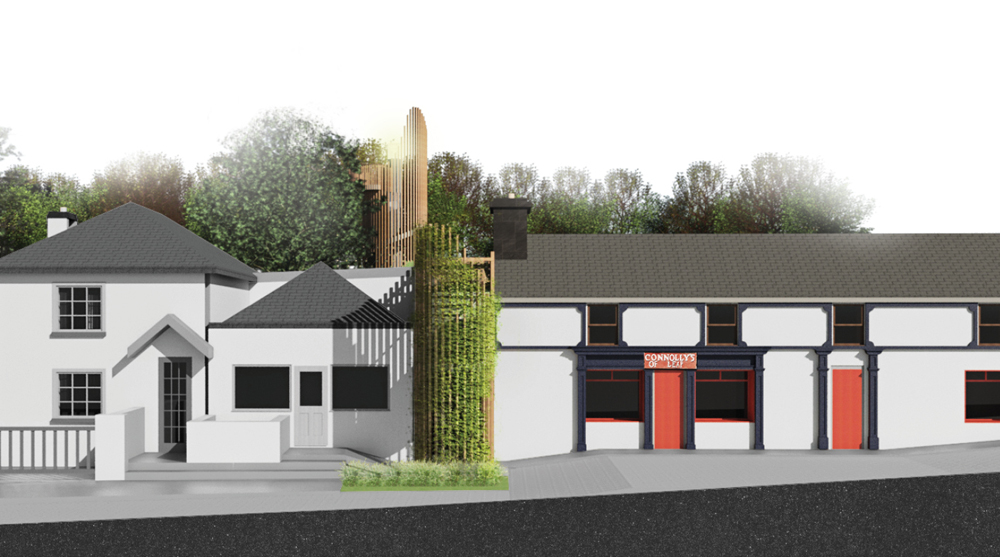 The Irish Cult Music Venue architecture competition tasked participants with envisioning a concept for a renovation and programmatic extension of the beloved local pub and live music venue, Connolly’s of Leap, in County Cork Ireland. The jury selected winning proposals that considered the landscape, as well as the integrity and spirit of the existing venue.