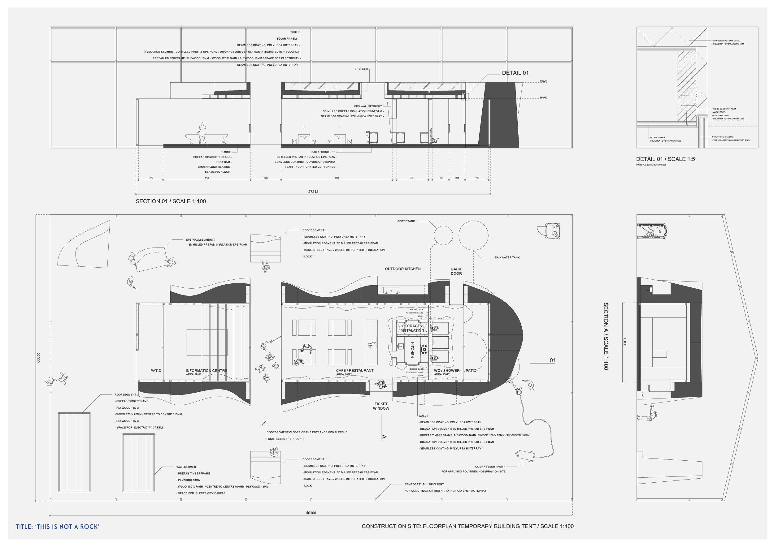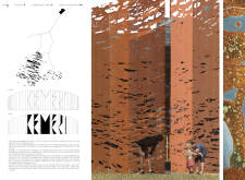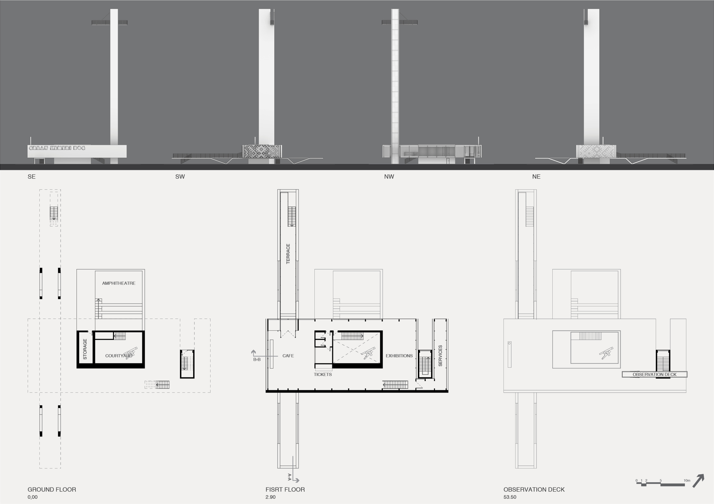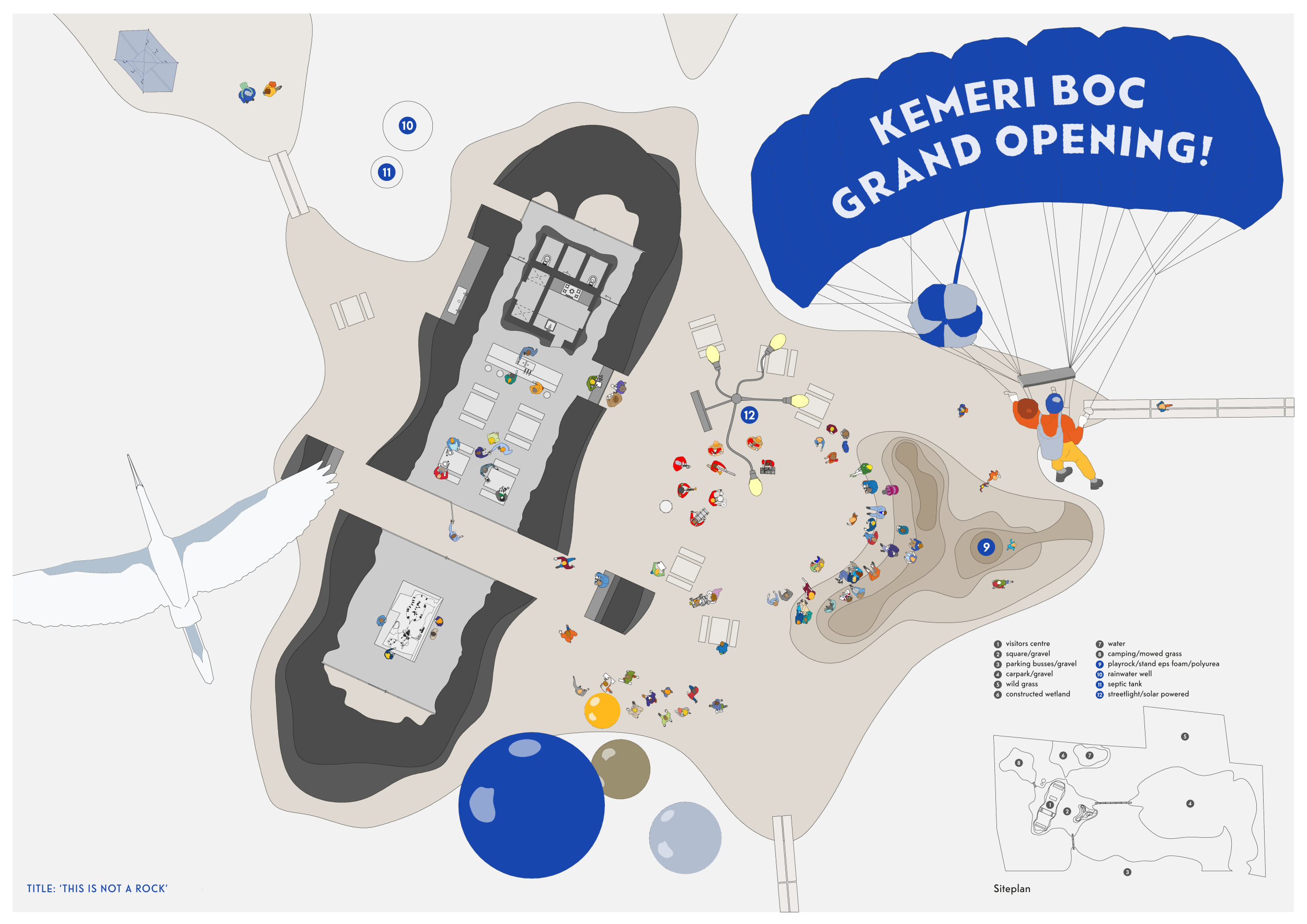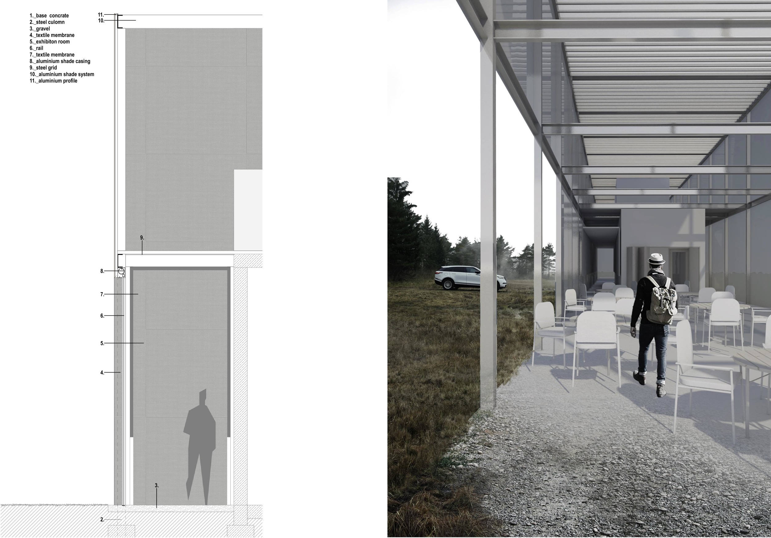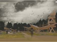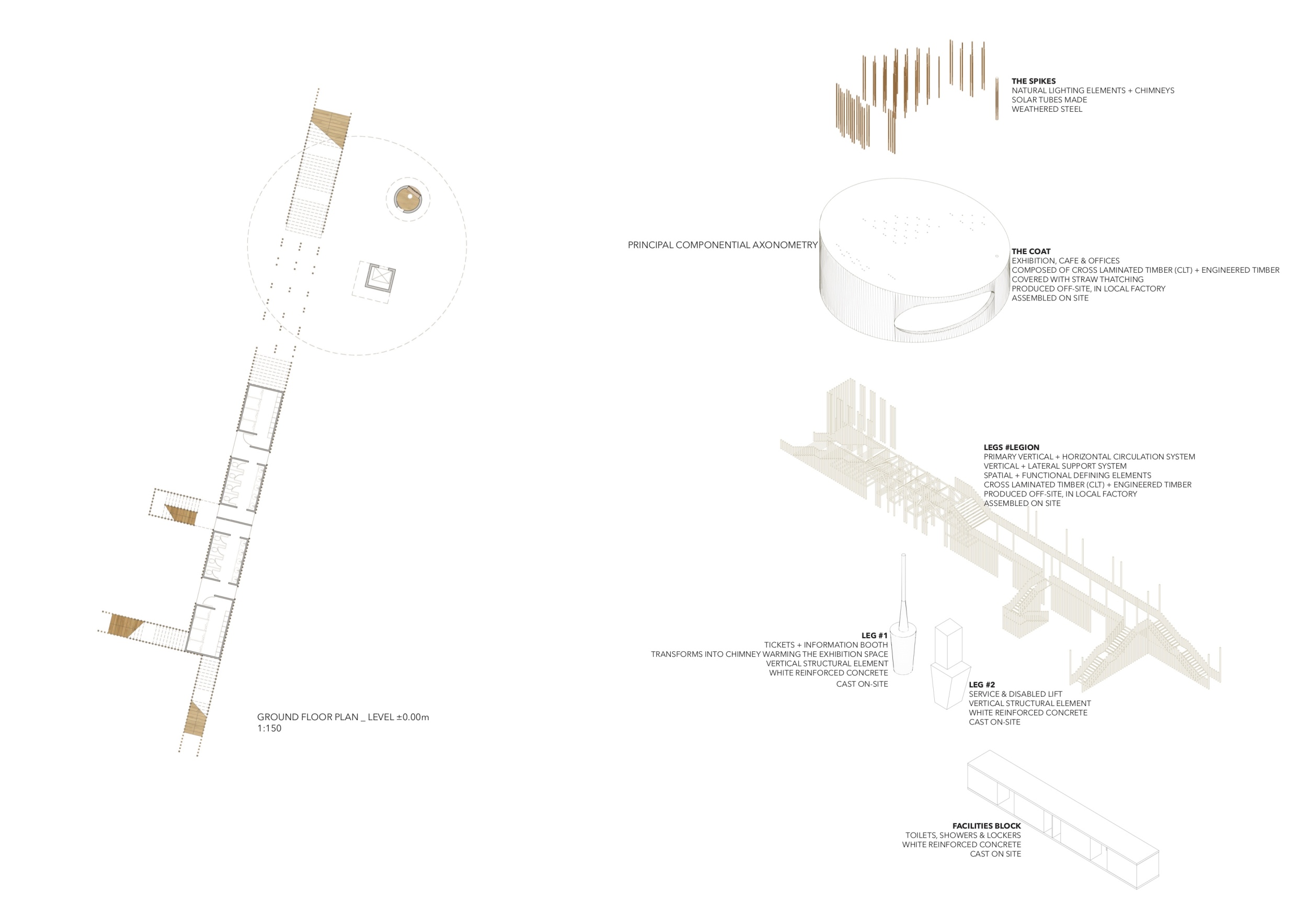 The proposed design program consists of: an information centre with a cafe, terrace, and external ticket window; a camping site with access to shower and toilet facilities; a children’s playground; and a car park with the capacity for 100 vehicles. It was requested that structural elements be made from durable materials. There were no dimensional requirements or budget.