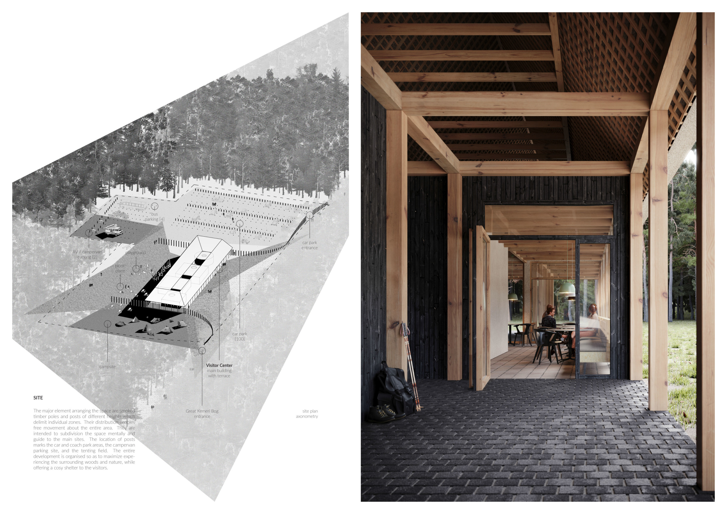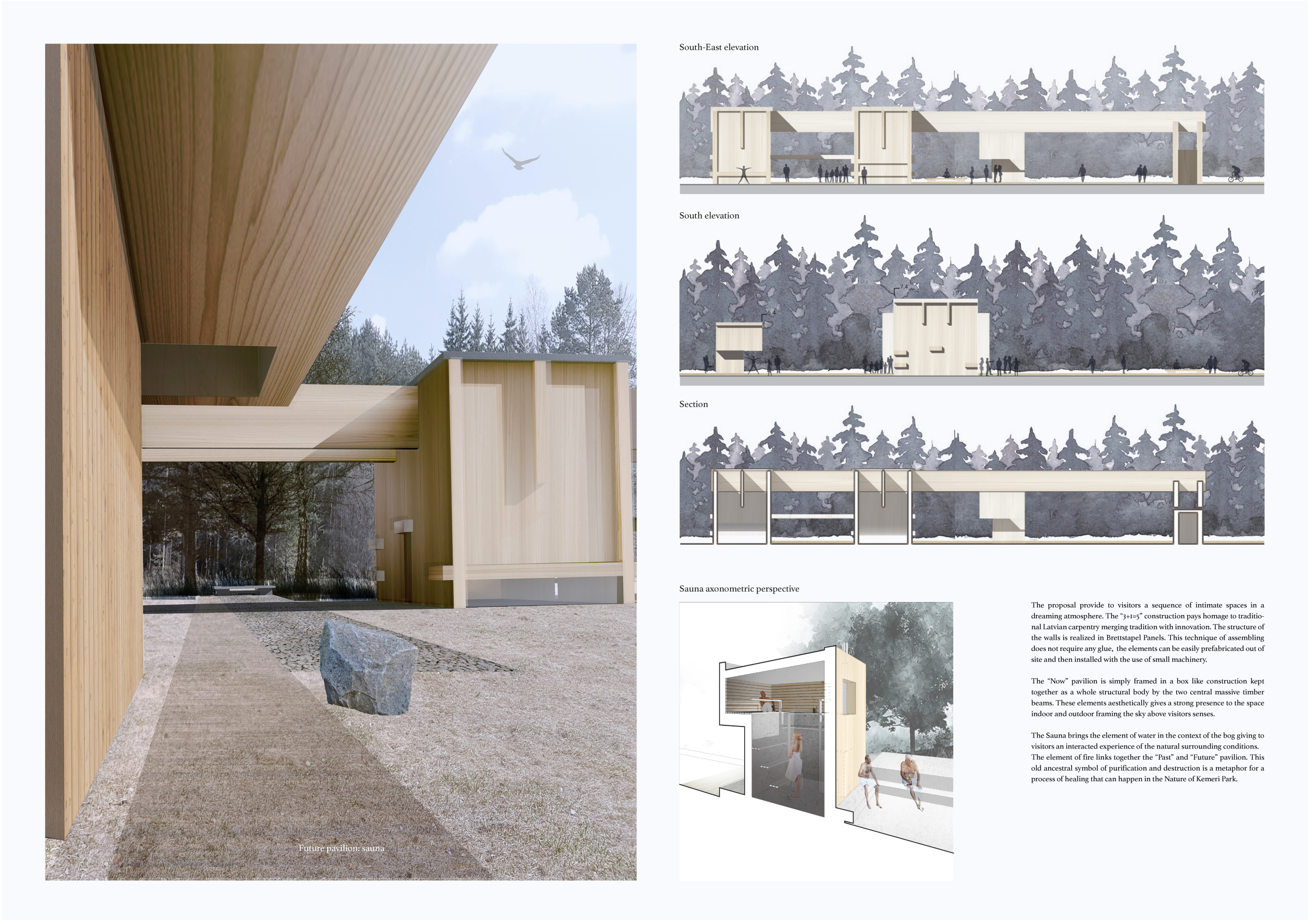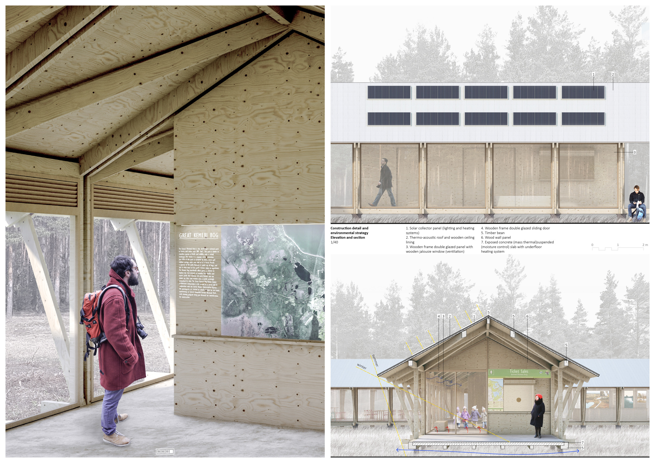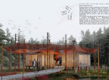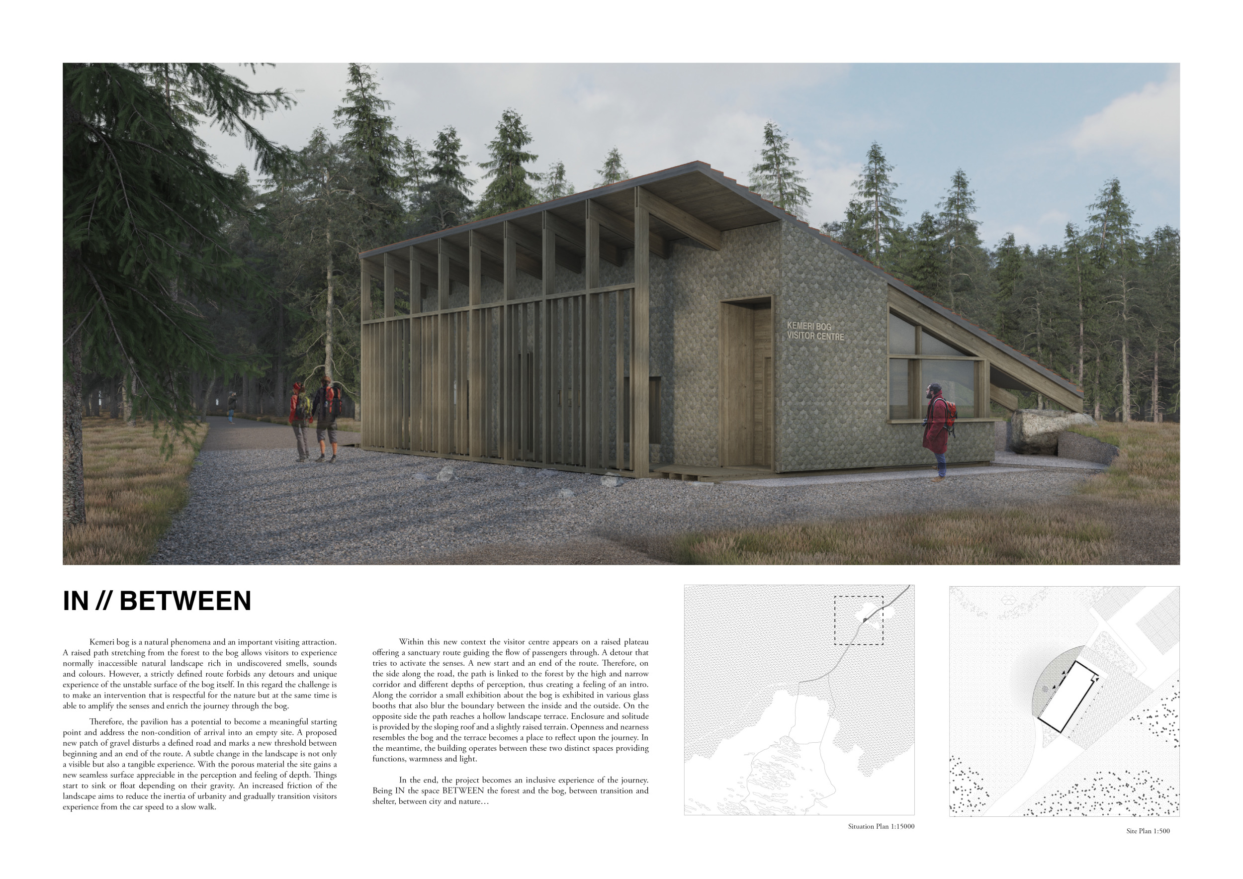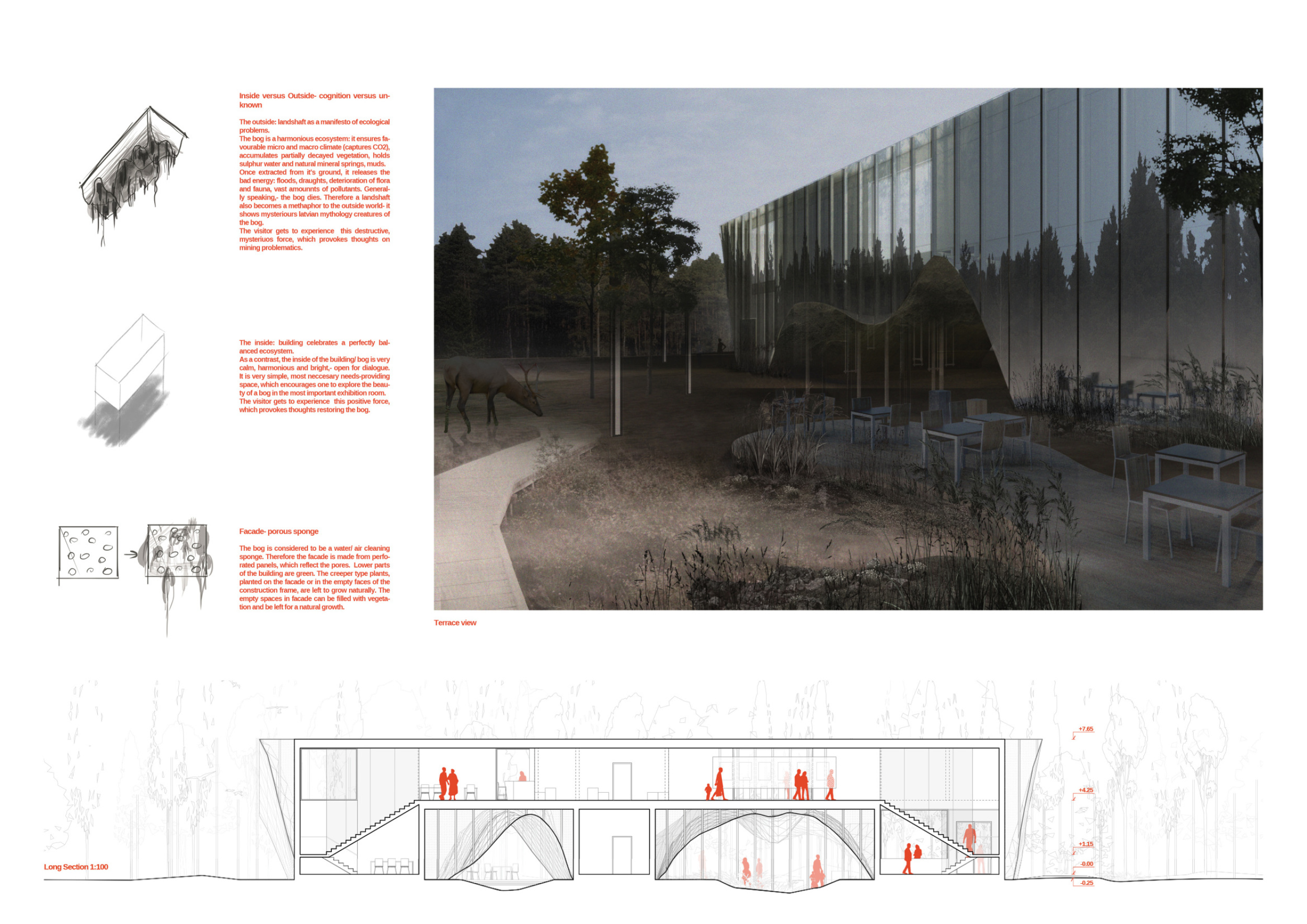 In the current competition participants were tasked with designing a visitor center on a site located at the entry to the Great Kemeri Bog boardwalk. The site is currently used as a car park and gathering point for boardwalk visitors.