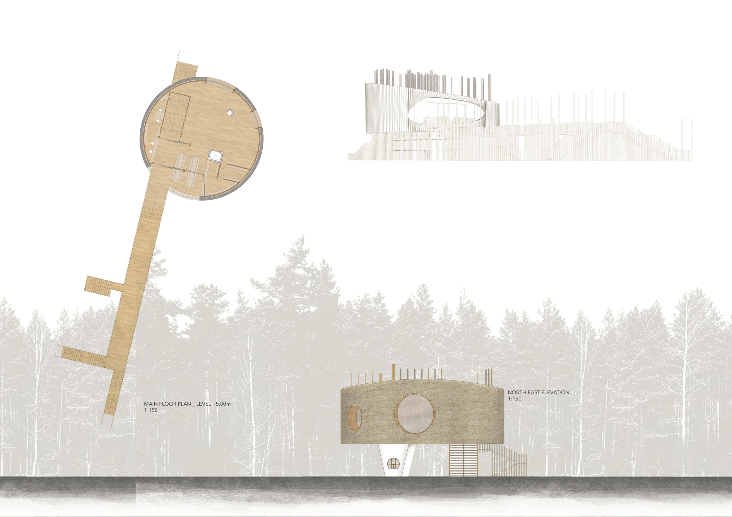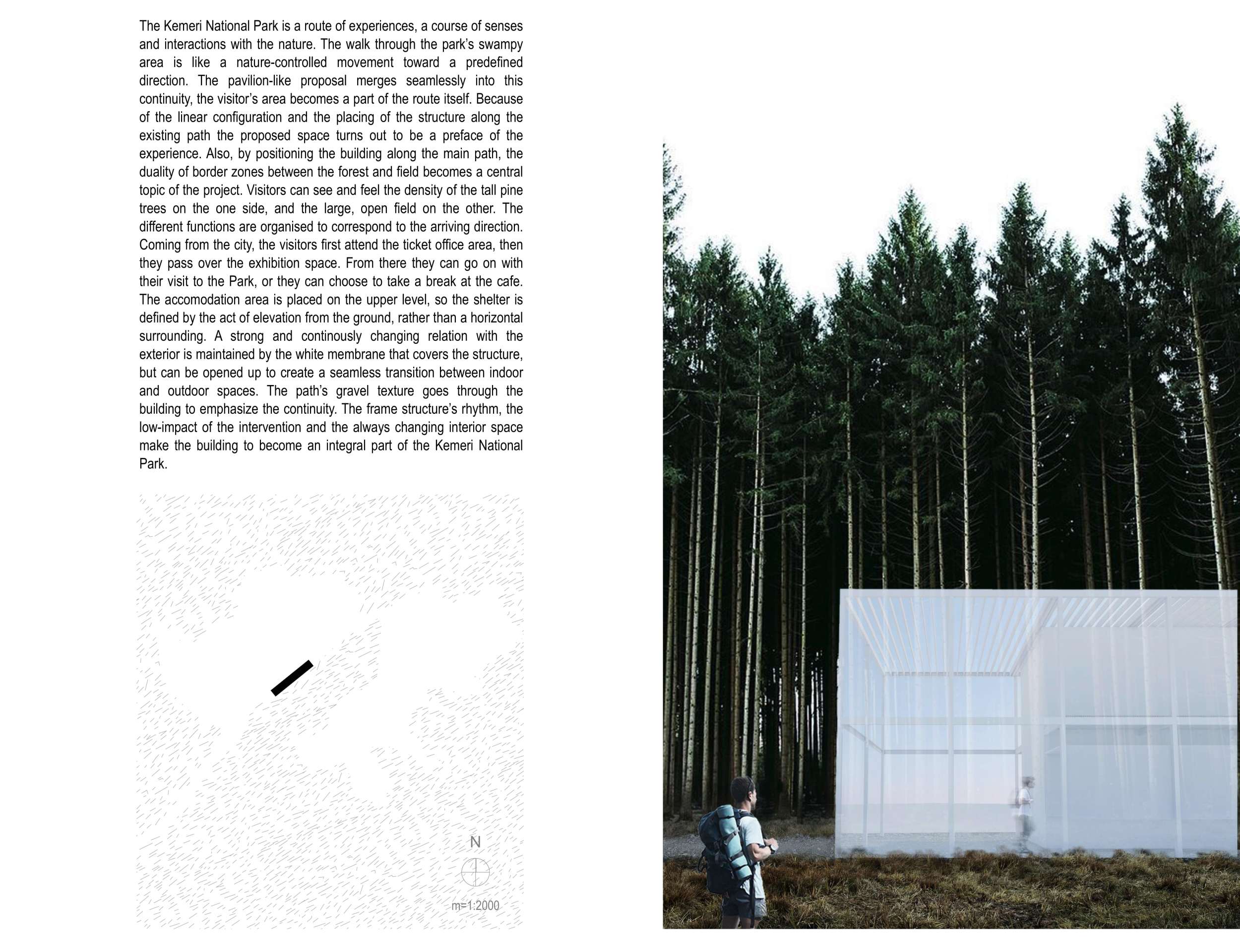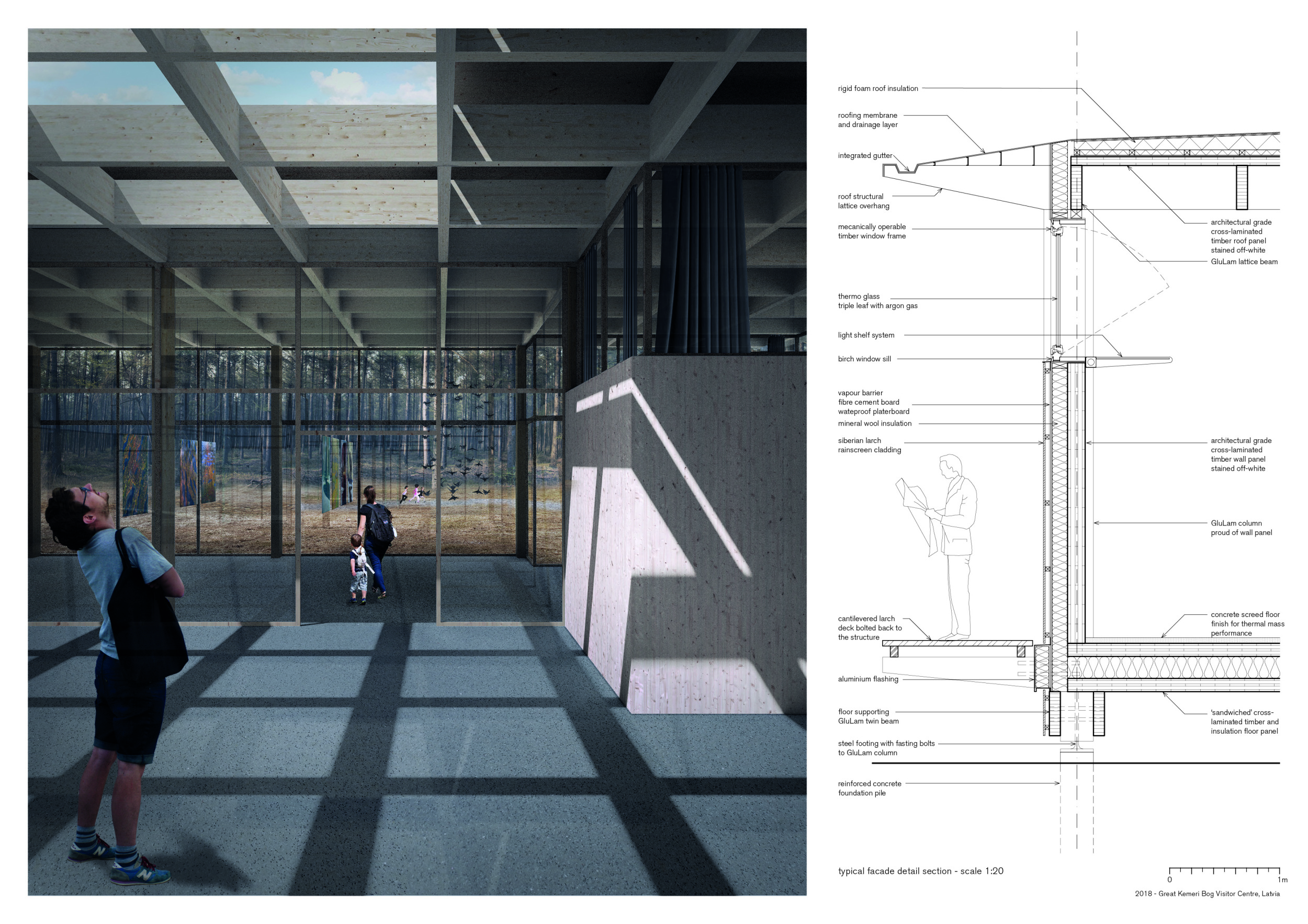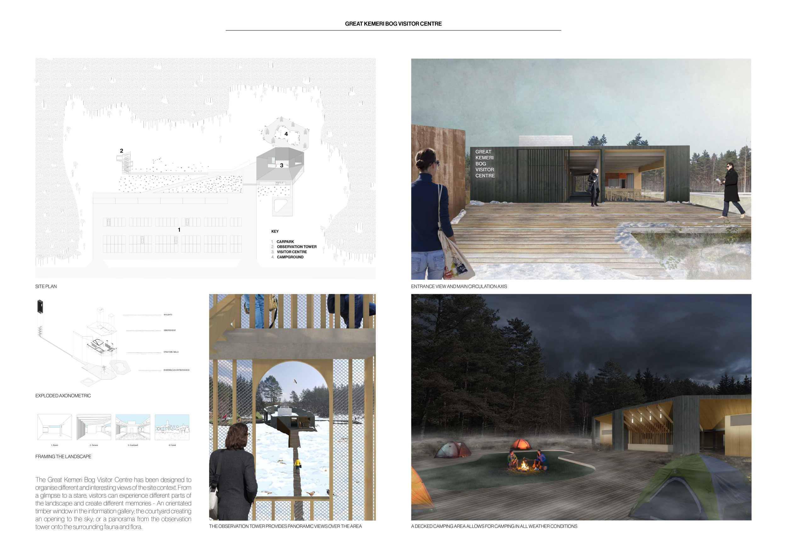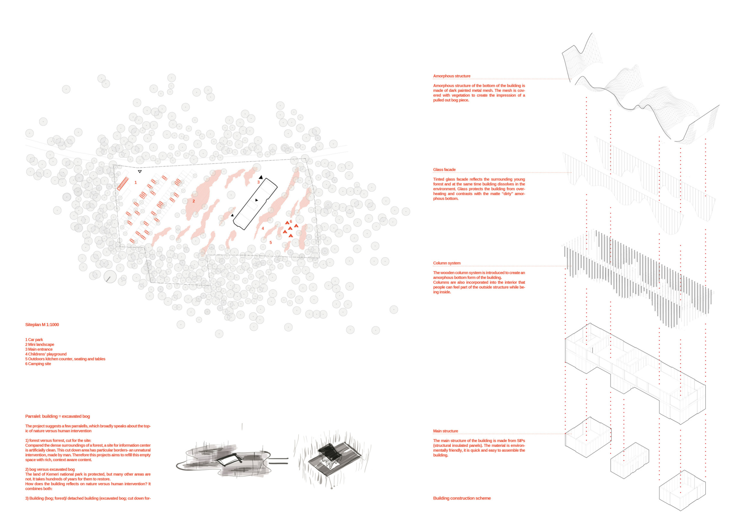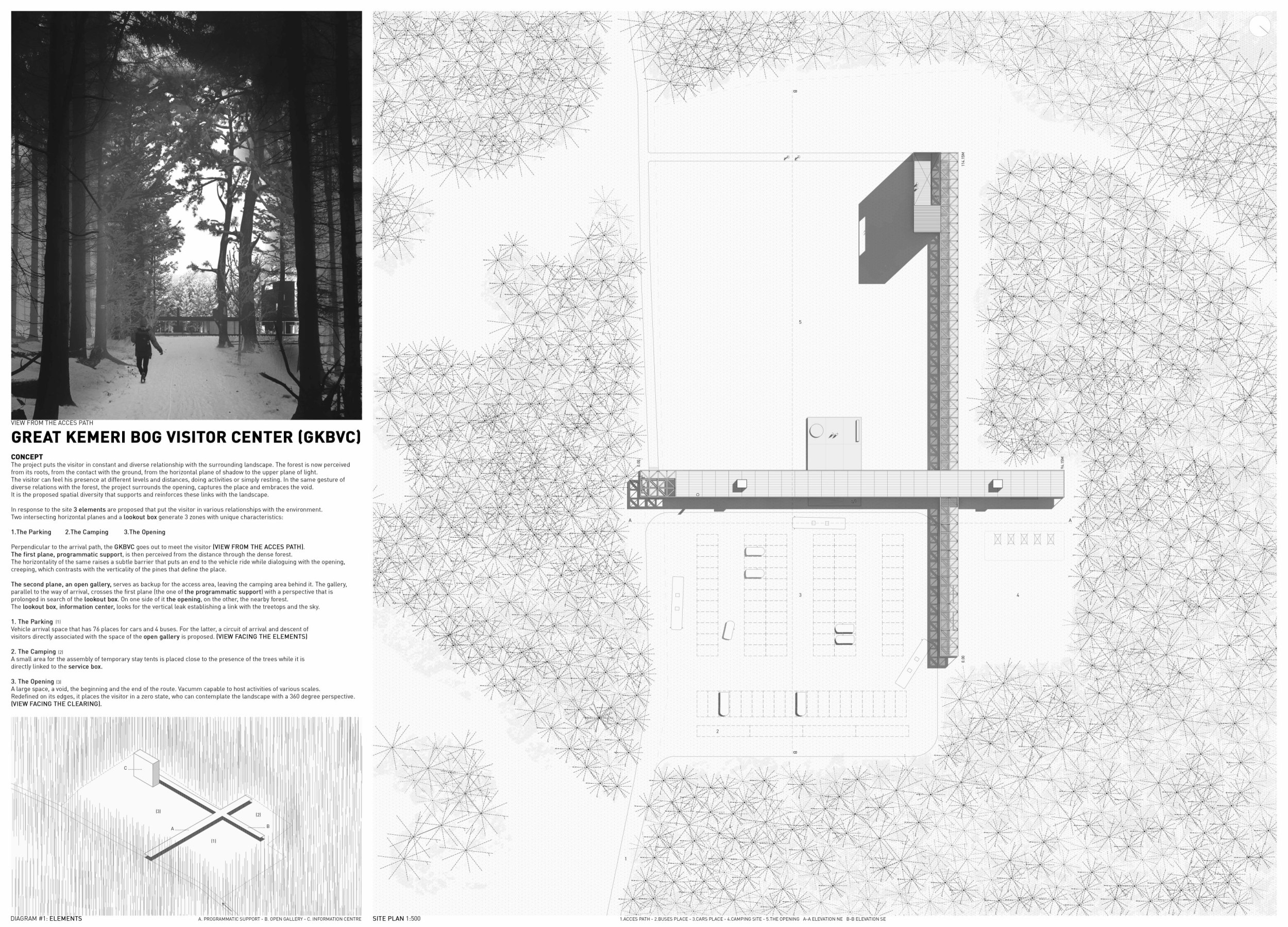 In the current competition participants were tasked with designing a visitor center on a site located at the entry to the Great Kemeri Bog boardwalk. The site is currently used as a car park and gathering point for boardwalk visitors.
