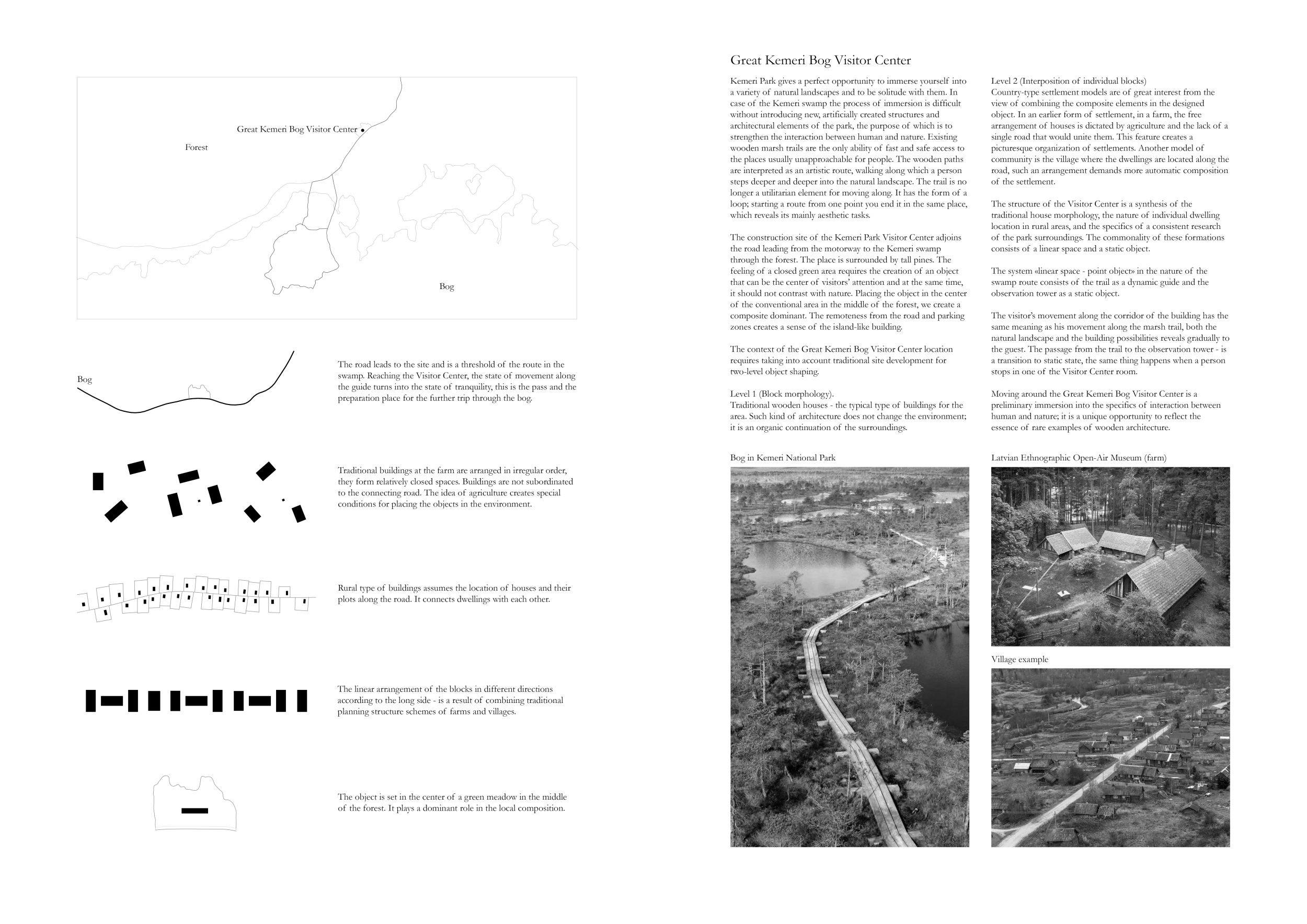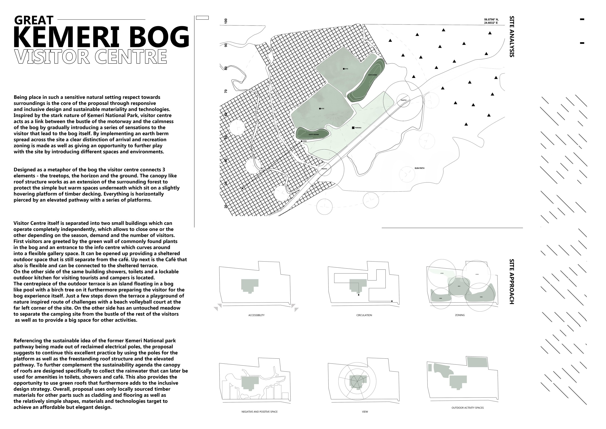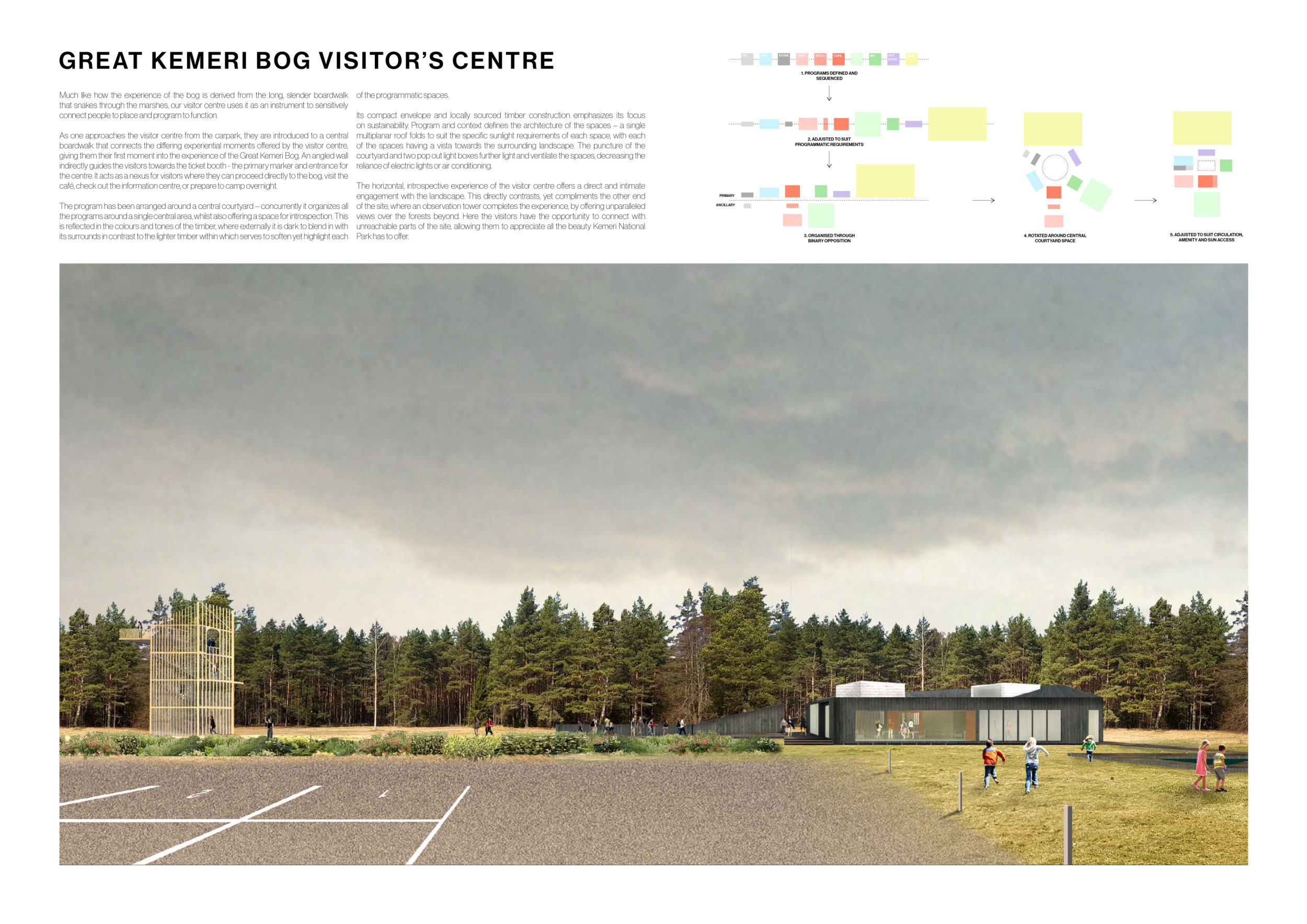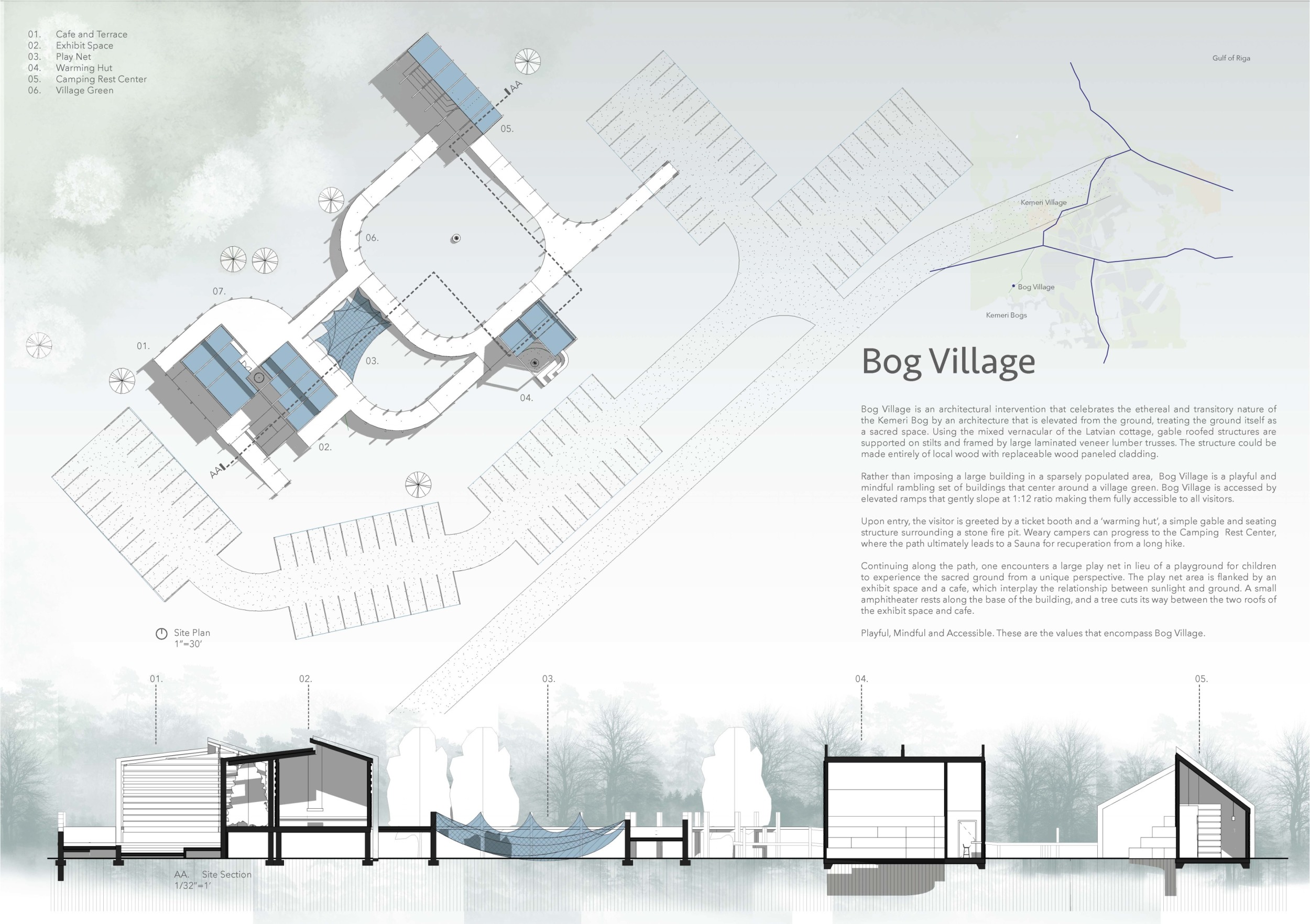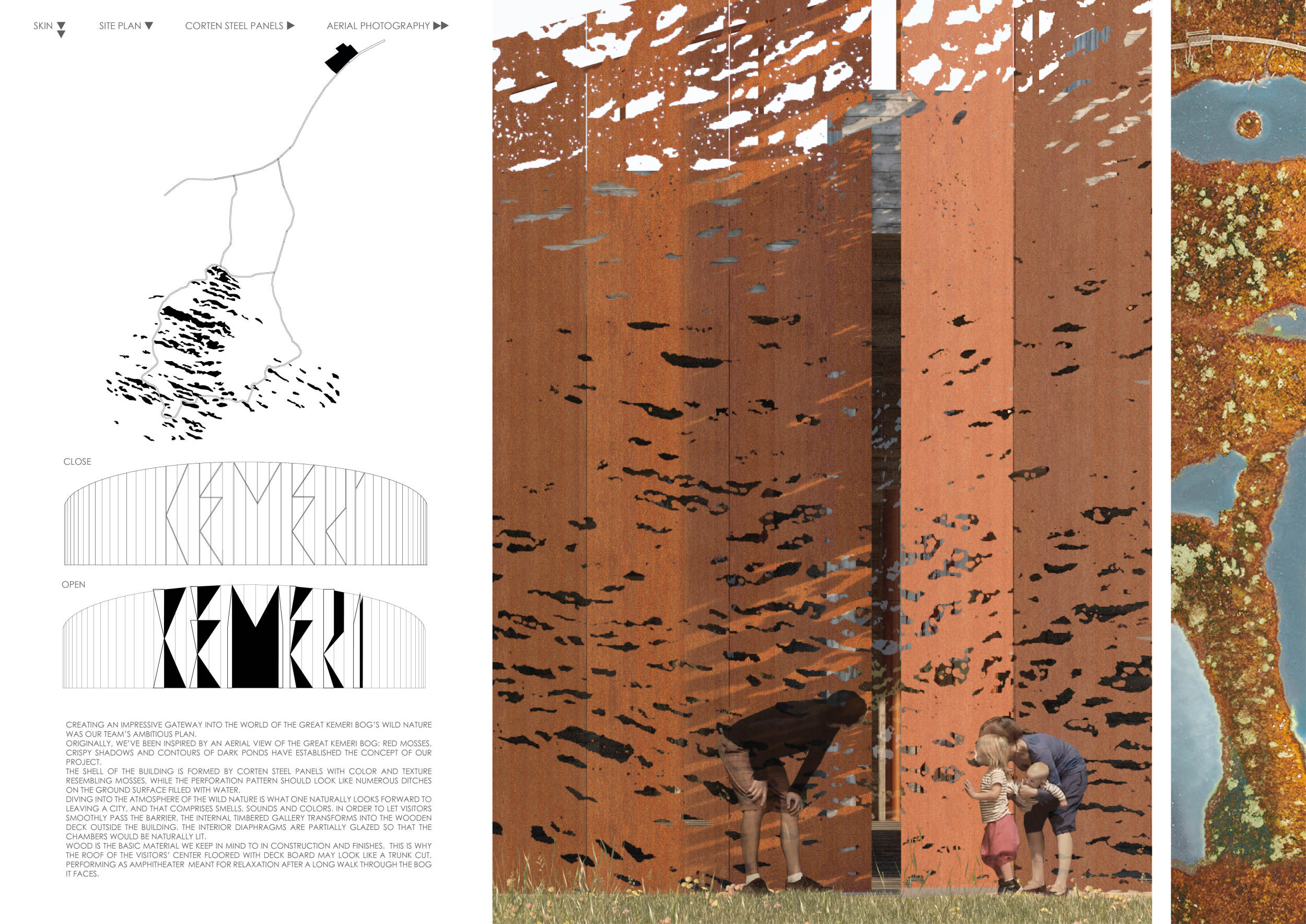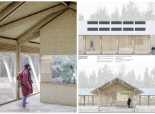 In the current competition participants were tasked with designing a visitor center on a site located at the entry to the Great Kemeri Bog boardwalk. The site is currently used as a car park and gathering point for boardwalk visitors.