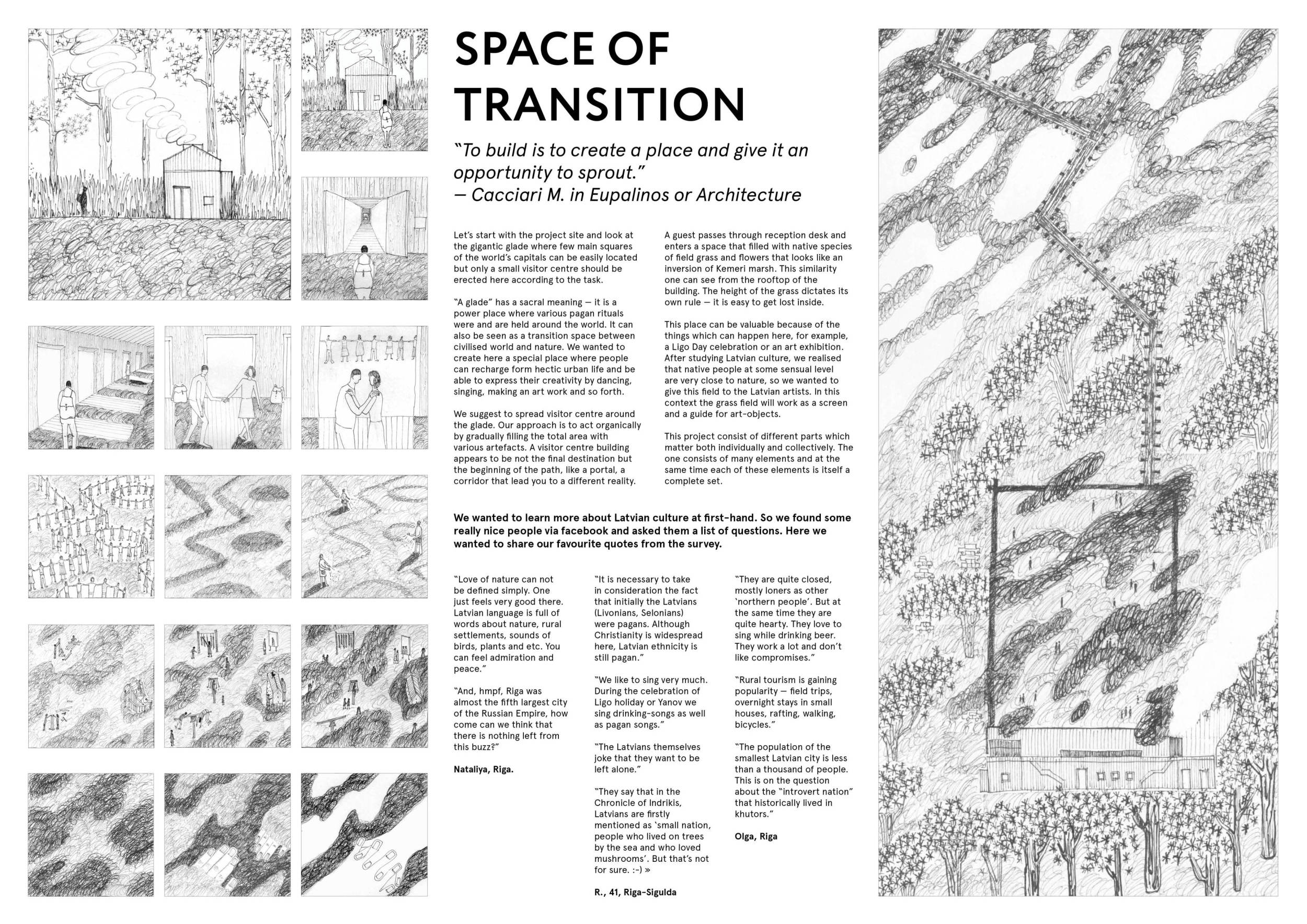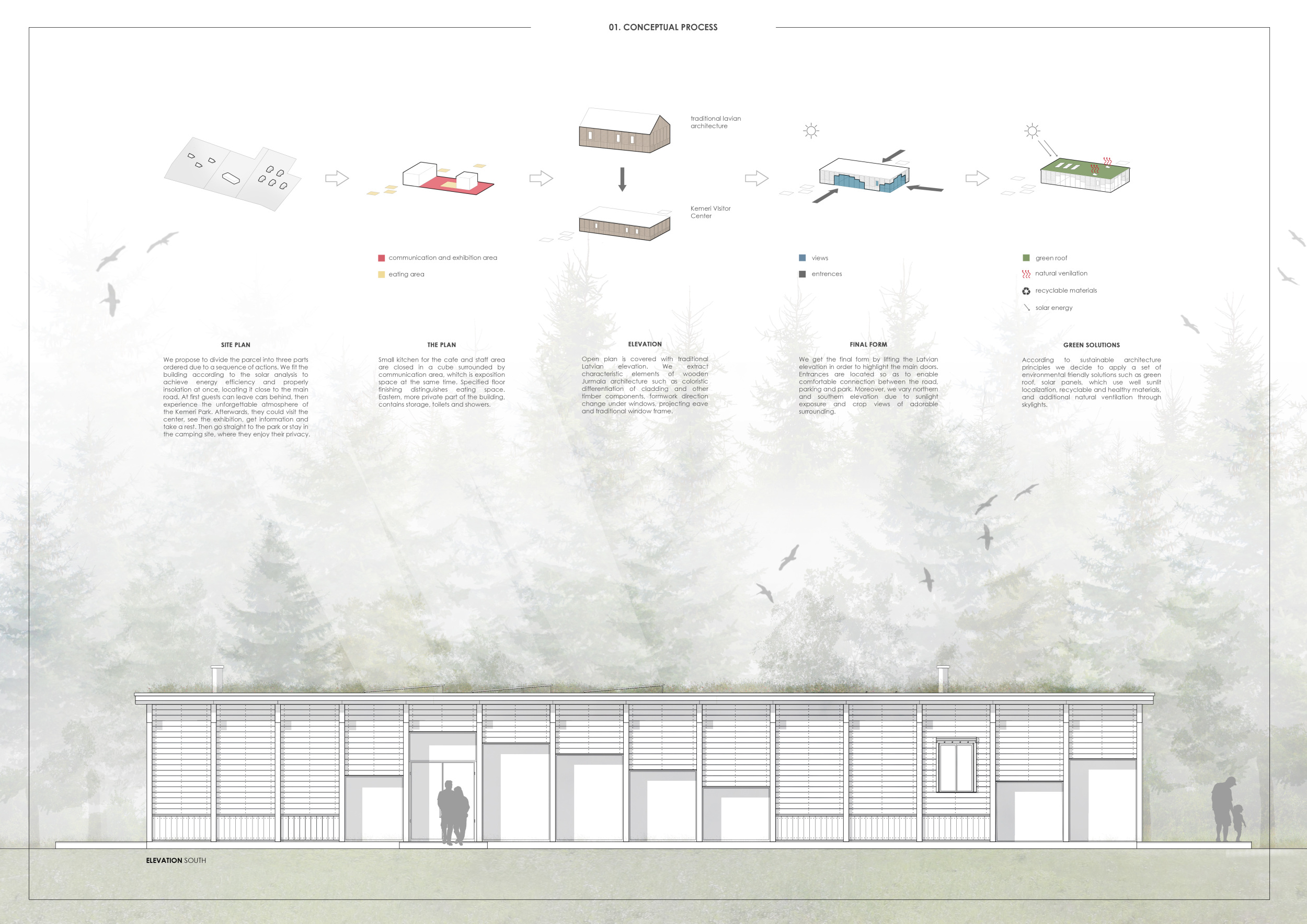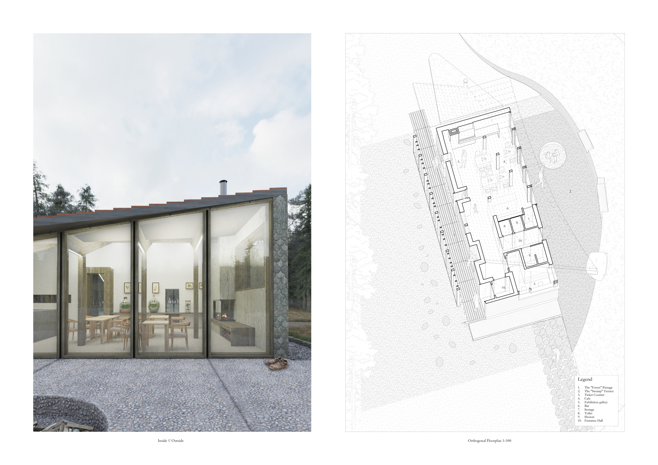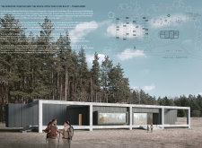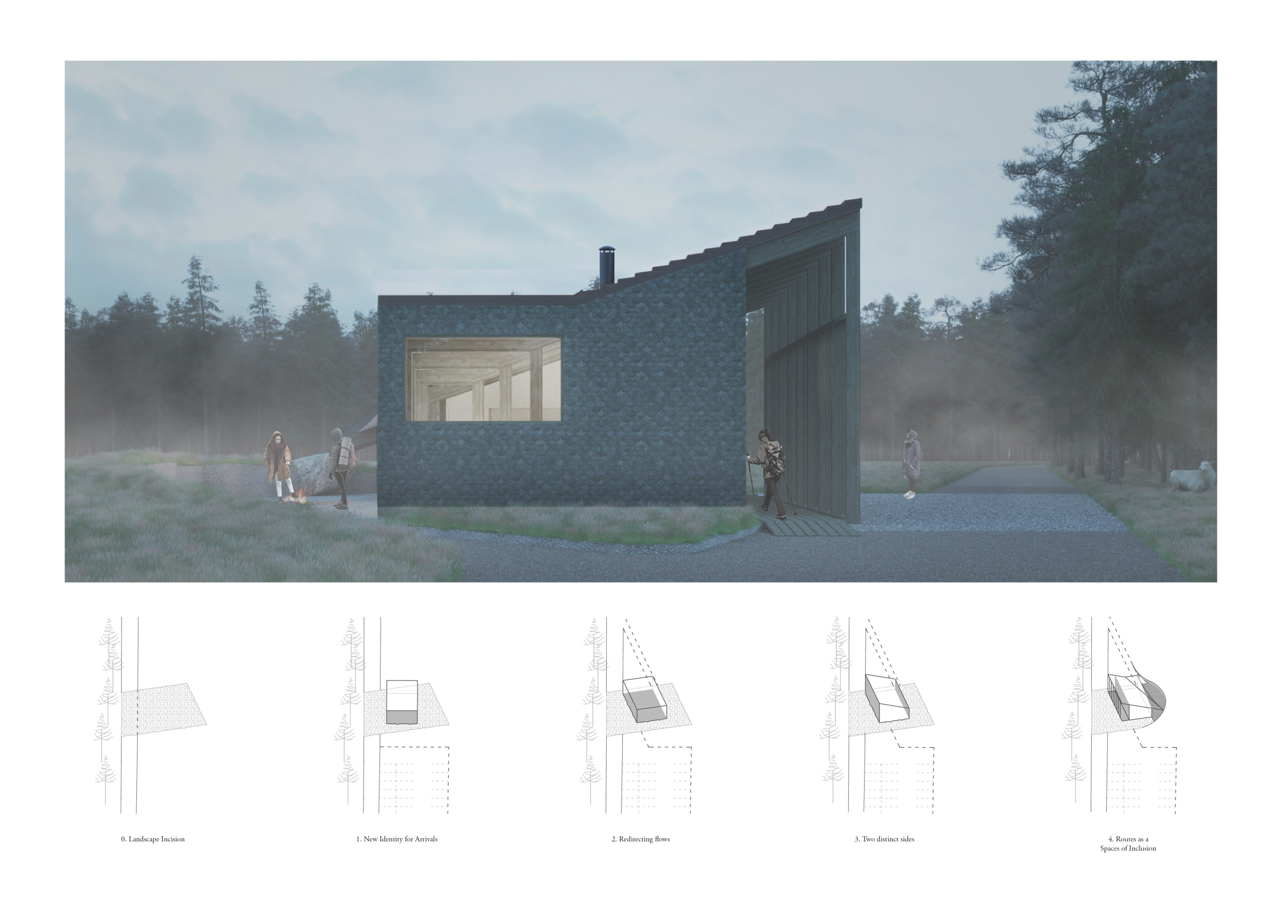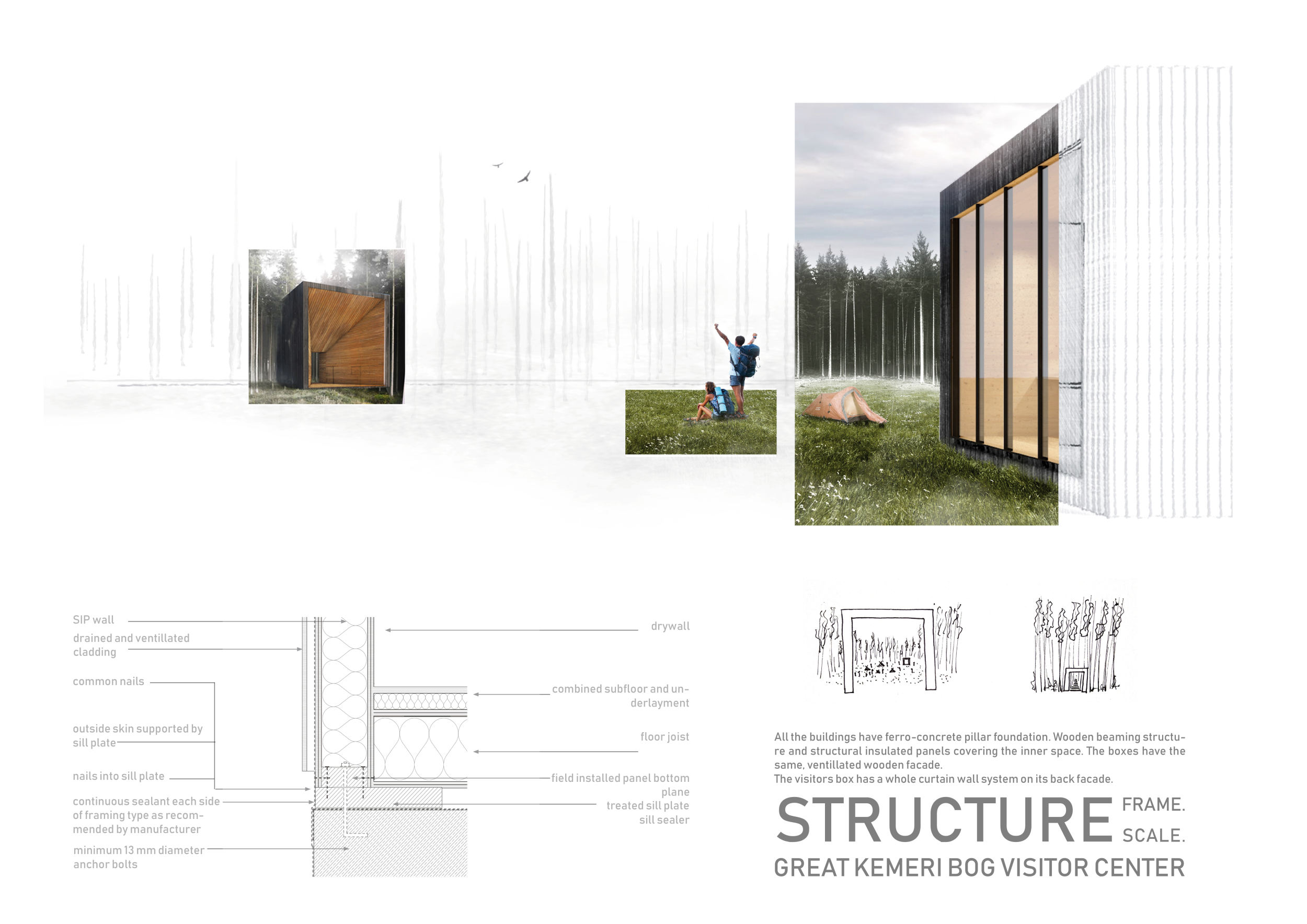 In the current competition participants were tasked with designing a visitor center on a site located at the entry to the Great Kemeri Bog boardwalk. The site is currently used as a car park and gathering point for boardwalk visitors.