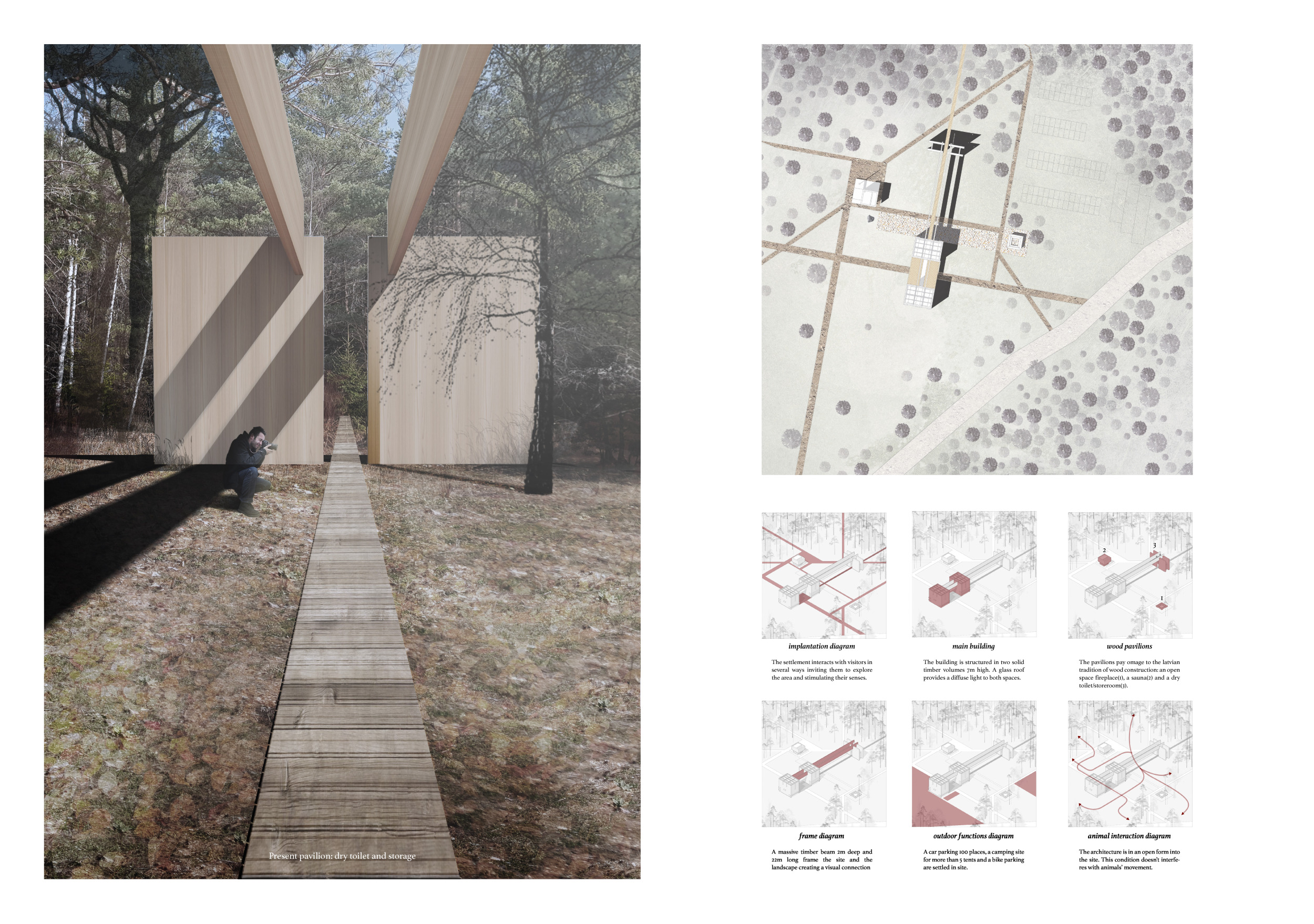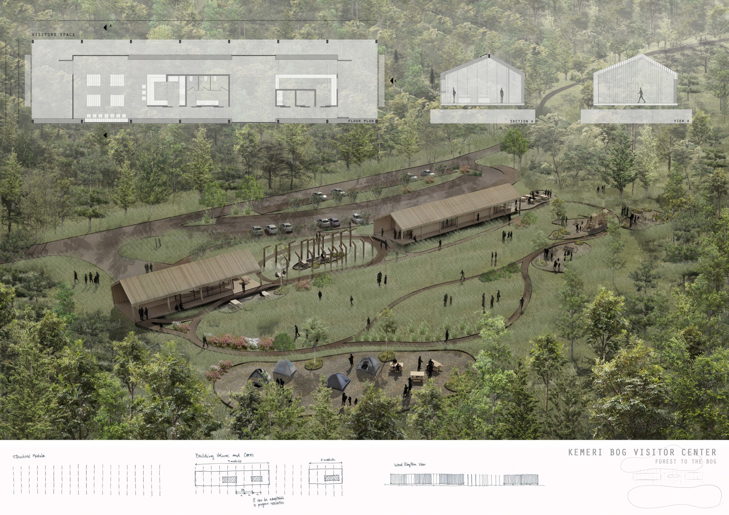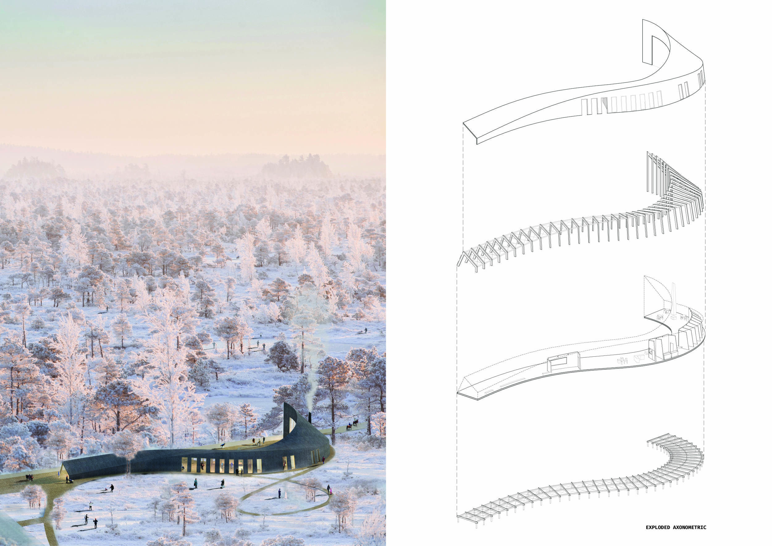The Great Kemeri Bog Visitor Center architecture competition invited participants to submit designs for an iconic entryway to the park. The competition is run in partnership with the Latvia Nature Conservation Agency, the organization charged with managing and protecting the park, and which has expressed interest in constructing the winning proposal.