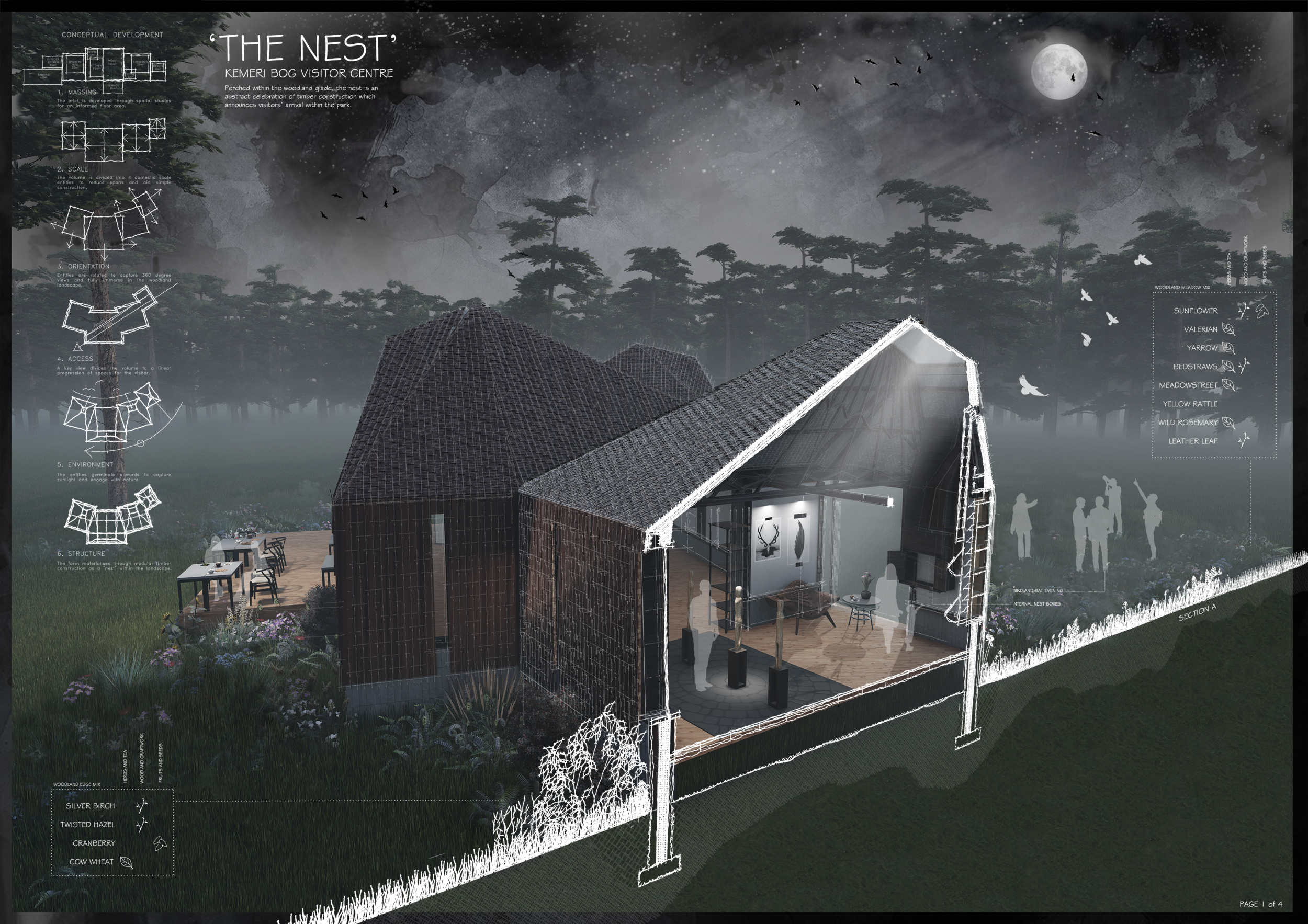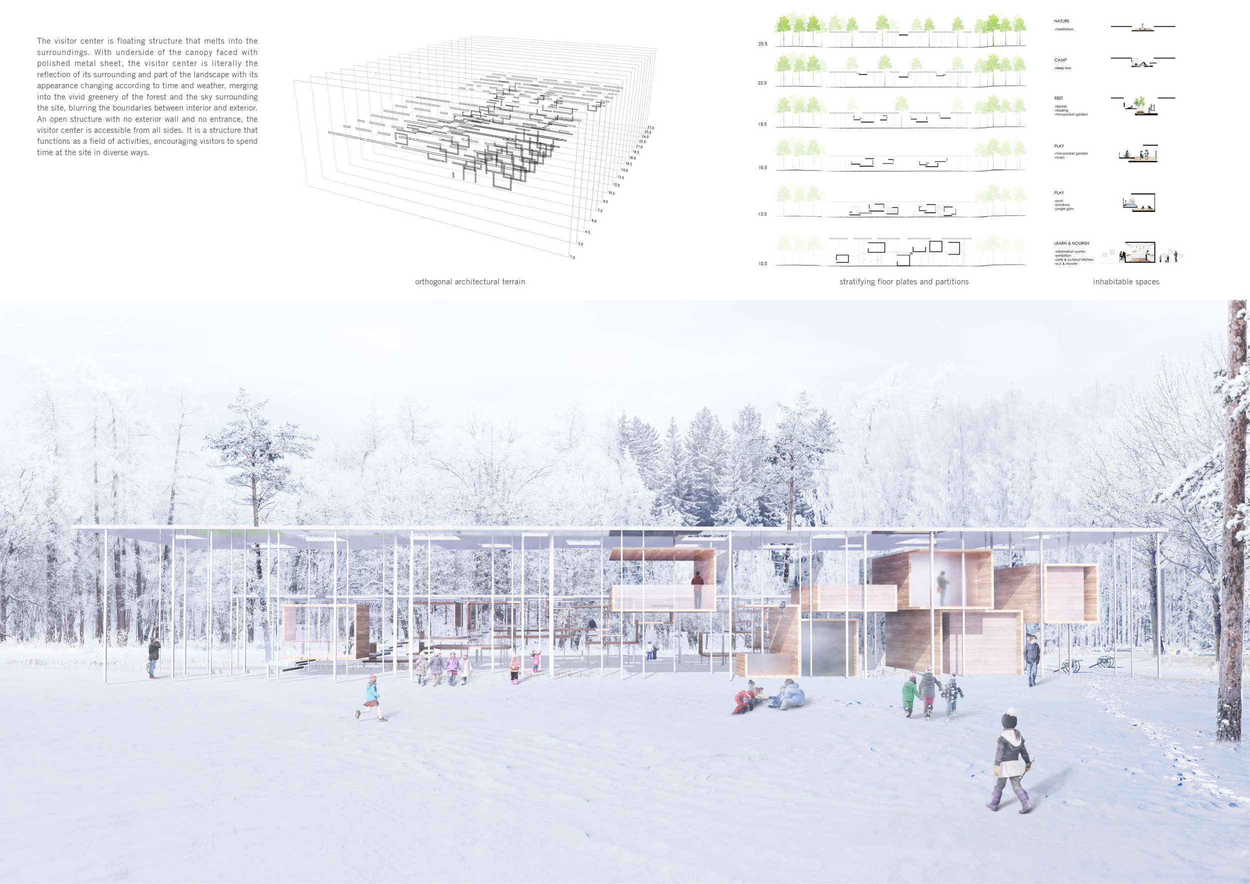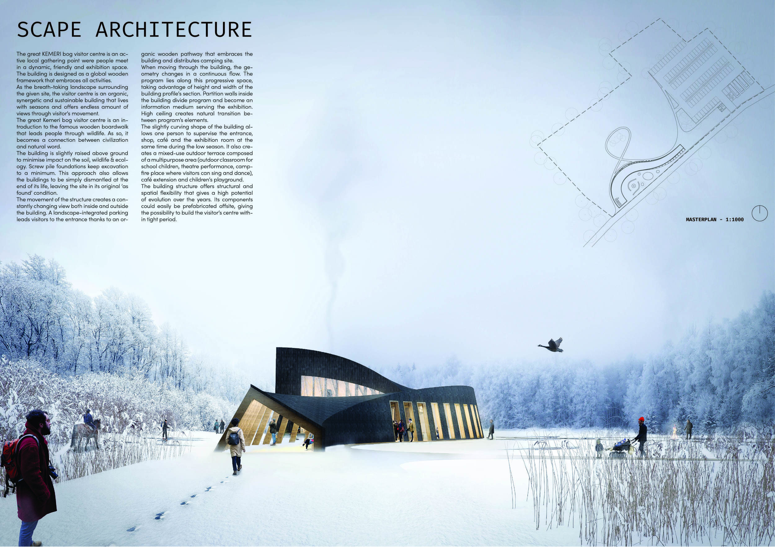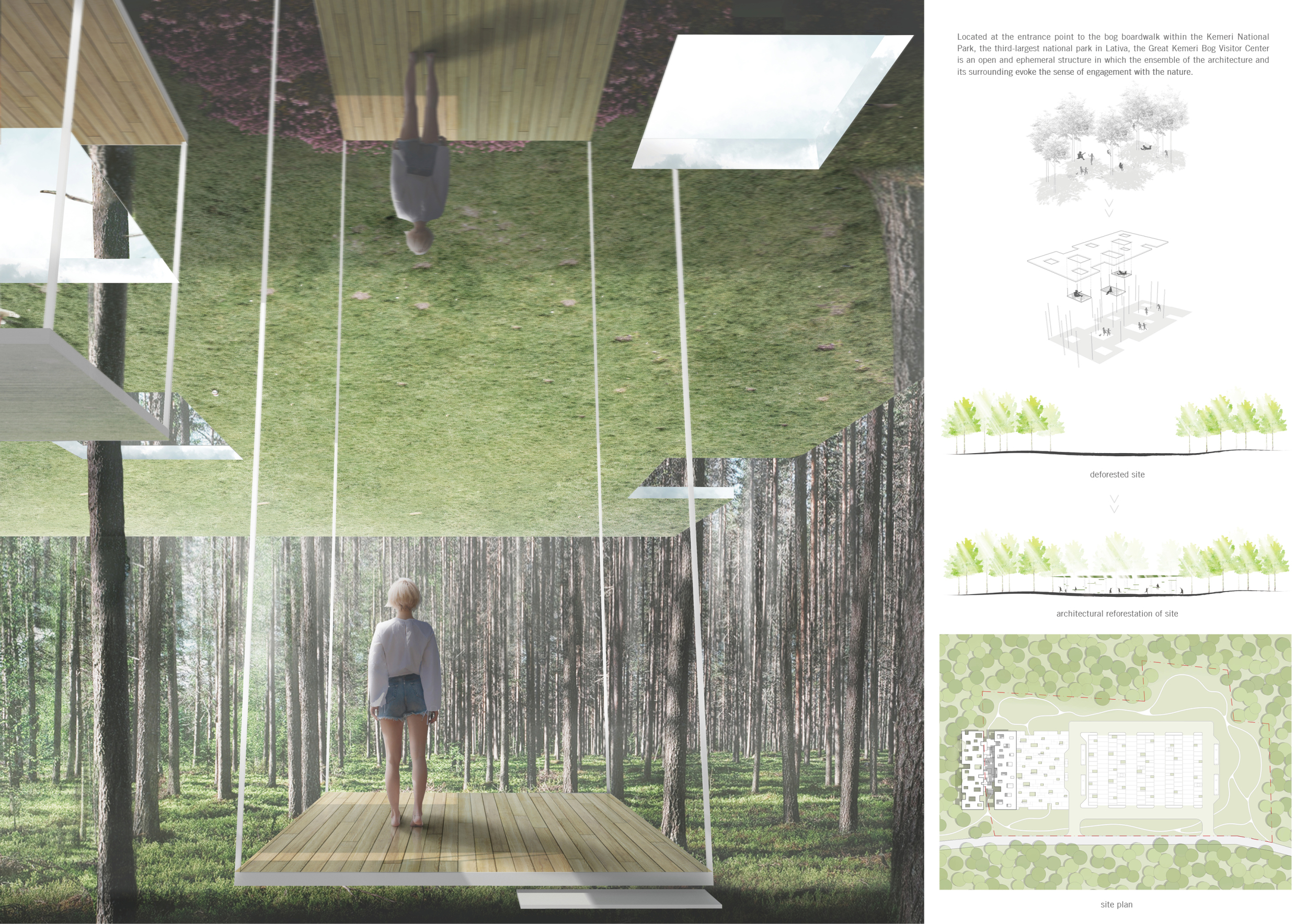 The Great Kemeri Bog Visitor Center architecture competition invited participants to submit designs for an iconic entryway to the park. The competition is run in partnership with the Latvia Nature Conservation Agency, the organization charged with managing and protecting the park, and which has expressed interest in constructing the winning proposal.