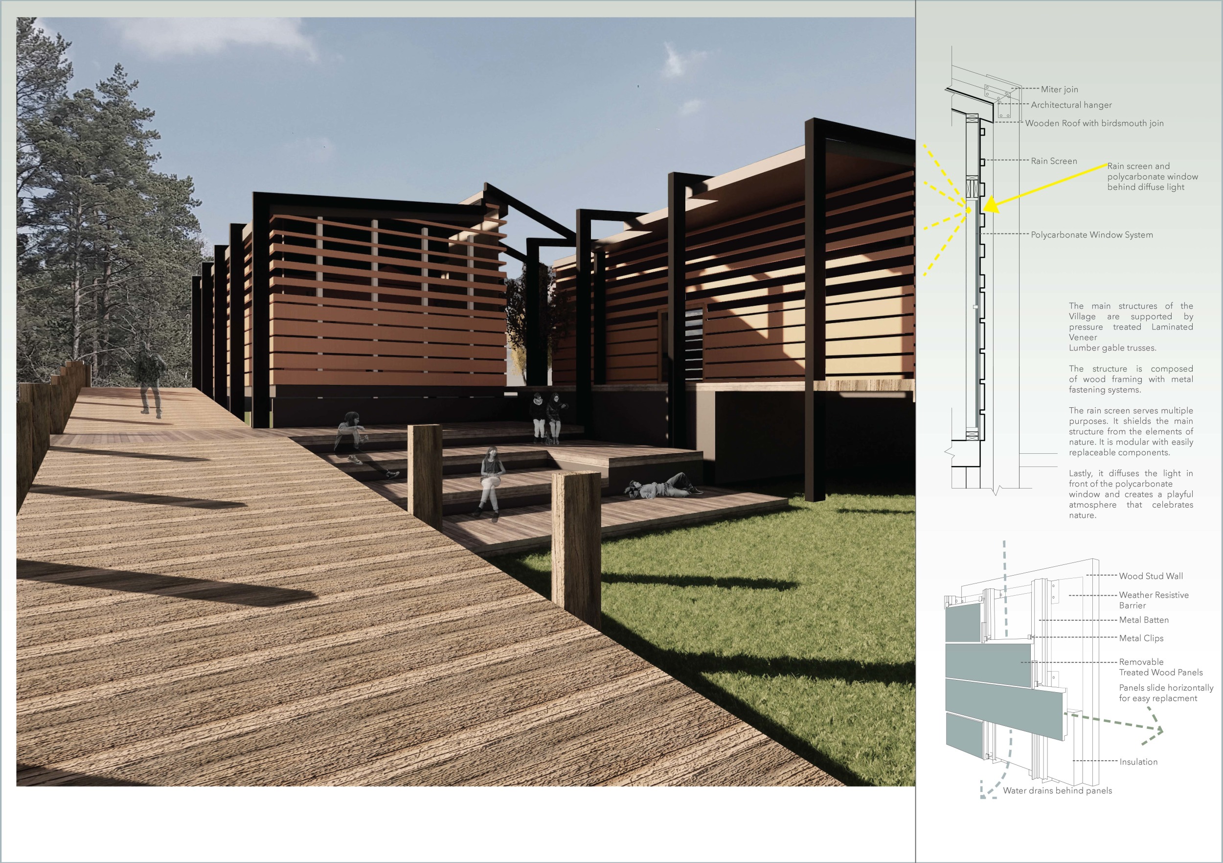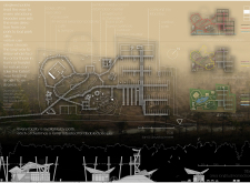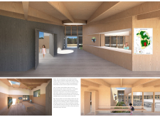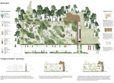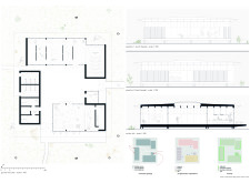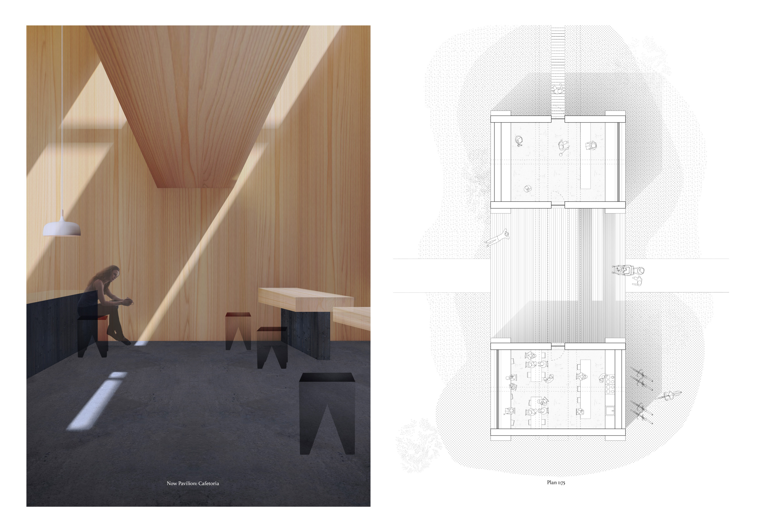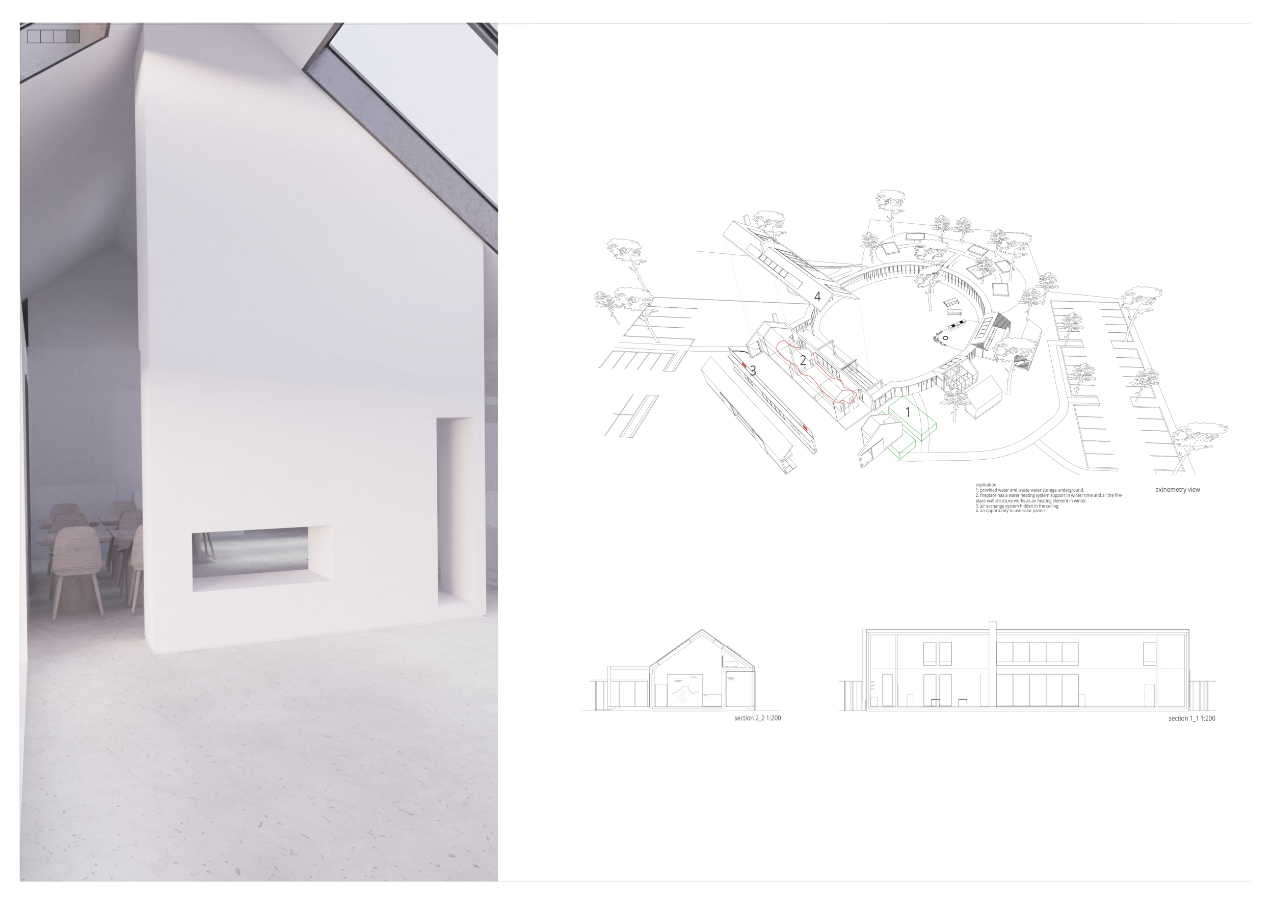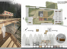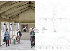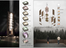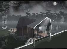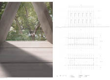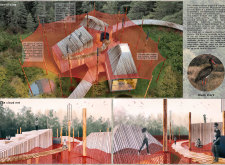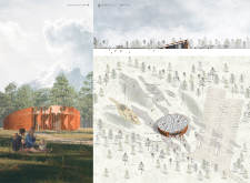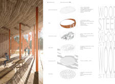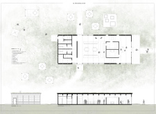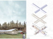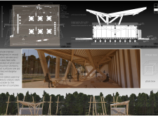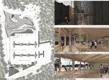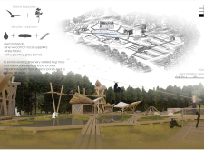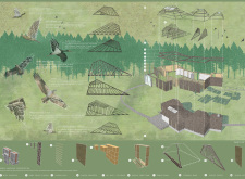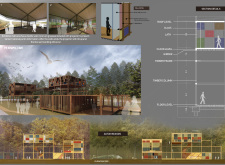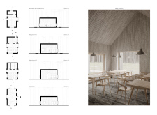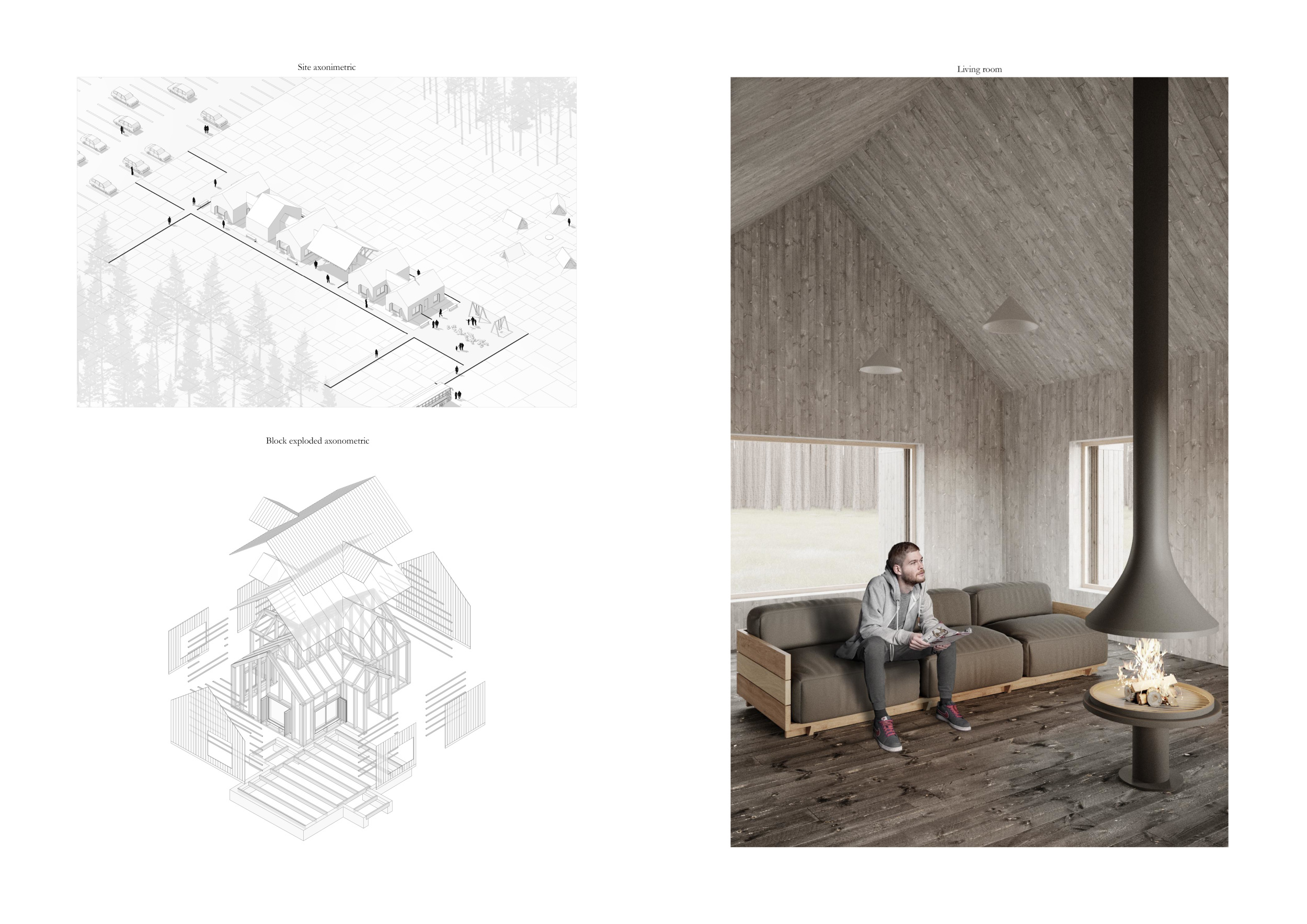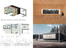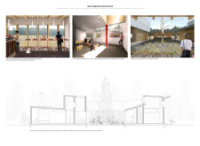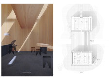 The design is commended for its use of a repeatable and constructable module that manages to create an organic, landscape-like form. The project proposes a burned-wood cladding that fortifies it against Latvia’s variable weather, and interiors of natural wood that connect it well with its forest surroundings. The section drawings and details are especially well-considered for modularity and construction using sustainable materials. Read more The building’s plan form strongly establishes a central gathering space, however the jury questions the vertical pitches and dips and wonders if the geometry might rather relate more strongly to its internal program. The project certainly has the potential to become a park landmark.