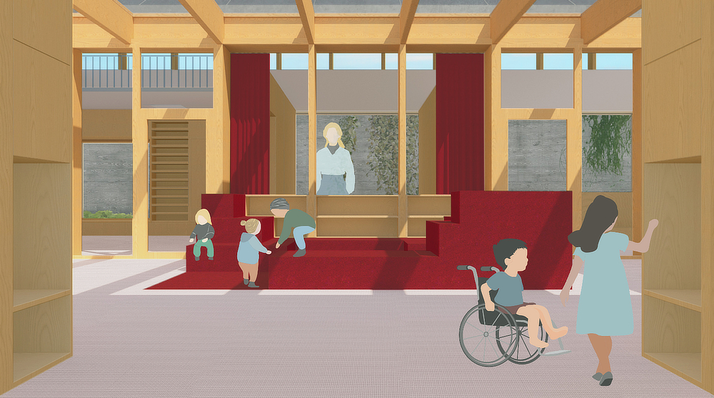 The second prize was awarded to Jona Paul Hermann Schulte and Karim Elghor from Germany. Their design is a flexible, child-centric space that prioritizes sustainability, acoustics, and spatial connectivity, fostering both education and community interaction.
