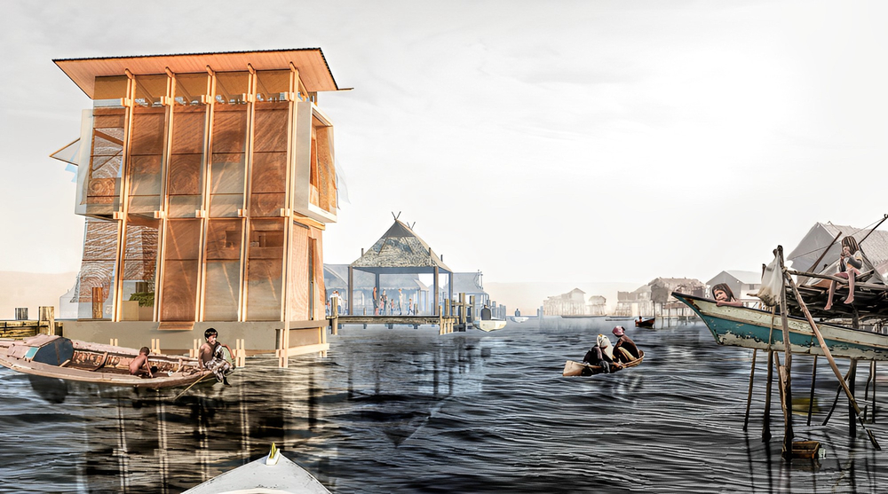 The second prize was awarded to Giorgio Maria Martellono, Luca Quadro, Chang Liu, and Jacopo Leccia from Italy for their floating colony of modular microhomes, addressing Hong Kong’s housing crisis.
