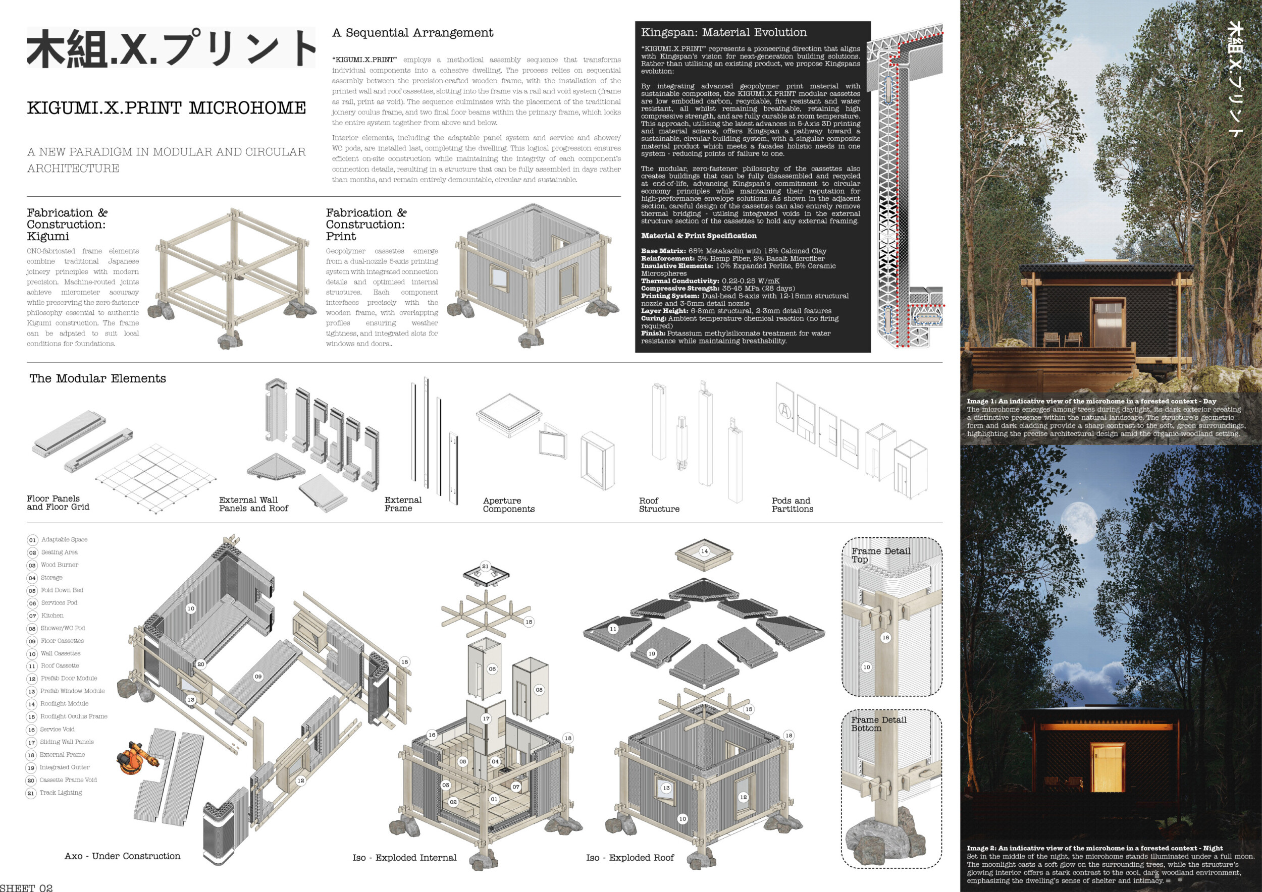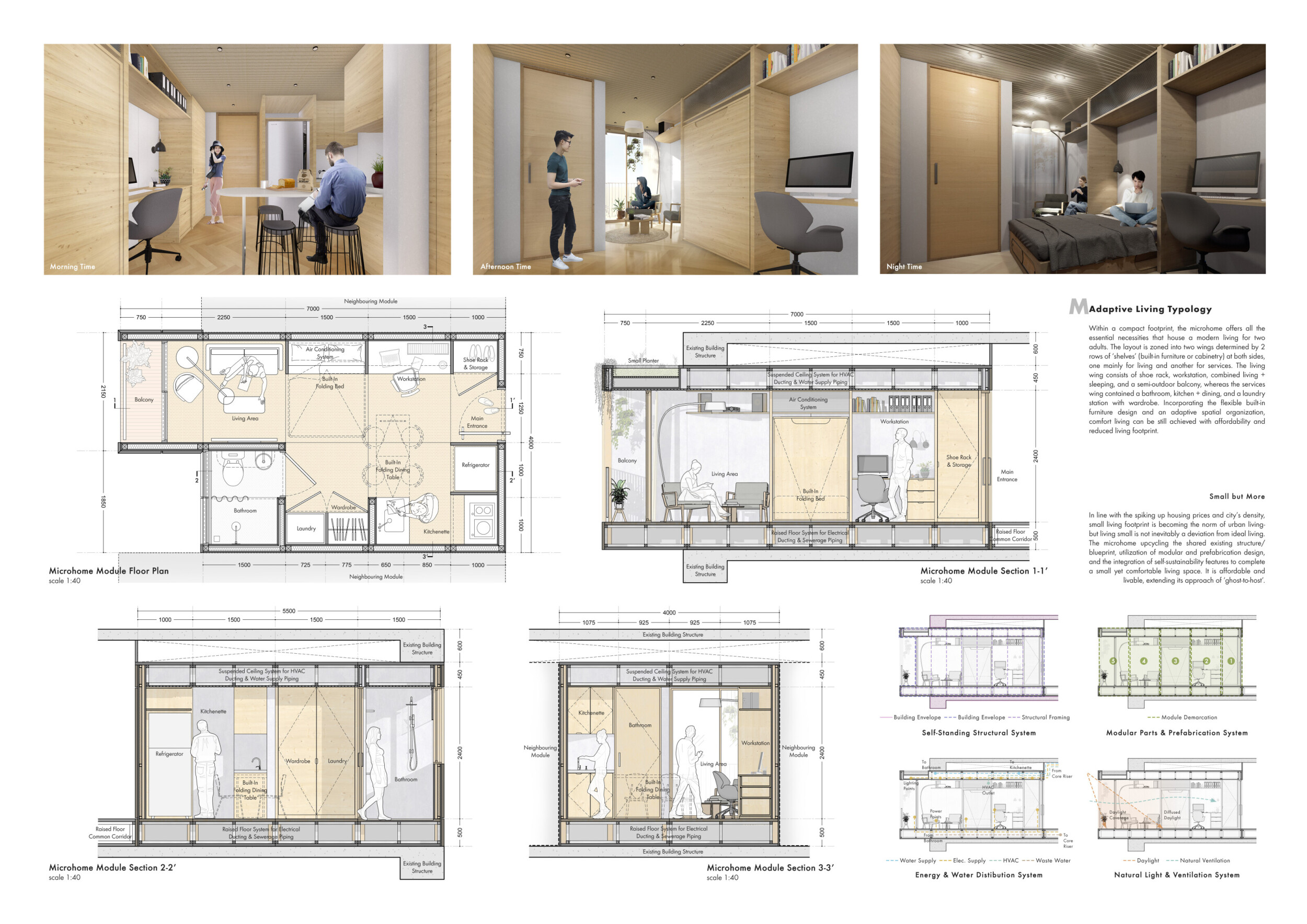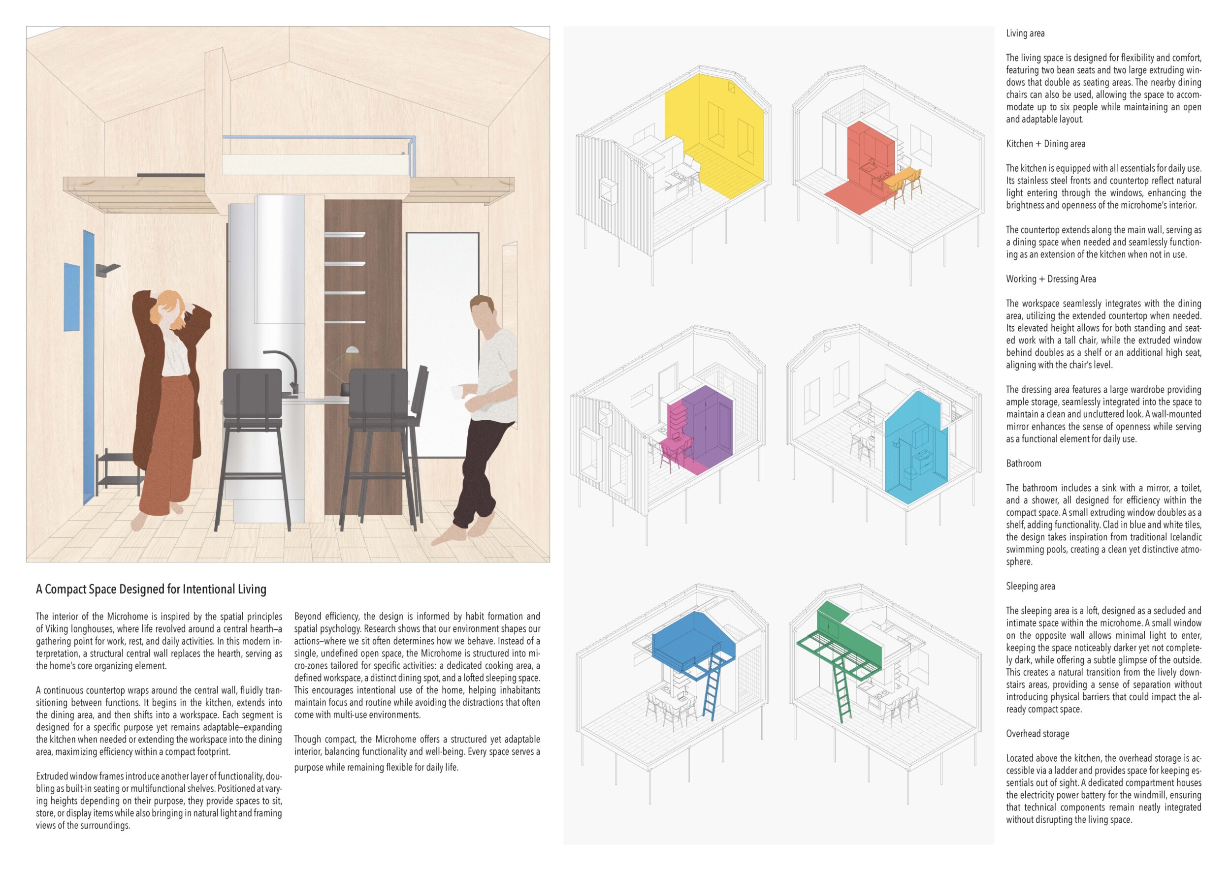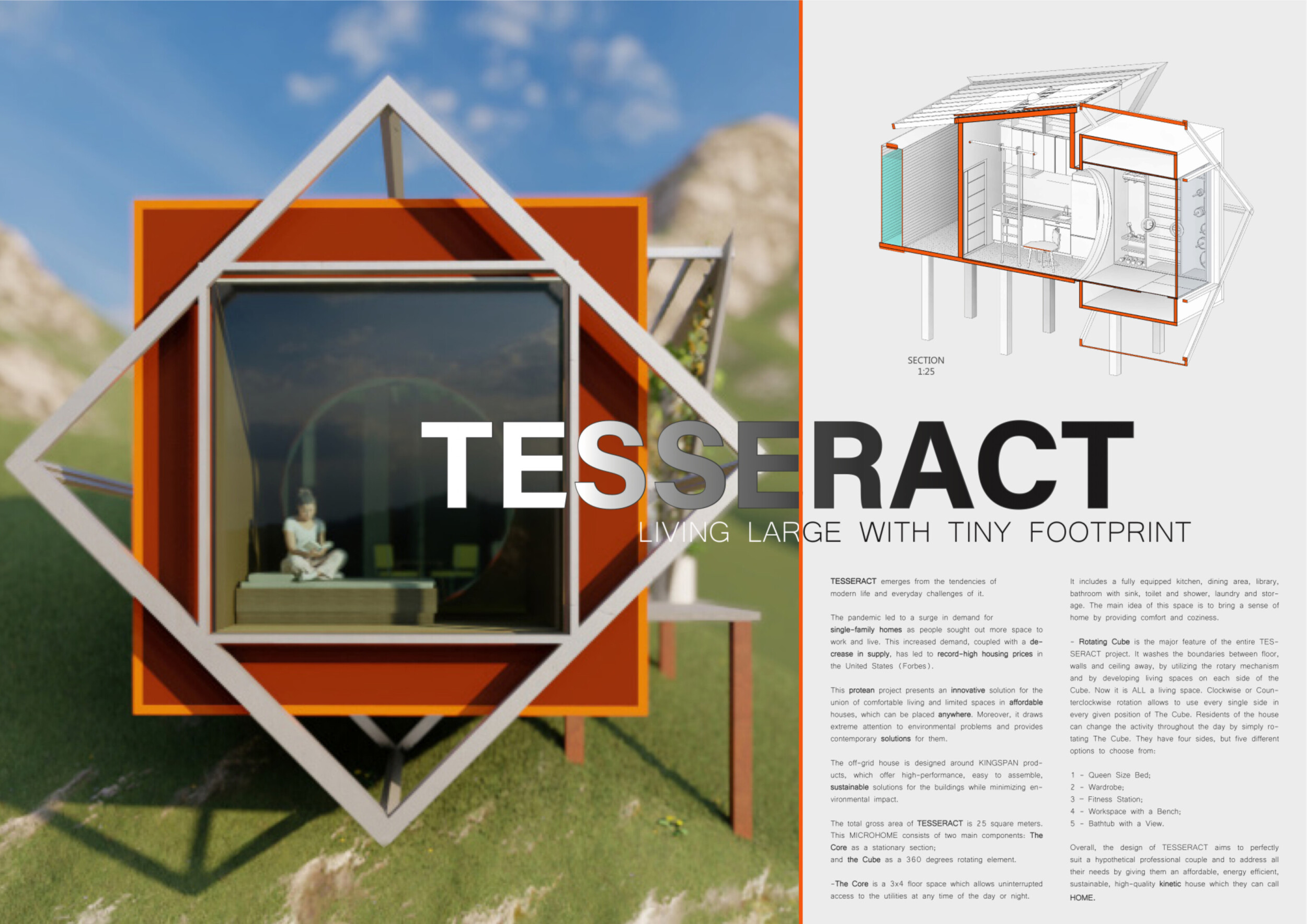 The MICROHOME Kingspan Edition invited participants to conceptualize an off-grid modular dwelling for a hypothetical young professional couple, with a total floor area not exceeding 25 square meters. This challenge encouraged innovative thinking in spatial organization, distinctive aesthetics, and the use of state-of-the-art technologies and materials. The competition had no geographical restrictions on the hypothetical sites, allowing for unlimited creativity whether urban or rural. Participants were asked to focus on key design considerations including community Integration, sustainability and environmental impact, affordability and accessibility, adaptability and scalability, and educational and social awareness. The global housing crisis is intensifying, with rising property costs and insufficient housing supply affecting millions. As urban areas grow and environmental concerns increase, there is a pressing need for affordable, sustainable, and compact housing solutions. Architects are crucial in addressing this issue by designing efficient and environmentally responsible homes. Compact living offers a practical approach to providing affordable housing while supporting sustainable urban development. By focusing on these aspects, architects can contribute to creating functional and equitable housing solutions that meet current and future needs.