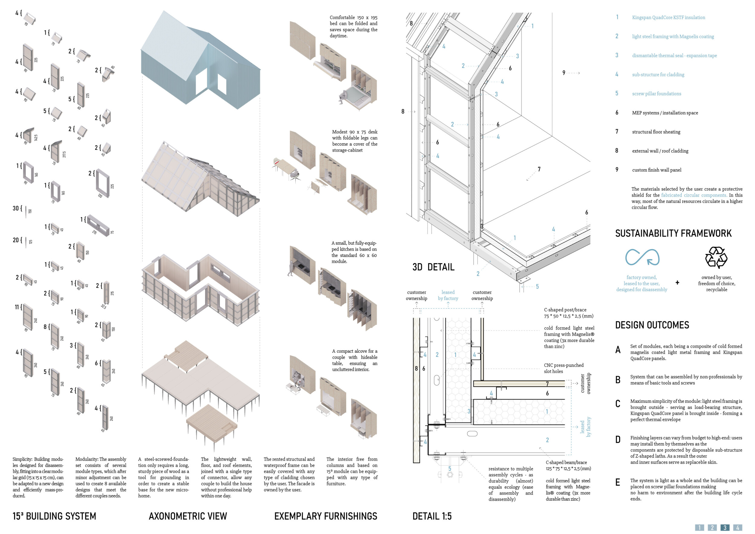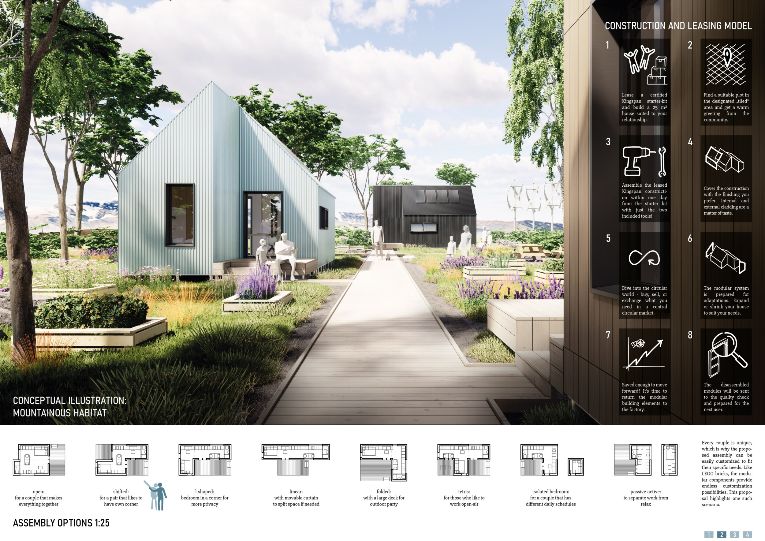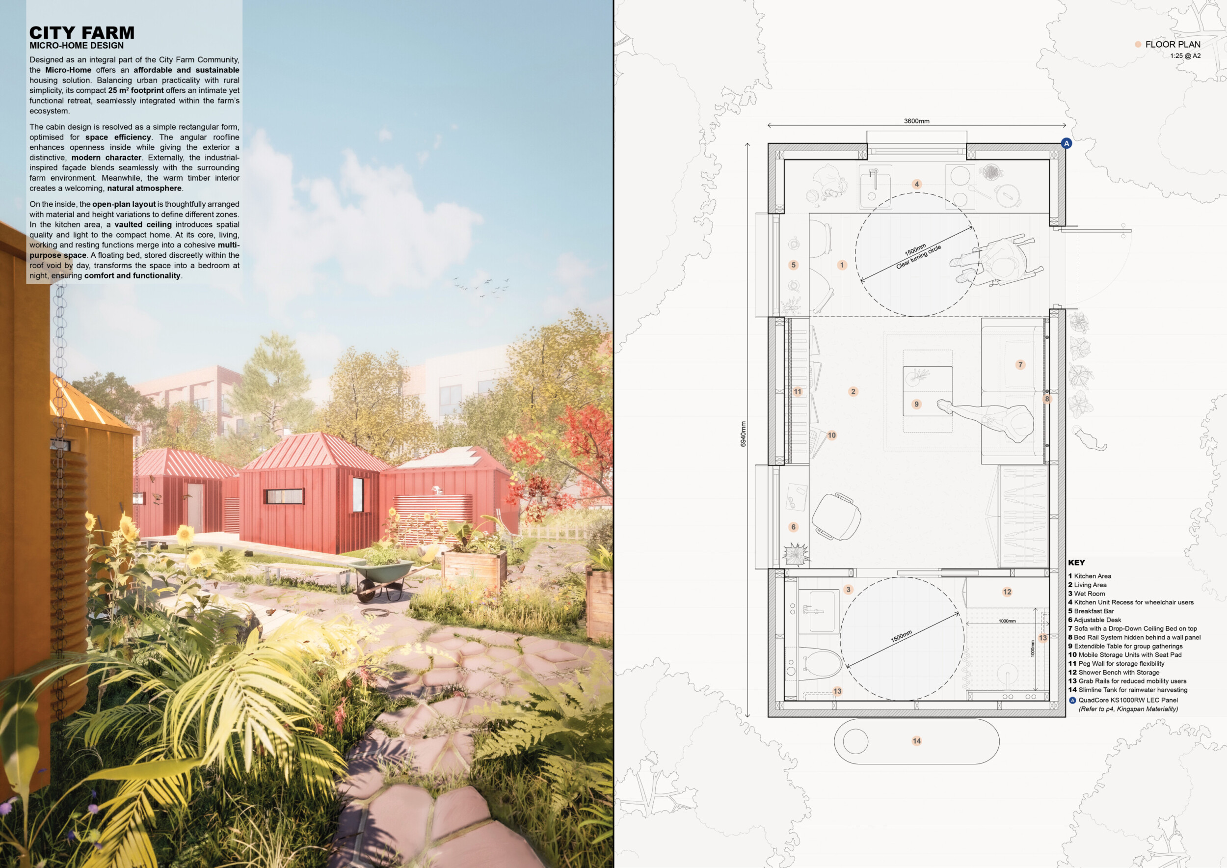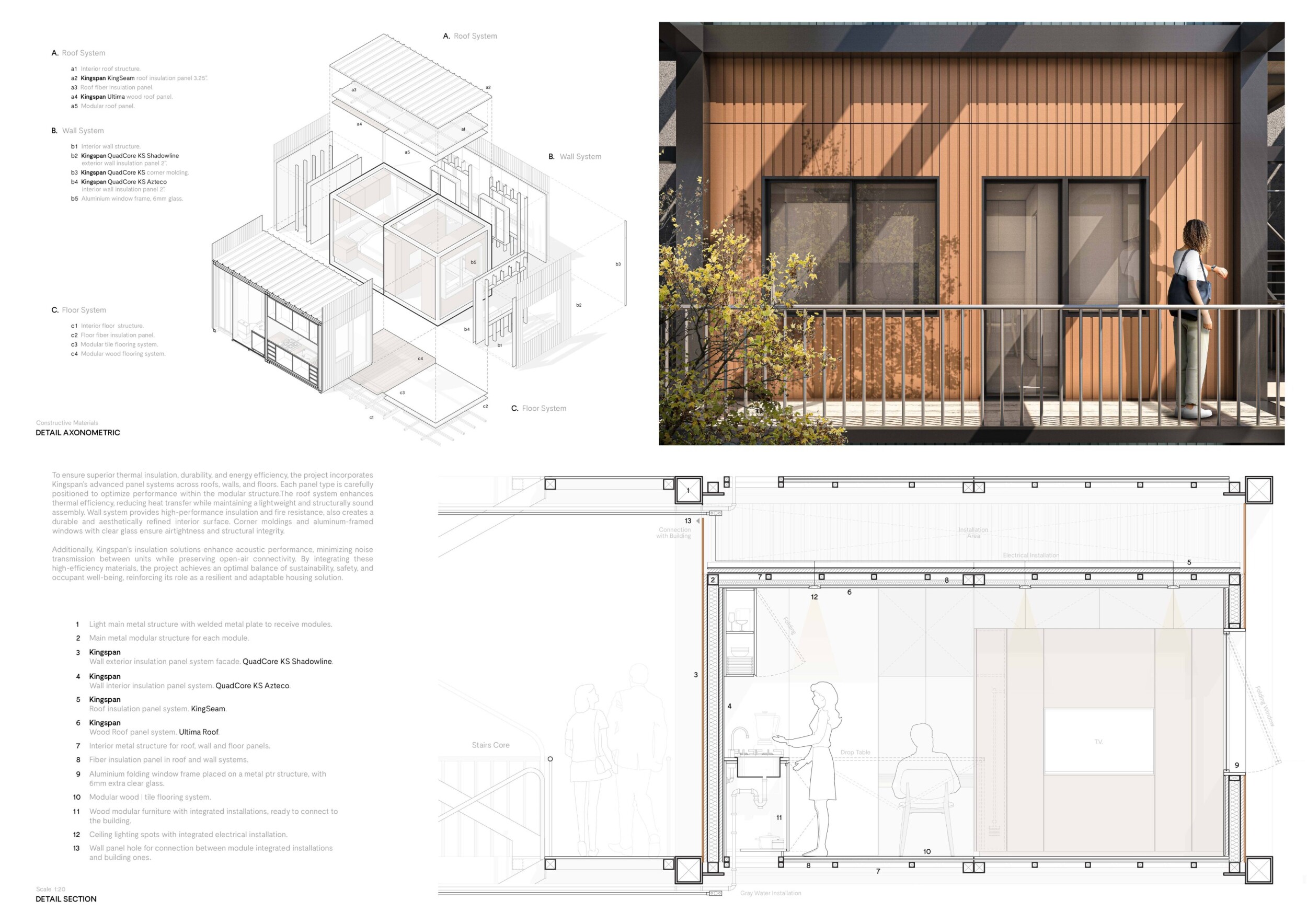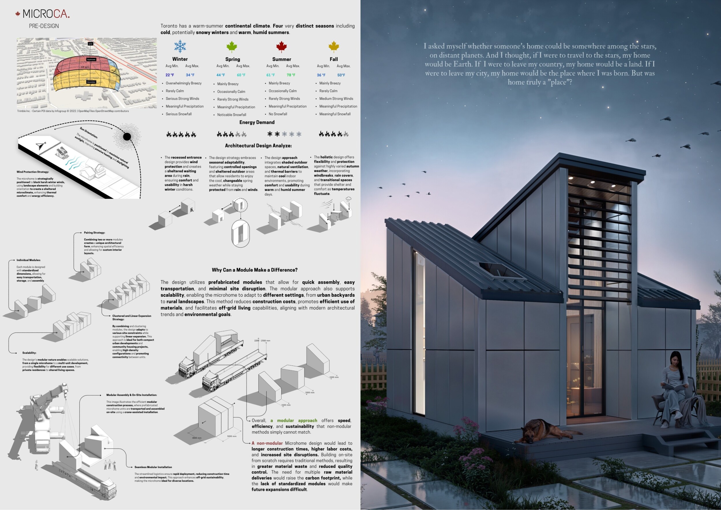 The MICROHOME Kingspan Edition invited participants to conceptualize an off-grid modular dwelling for a hypothetical young professional couple, with a total floor area not exceeding 25 square meters. This challenge encouraged innovative thinking in spatial organization, distinctive aesthetics, and the use of state-of-the-art technologies and materials. The competition had no geographical restrictions on the hypothetical sites, allowing for unlimited creativity whether urban or rural. Participants were asked to focus on key design considerations including community Integration, sustainability and environmental impact, affordability and accessibility, adaptability and scalability, and educational and social awareness. The global housing crisis is intensifying, with rising property costs and insufficient housing supply affecting millions. As urban areas grow and environmental concerns increase, there is a pressing need for affordable, sustainable, and compact housing solutions. Architects are crucial in addressing this issue by designing efficient and environmentally responsible homes. Compact living offers a practical approach to providing affordable housing while supporting sustainable urban development. By focusing on these aspects, architects can contribute to creating functional and equitable housing solutions that meet current and future needs.