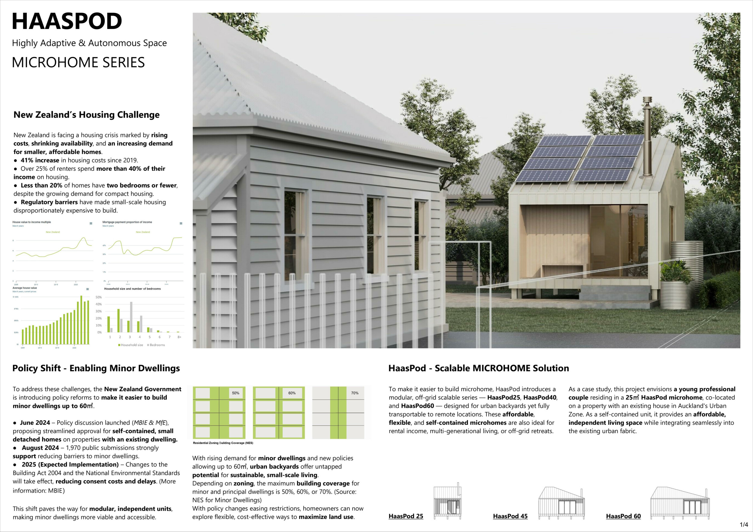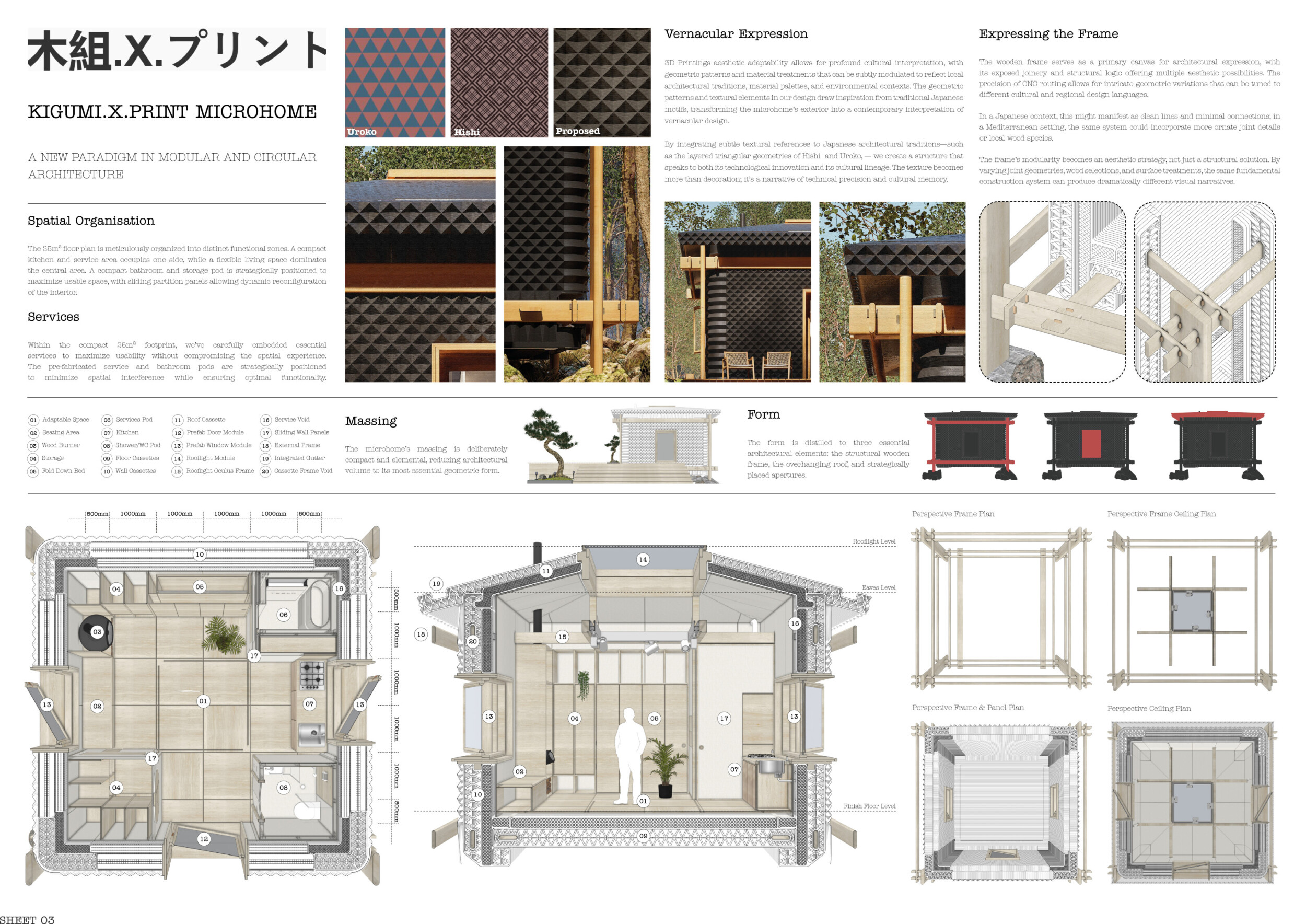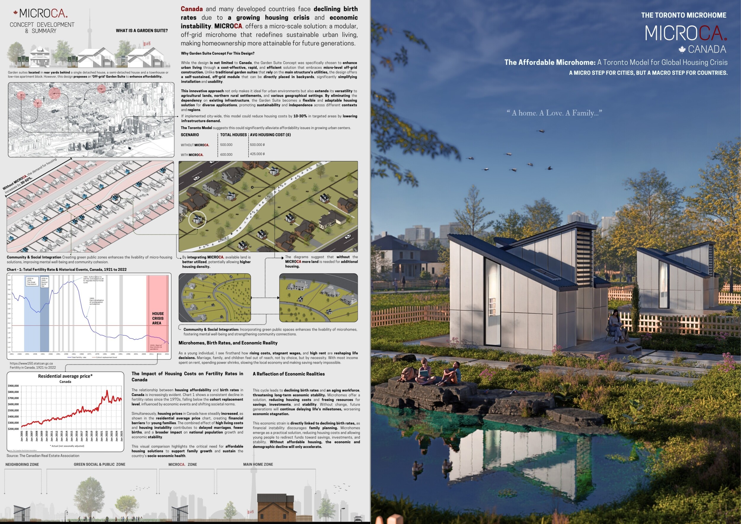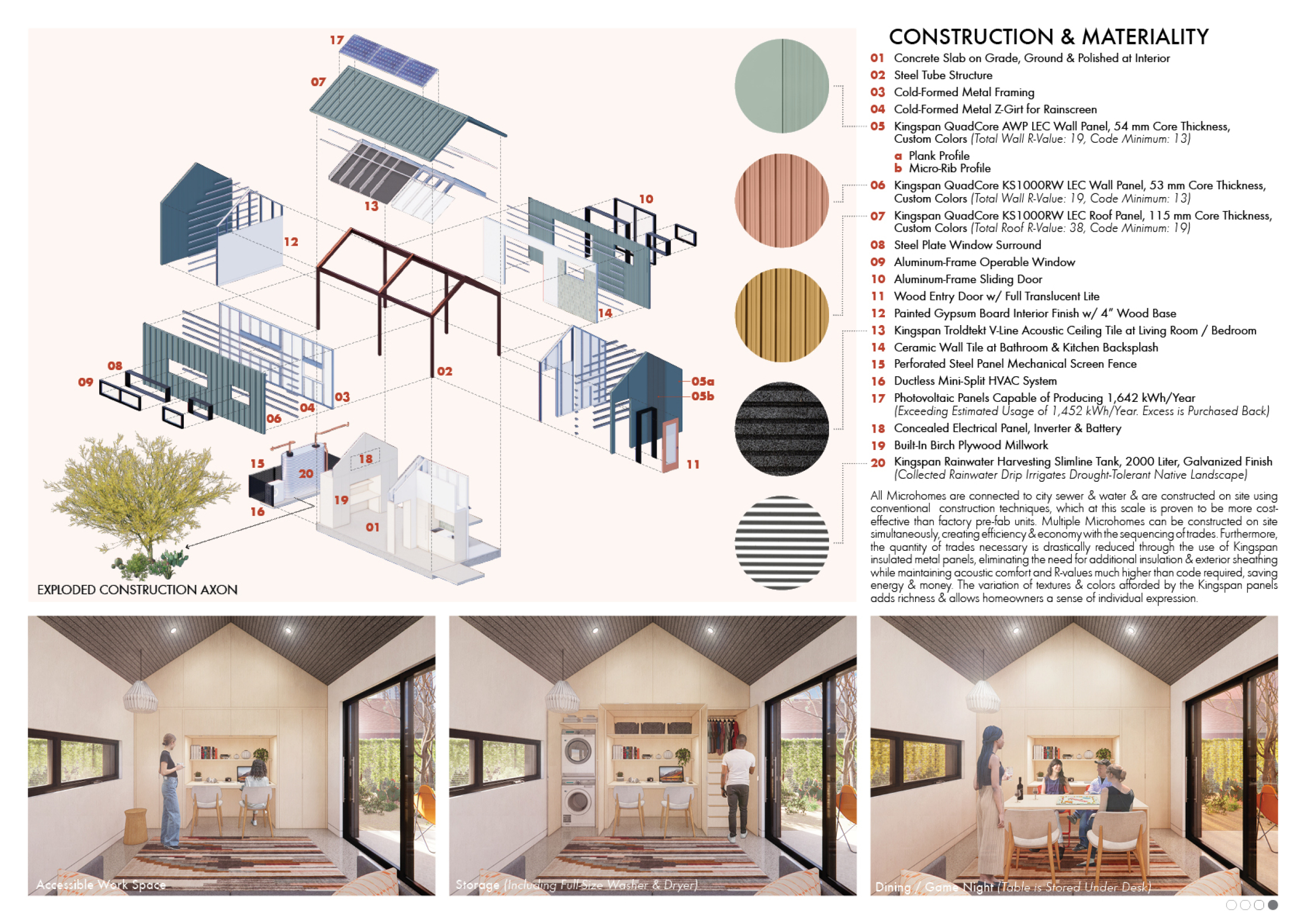 The MICROHOME Kingspan Edition invited participants to conceptualize an off-grid modular dwelling for a hypothetical young professional couple, with a total floor area not exceeding 25 square meters. This challenge encouraged innovative thinking in spatial organization, distinctive aesthetics, and the use of state-of-the-art technologies and materials. The competition had no geographical restrictions on the hypothetical sites, allowing for unlimited creativity whether urban or rural. Participants were asked to focus on key design considerations including community Integration, sustainability and environmental impact, affordability and accessibility, adaptability and scalability, and educational and social awareness. The global housing crisis is intensifying, with rising property costs and insufficient housing supply affecting millions. As urban areas grow and environmental concerns increase, there is a pressing need for affordable, sustainable, and compact housing solutions. Architects are crucial in addressing this issue by designing efficient and environmentally responsible homes. Compact living offers a practical approach to providing affordable housing while supporting sustainable urban development. By focusing on these aspects, architects can contribute to creating functional and equitable housing solutions that meet current and future needs.