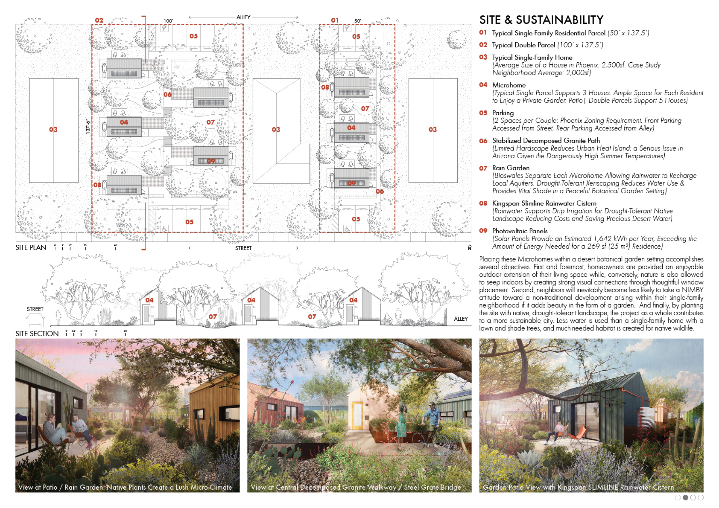 The project's strong linework and clean, well-structured layout makes the progression from community planning to building scale easy to follow. The text is concise and well-placed, helping anchor the more conceptual site strategies without overwhelming the drawings, though some diagrams and renderings would benefit from slightly more detailed annotation to better connect visuals to key technical ideas.