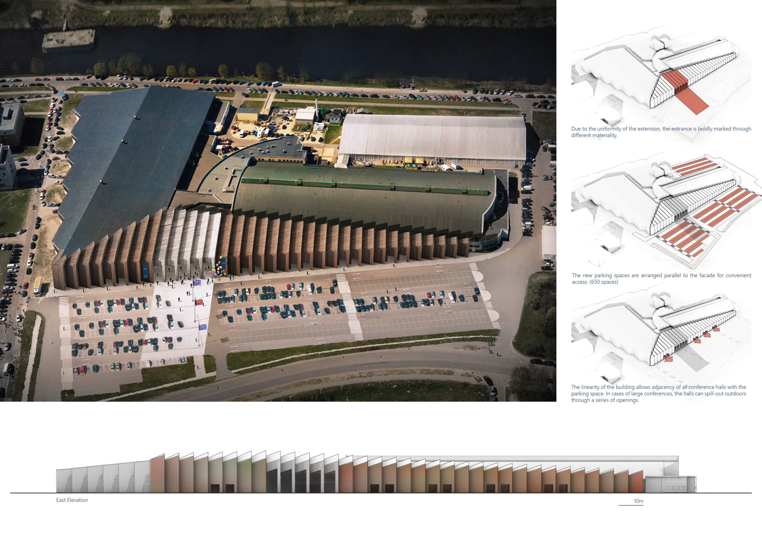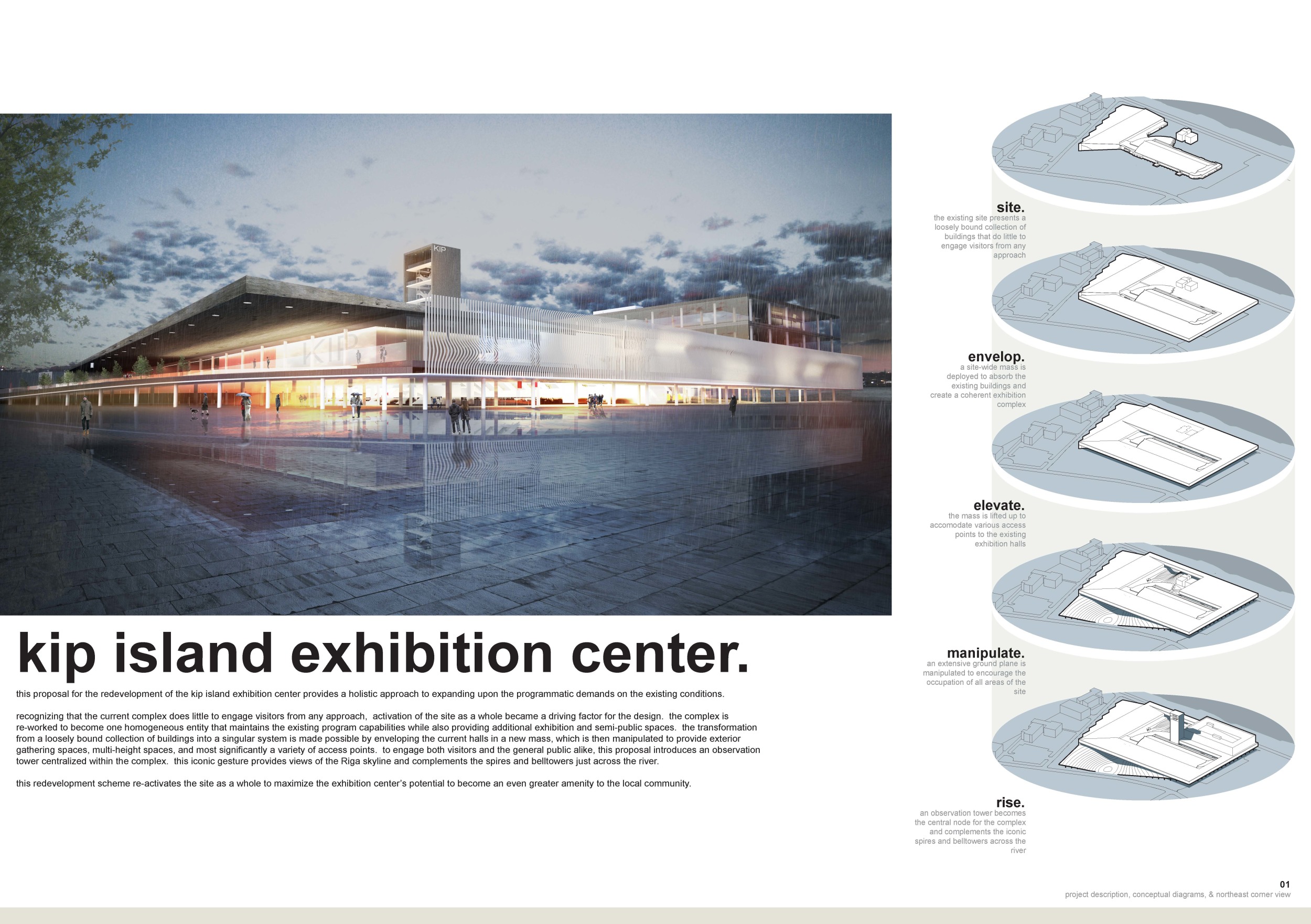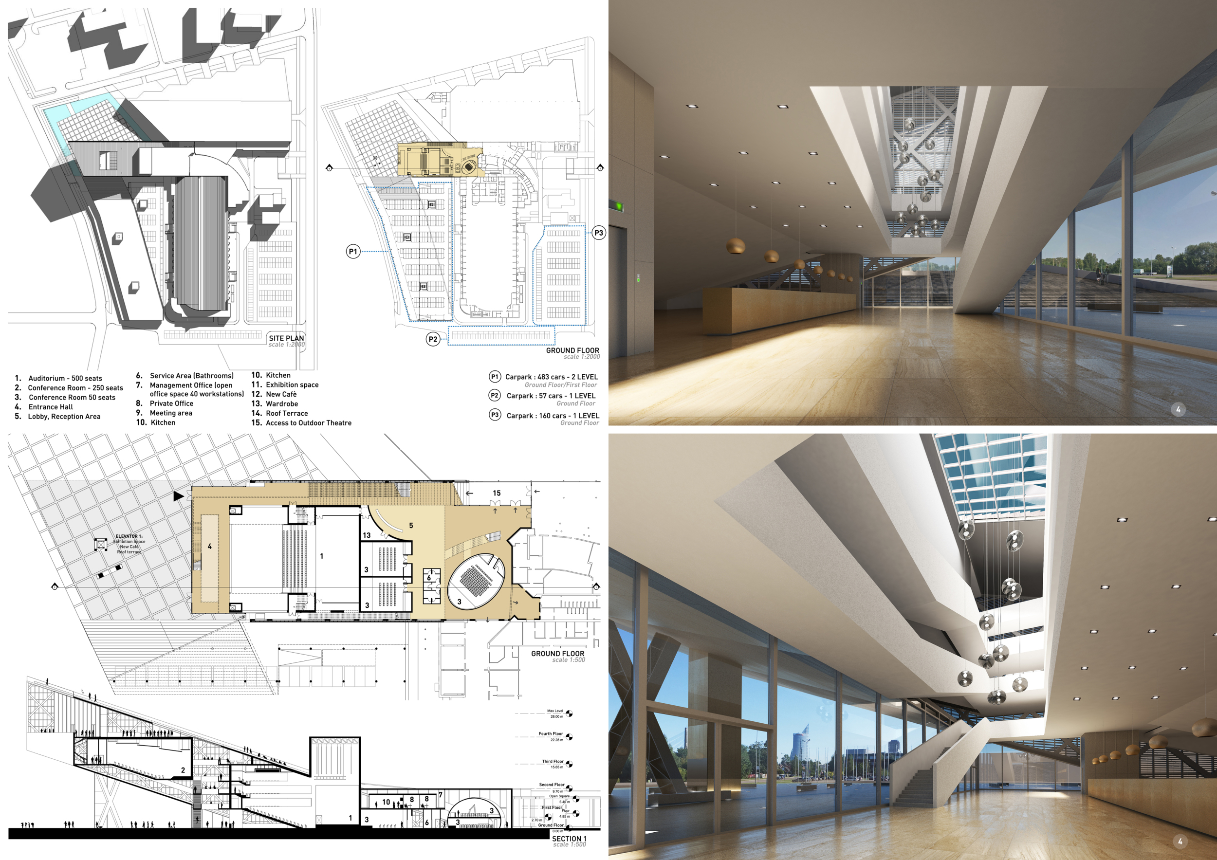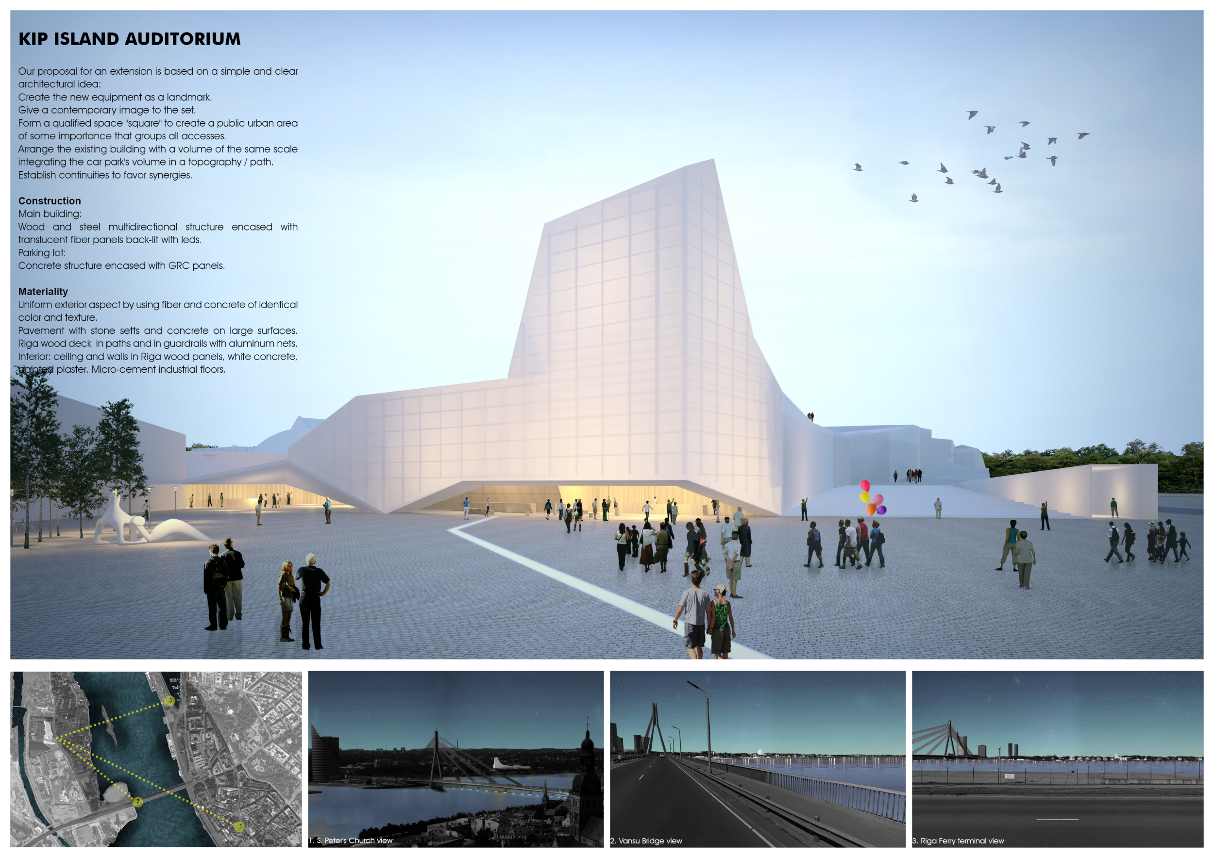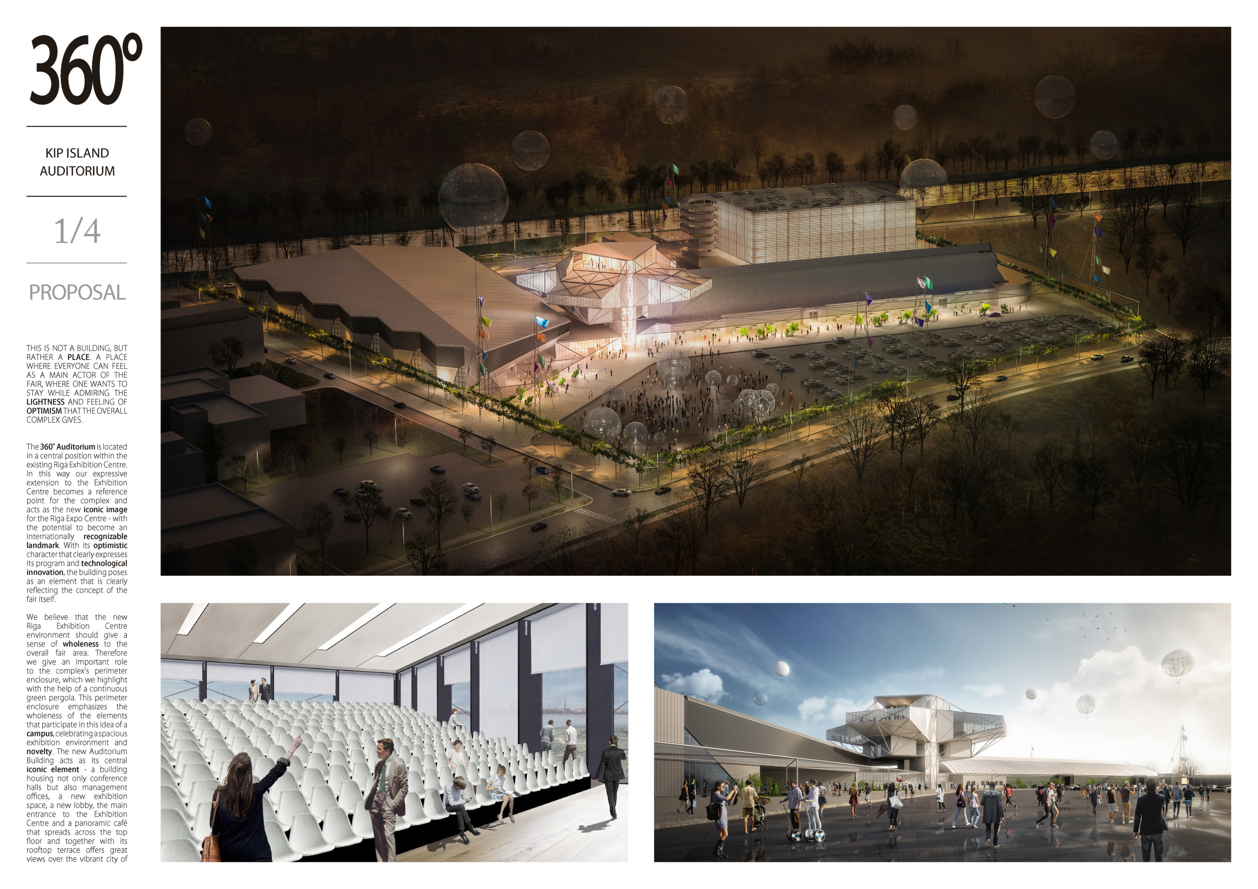 The competition for an auditorium at the Riga International Convention Centre invites critical consideration of an all too often neglected urban function. The importance of this competition arises from its social and cultural circumstance: a reappraisal of the convention center, a somewhat problematic though ubiquitous paradigm in its current form, besmirching the fabric of many contemporary cities.
