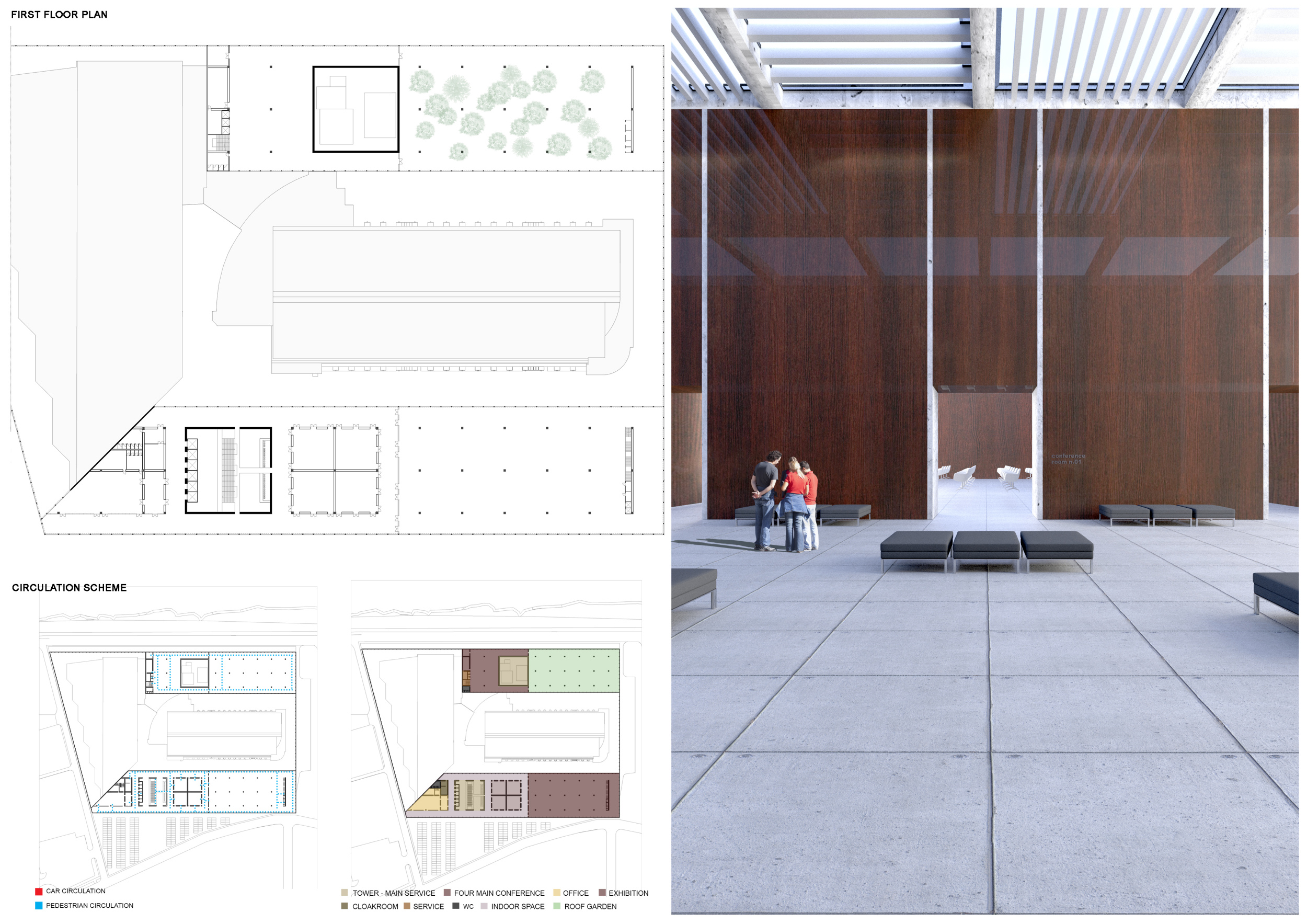 The competition demands a well considered alternative to sprawling multi-block exhibition structures of the last quarter century, precedented by car parks and urban reclusion.
