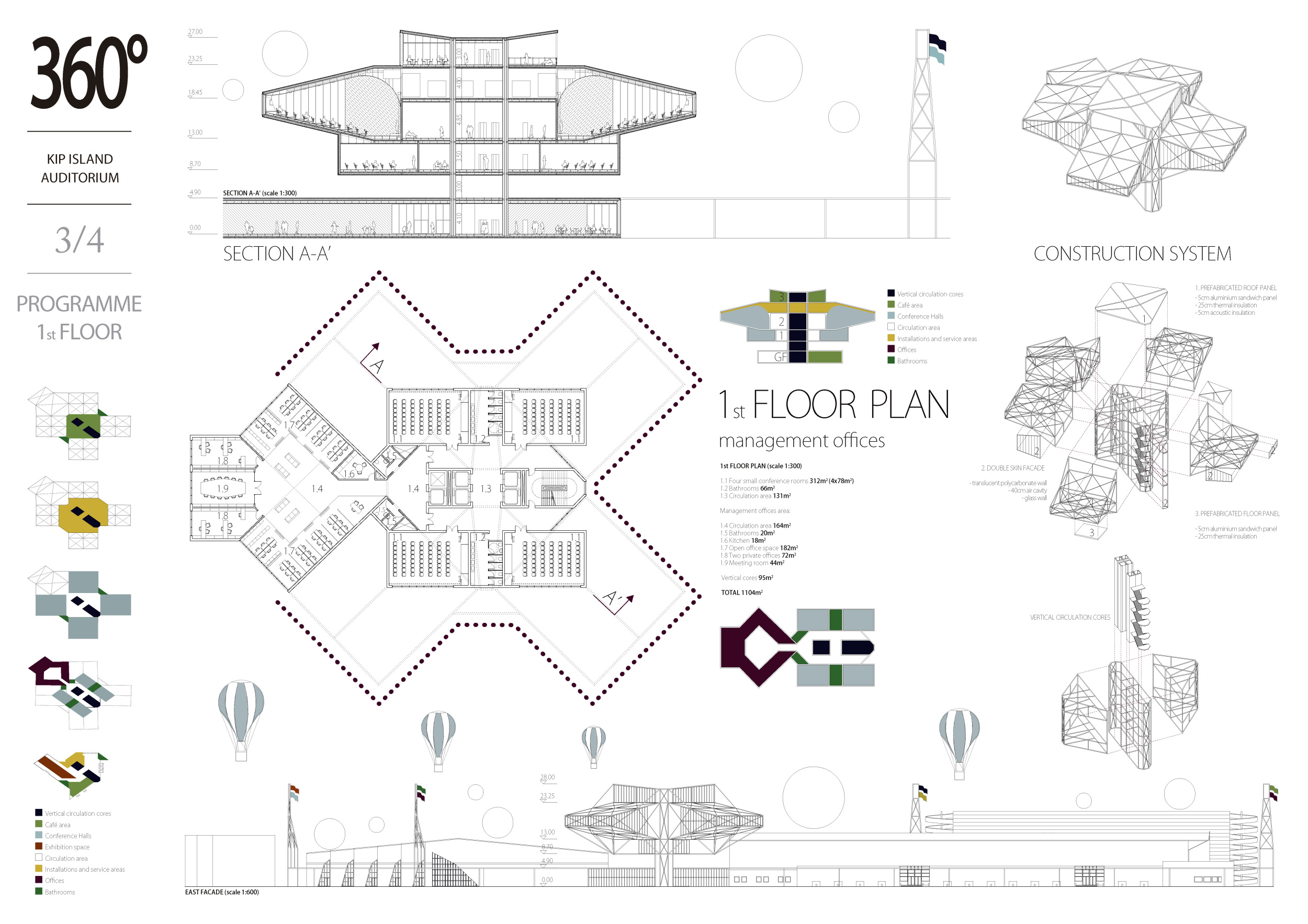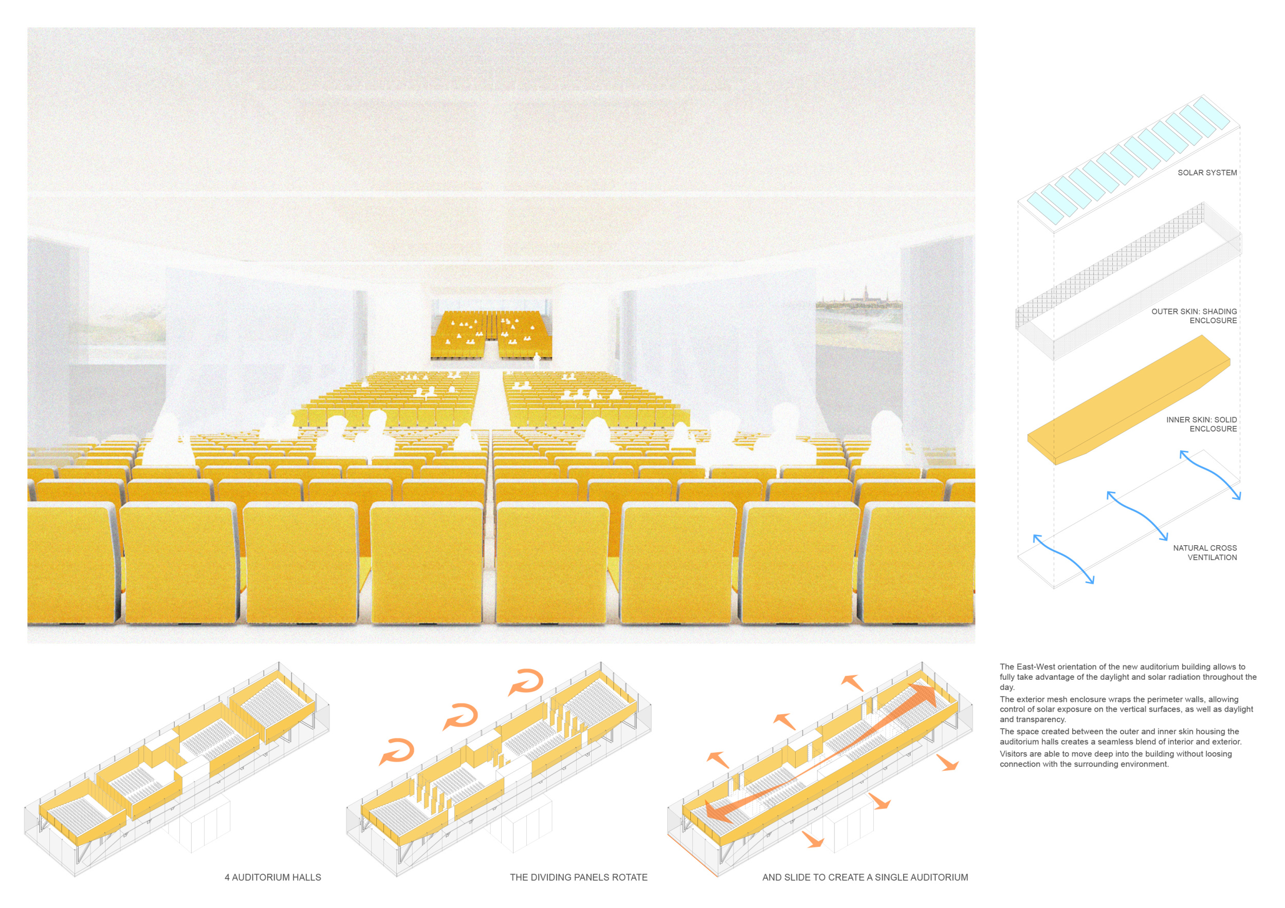 This kind of competitions allows us to concentrate on the new design methods and relationships that could offer new form-type buildings with new uses and promote rapid change in our society. In the case of Kip Island Auditorium, we wanted to study how plans, sections and the building-type-form of a concert hall or an auditorium from the past century have changed to a new direction. Architecture vision competitions are the right place to explore the question of how to combine urban context, program solutions and the way users will interact with the building.