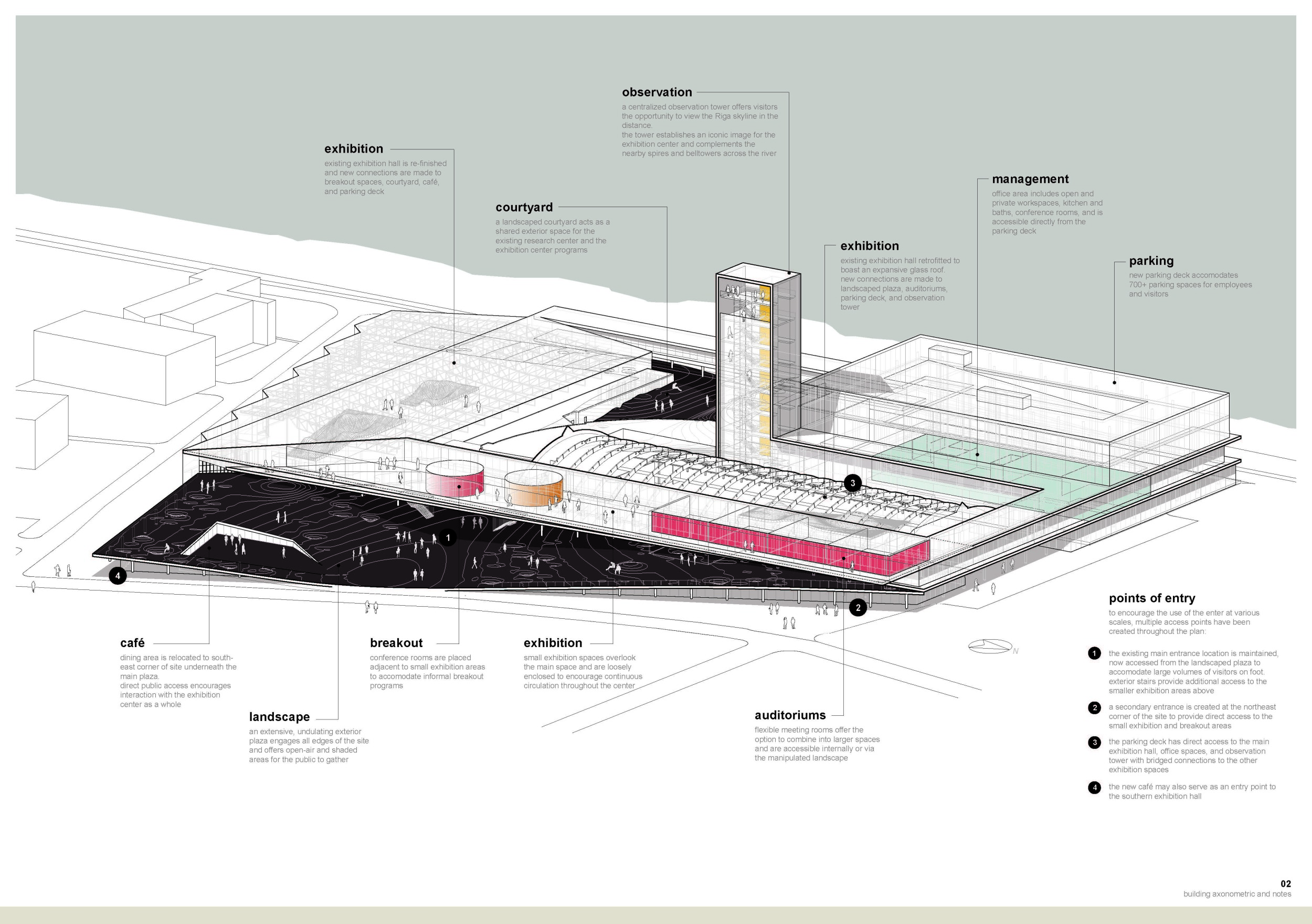 While submissions to the competition varied, successful proposals demonstrated shared characteristics and vision, effectively engaging and integrating disparate elements of both program and site, reinvesting an estranged program in the urban landscape. Selected projects establish a compelling argument to redefine and reestablish the public and civic facility of the contemporary typology for an exhibition center.