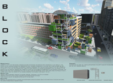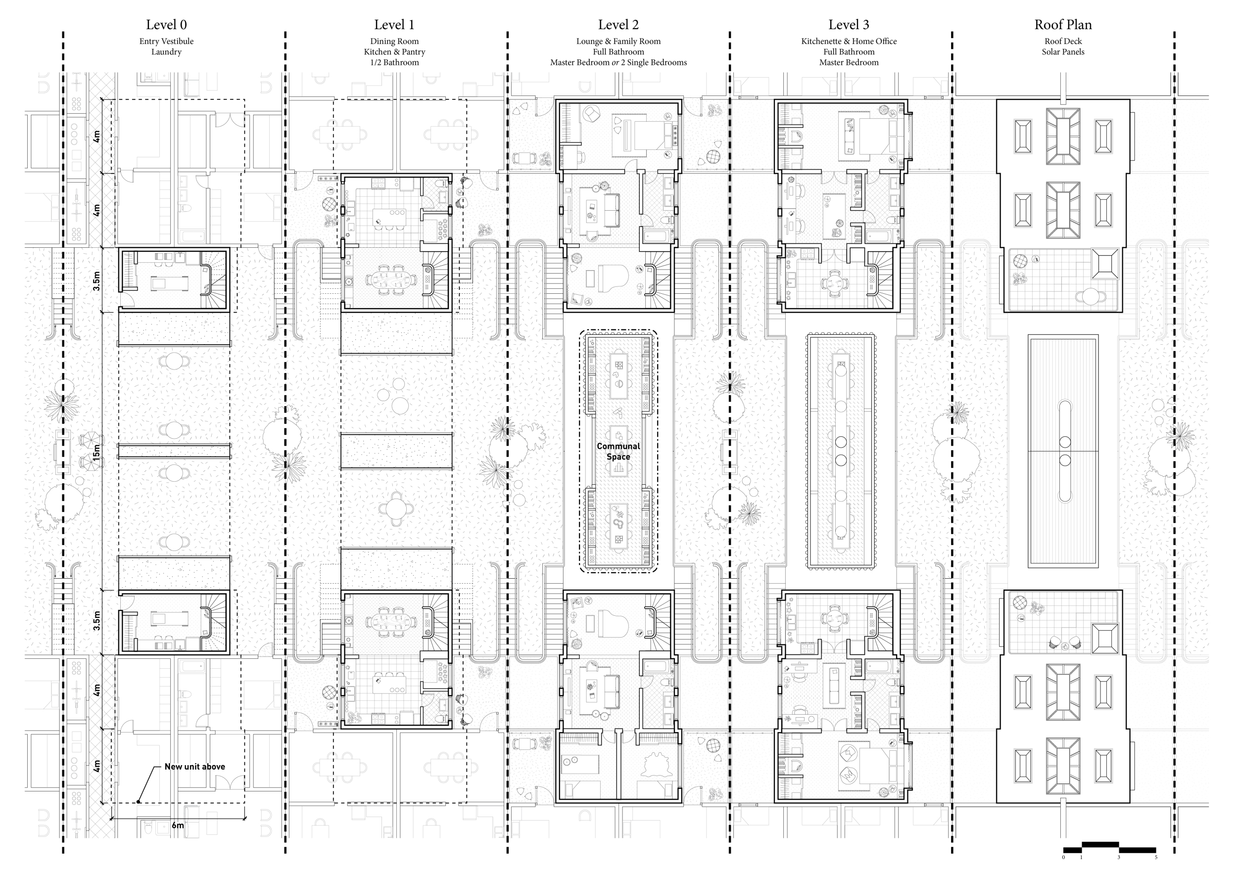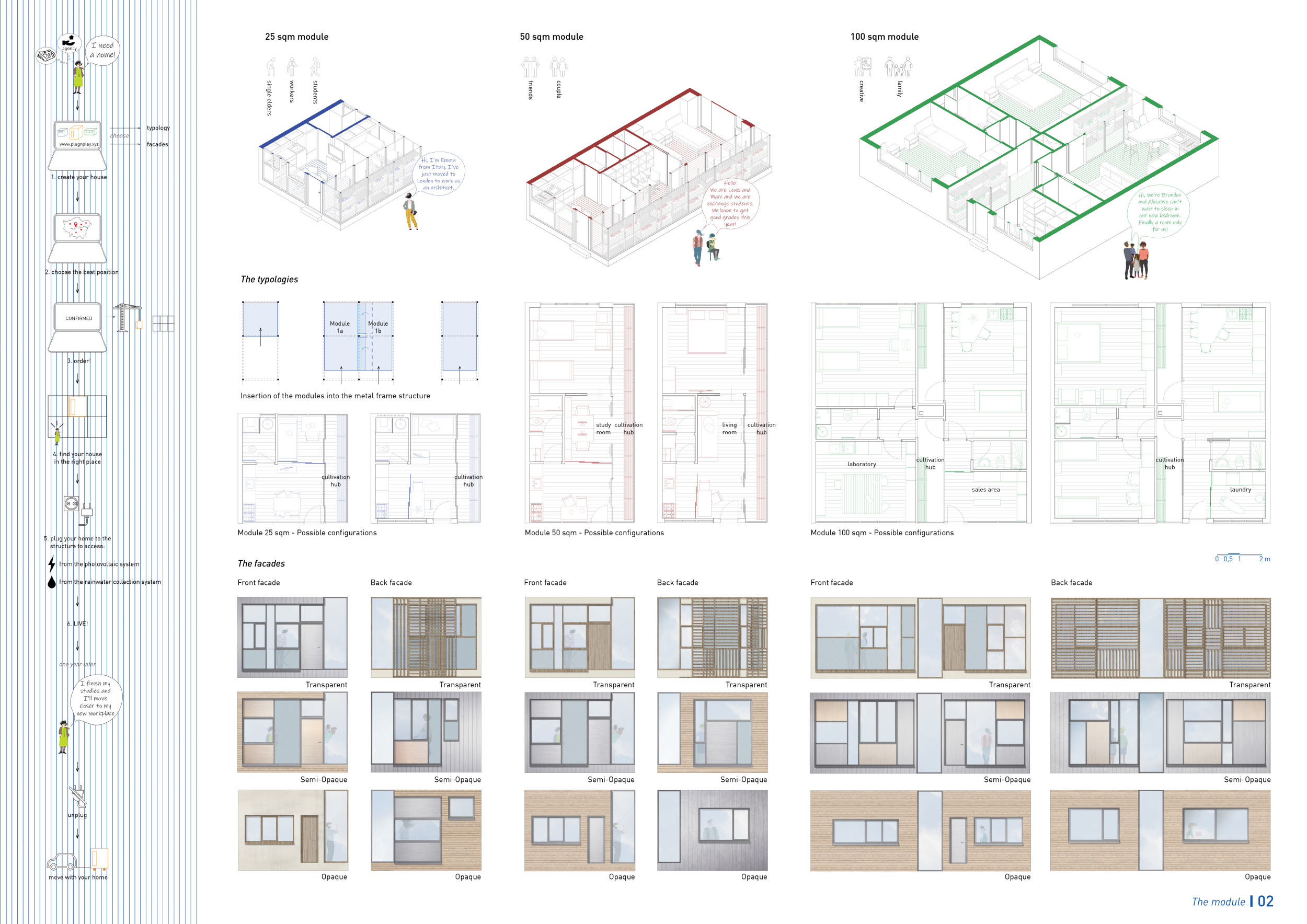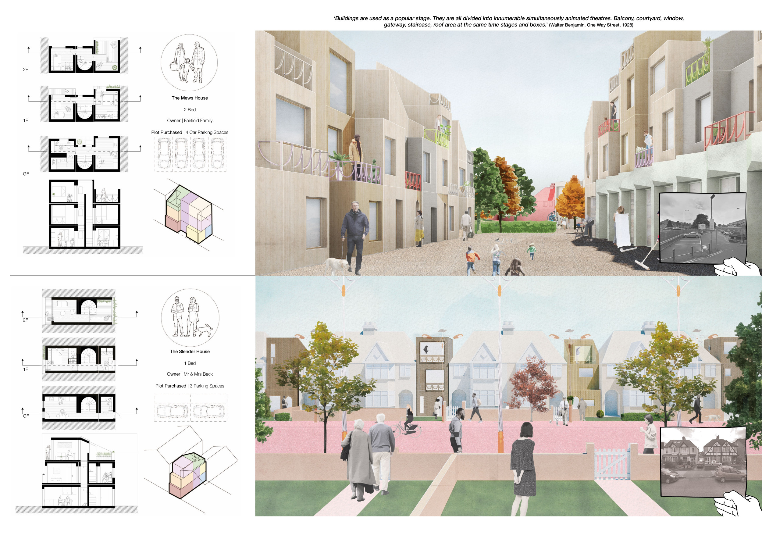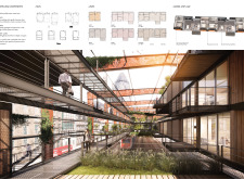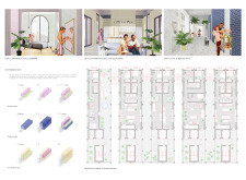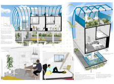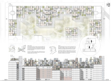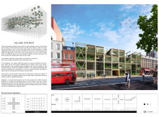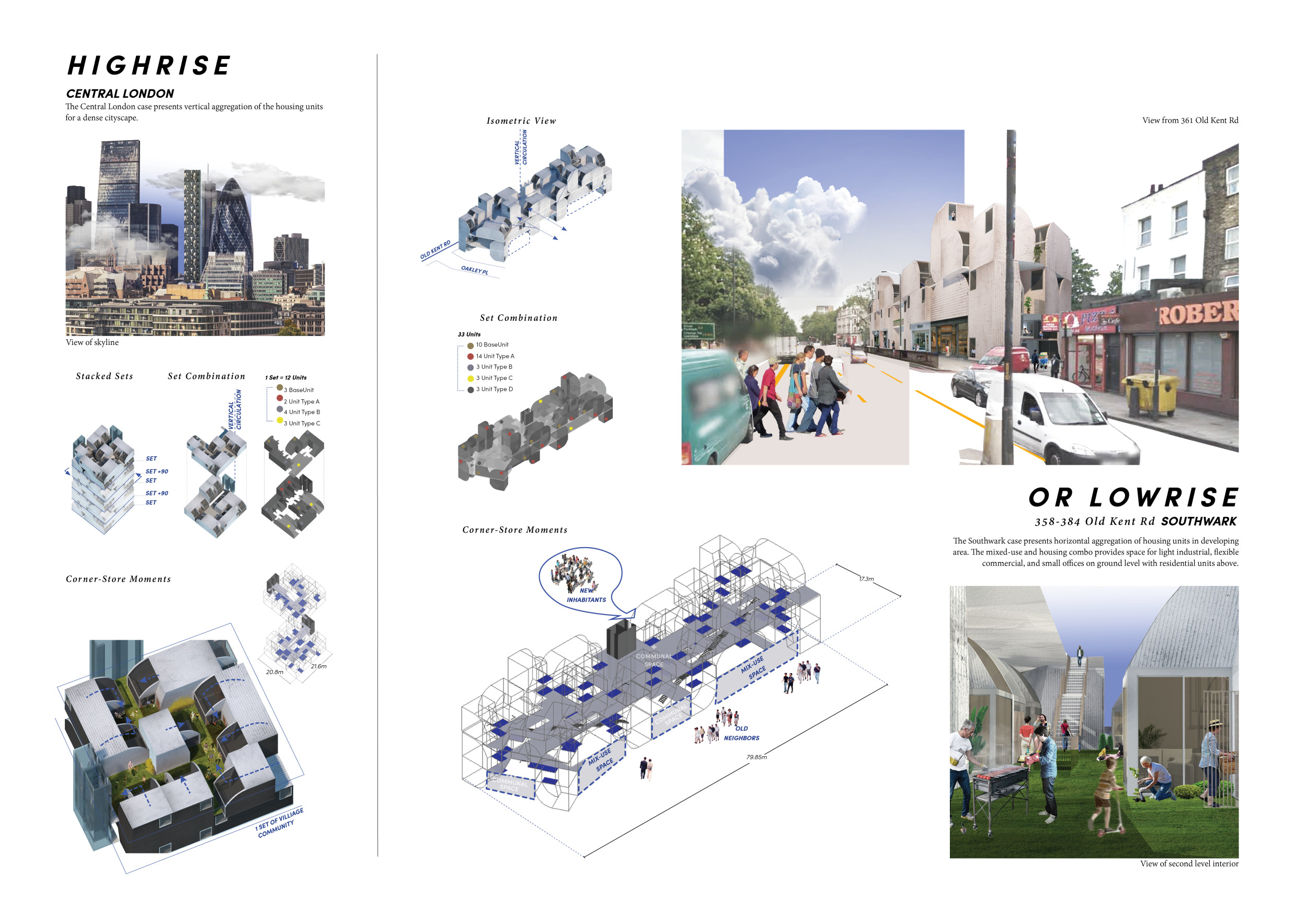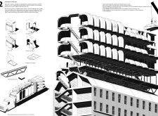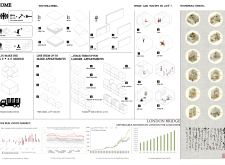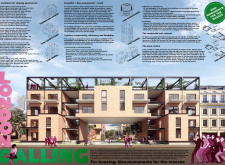 Coliving and cohabitation serve to increase density by reorganizing the layouts of existing buildings for more efficient spaces, and to include shared amenities for larger groups of inhabitants. The designer of this project states: “the real revolution in housing is indoors.” The proposal rearranges the interior layout of a typical london housing block, as the designer claims, to mirror the growing variety of job positions and of family arrangements.