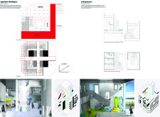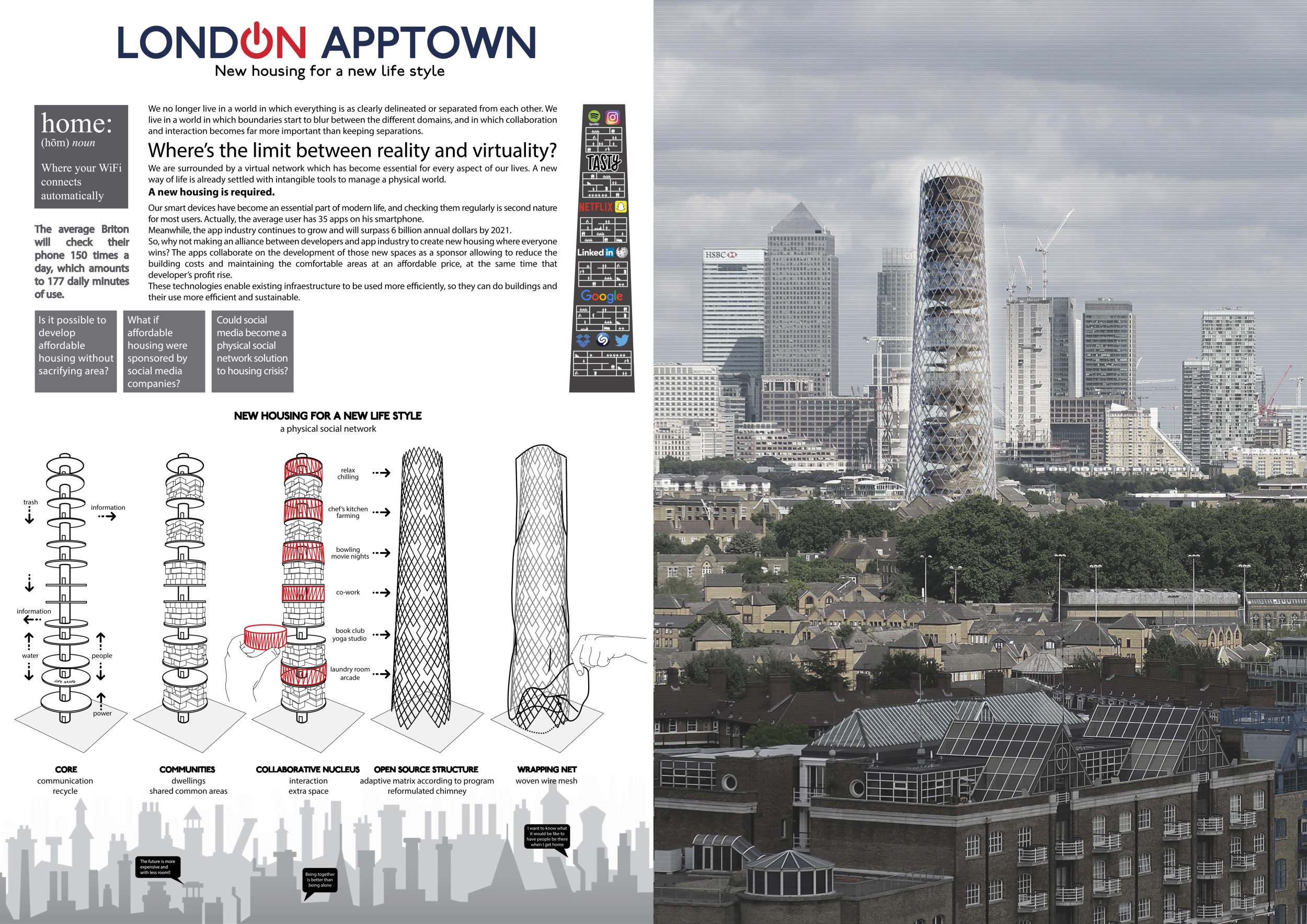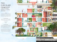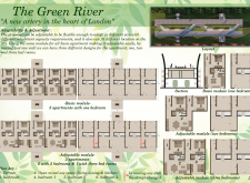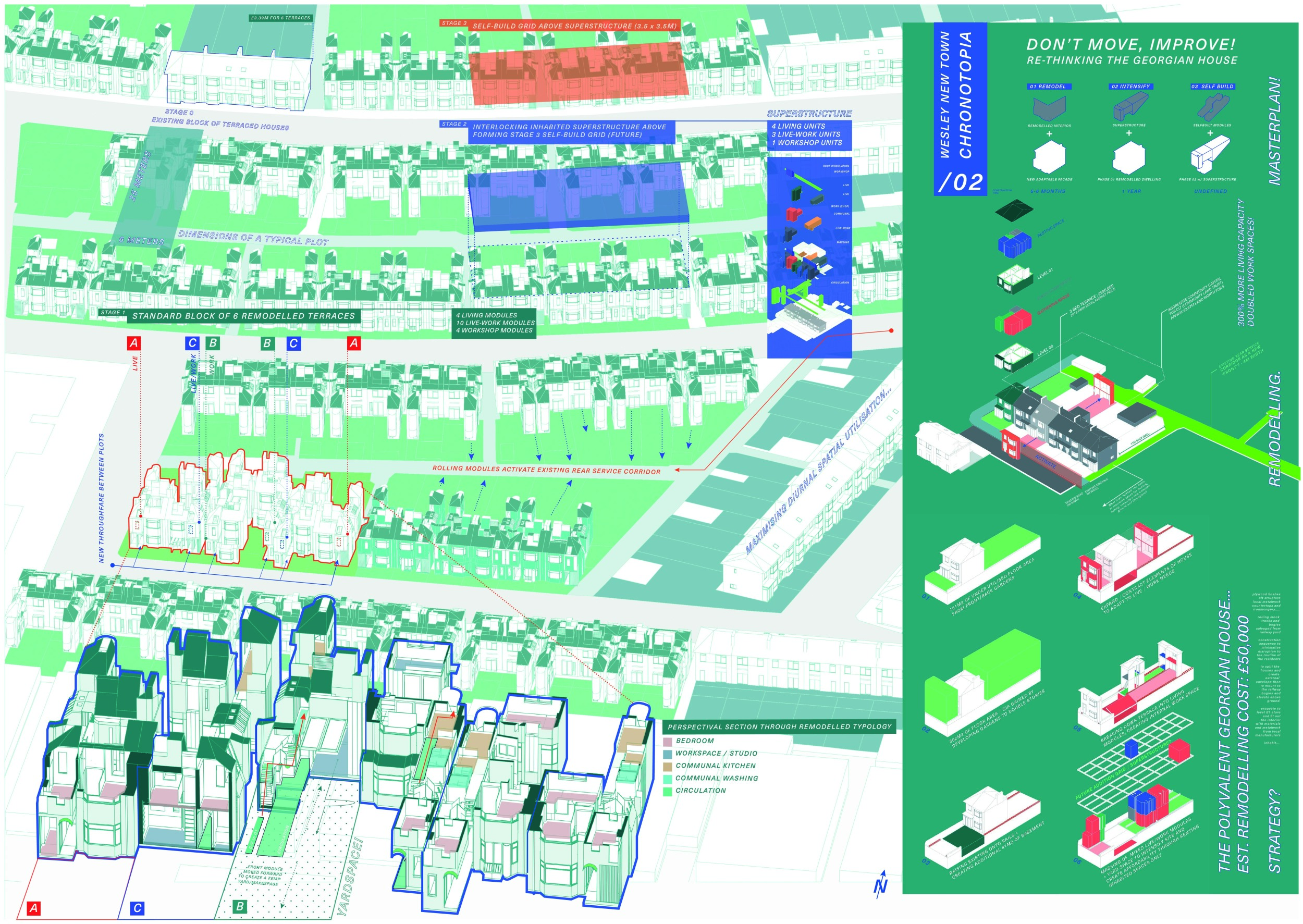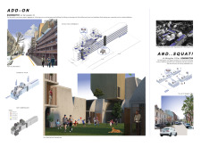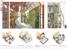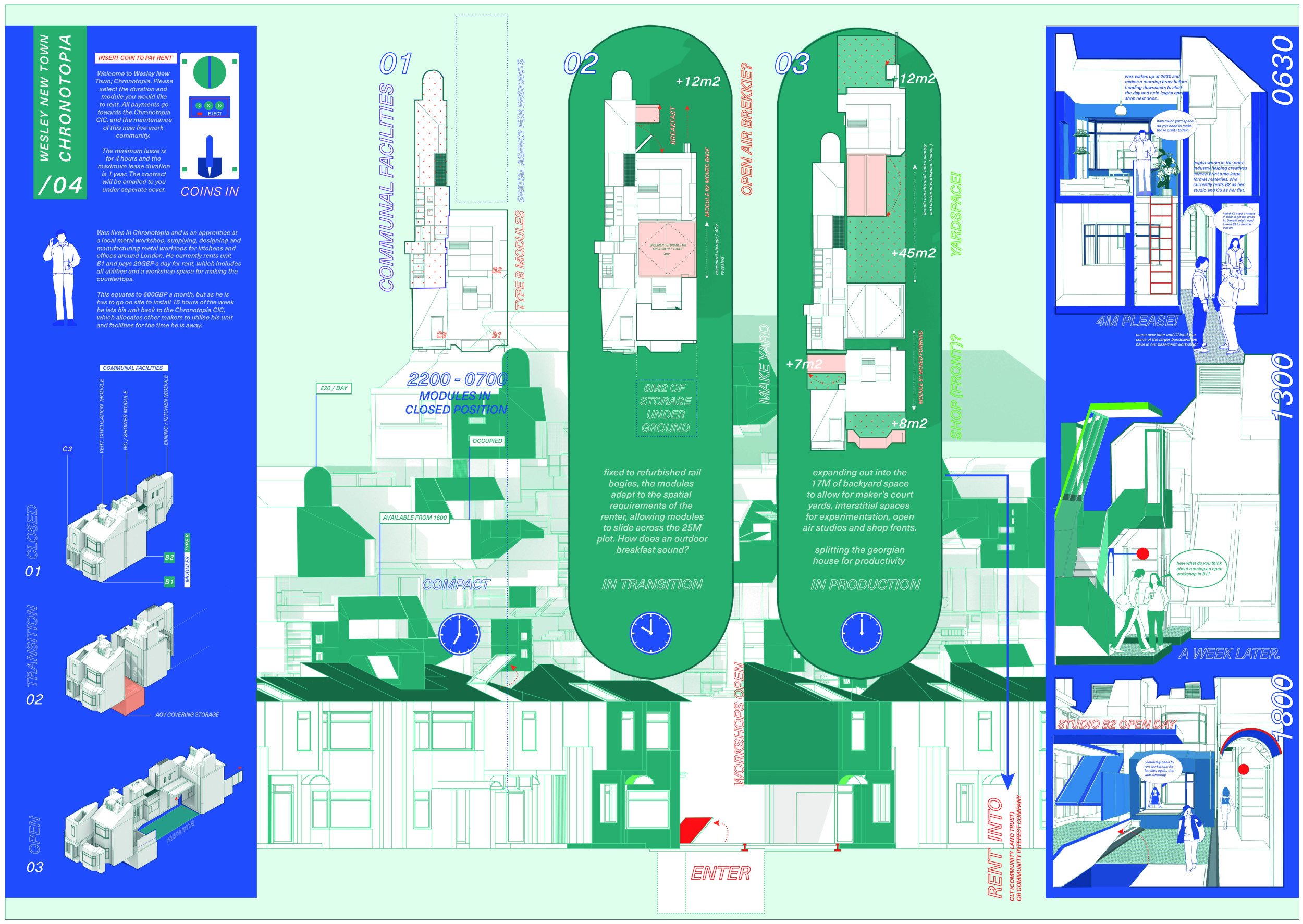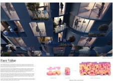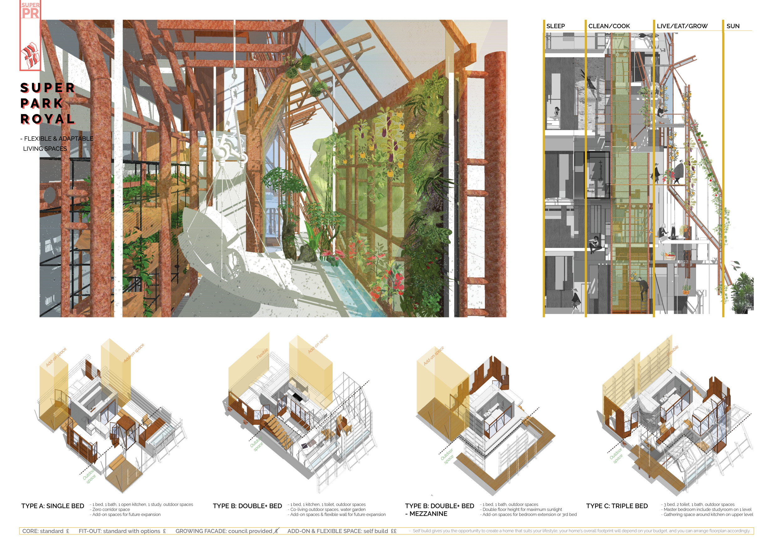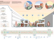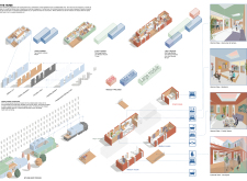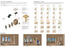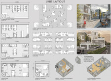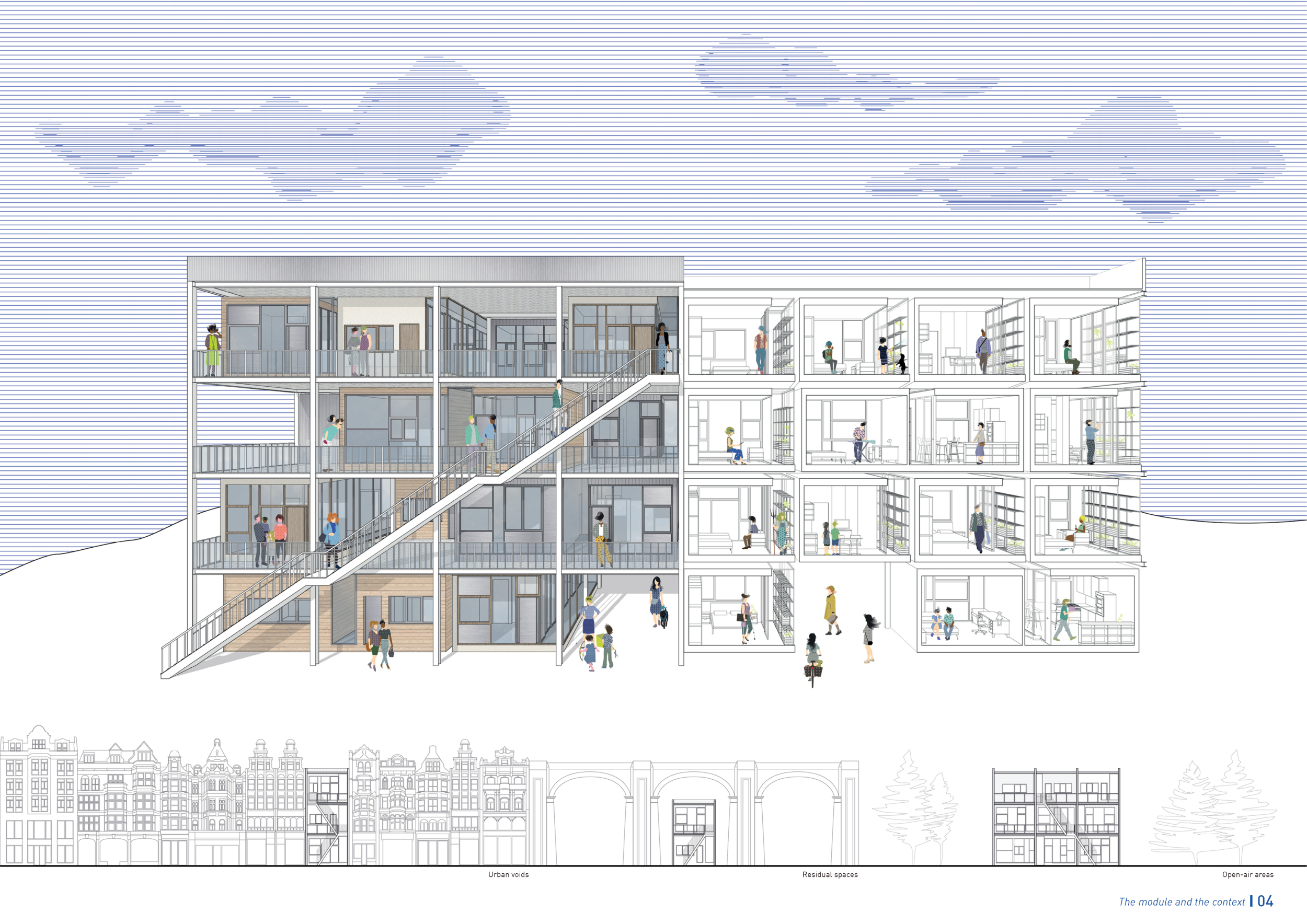 Coliving and cohabitation serve to increase density by reorganizing the layouts of existing buildings for more efficient spaces, and to include shared amenities for larger groups of inhabitants. The designer of this project states: “the real revolution in housing is indoors.” The proposal rearranges the interior layout of a typical london housing block, as the designer claims, to mirror the growing variety of job positions and of family arrangements.
