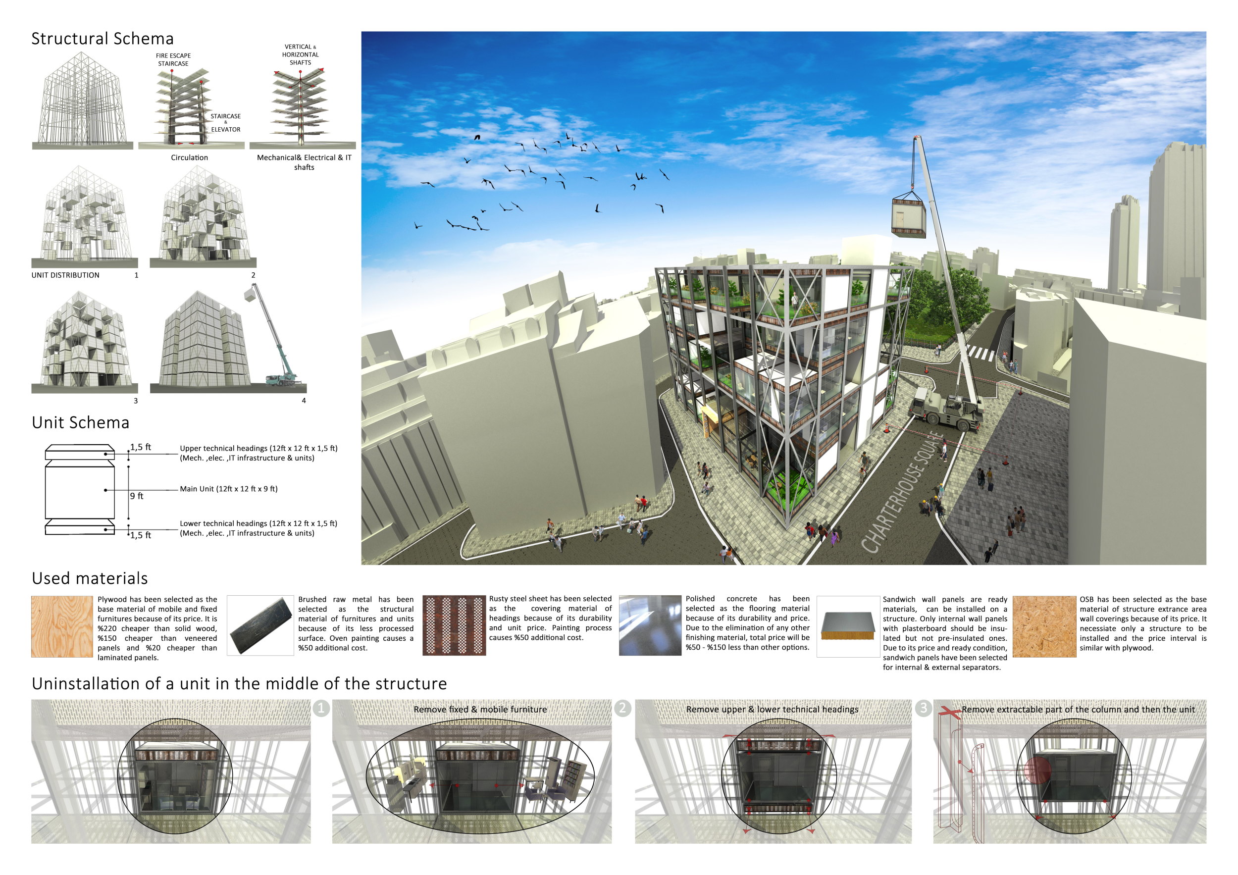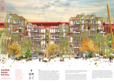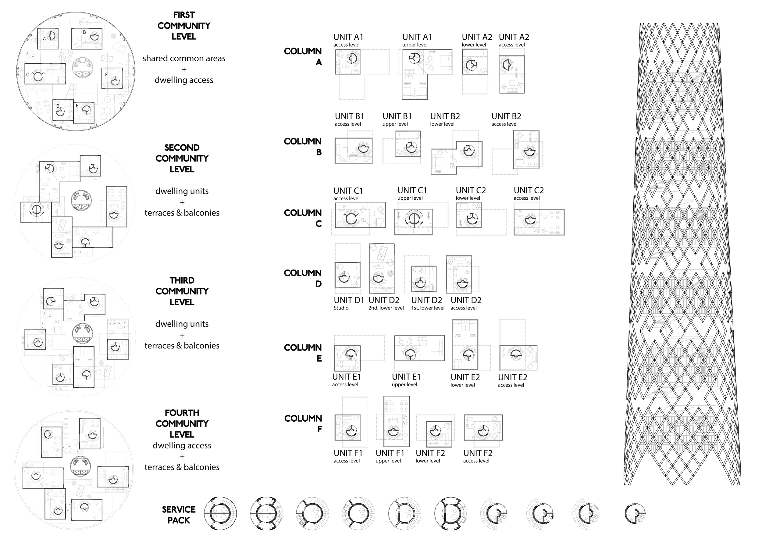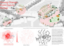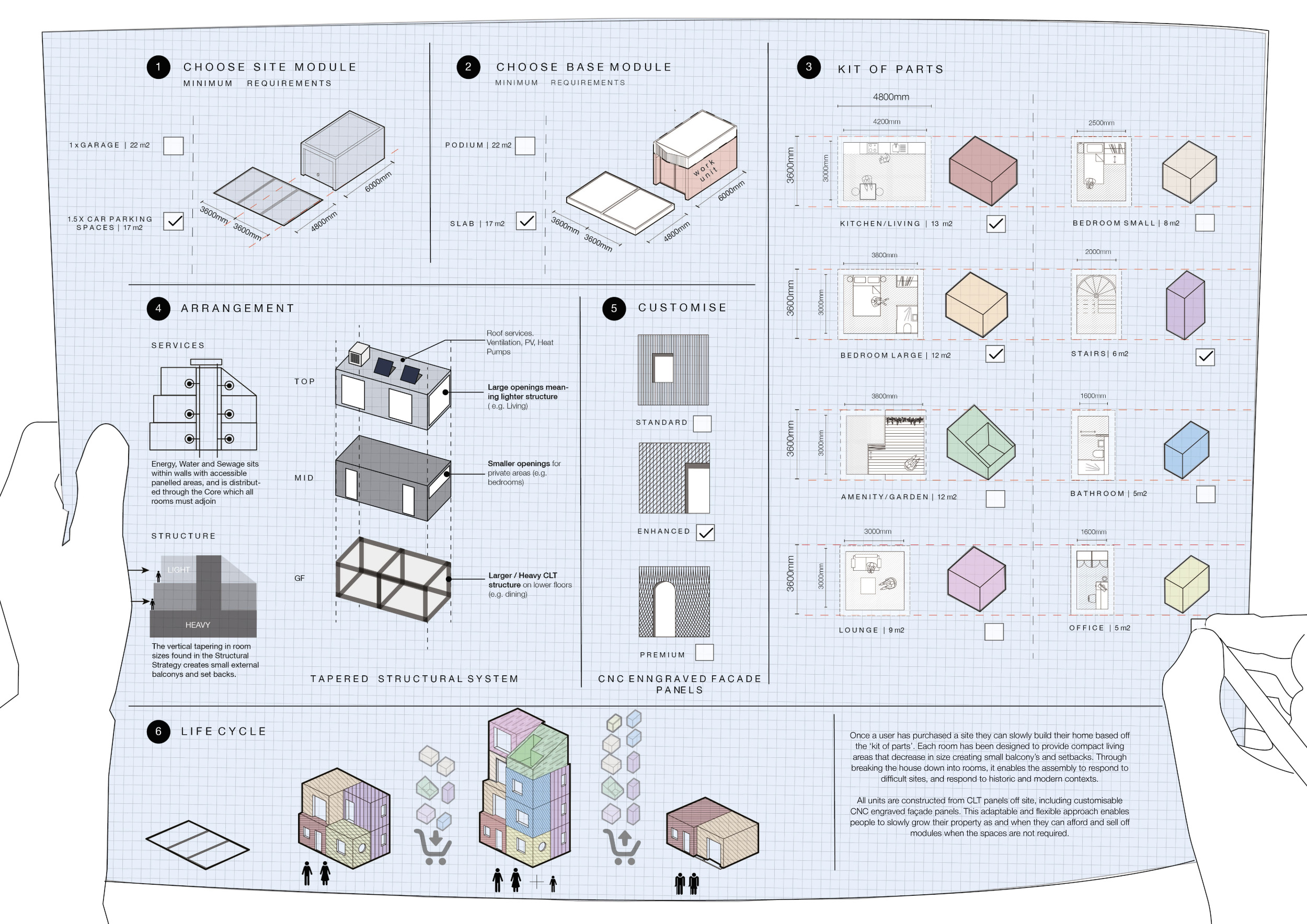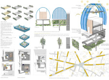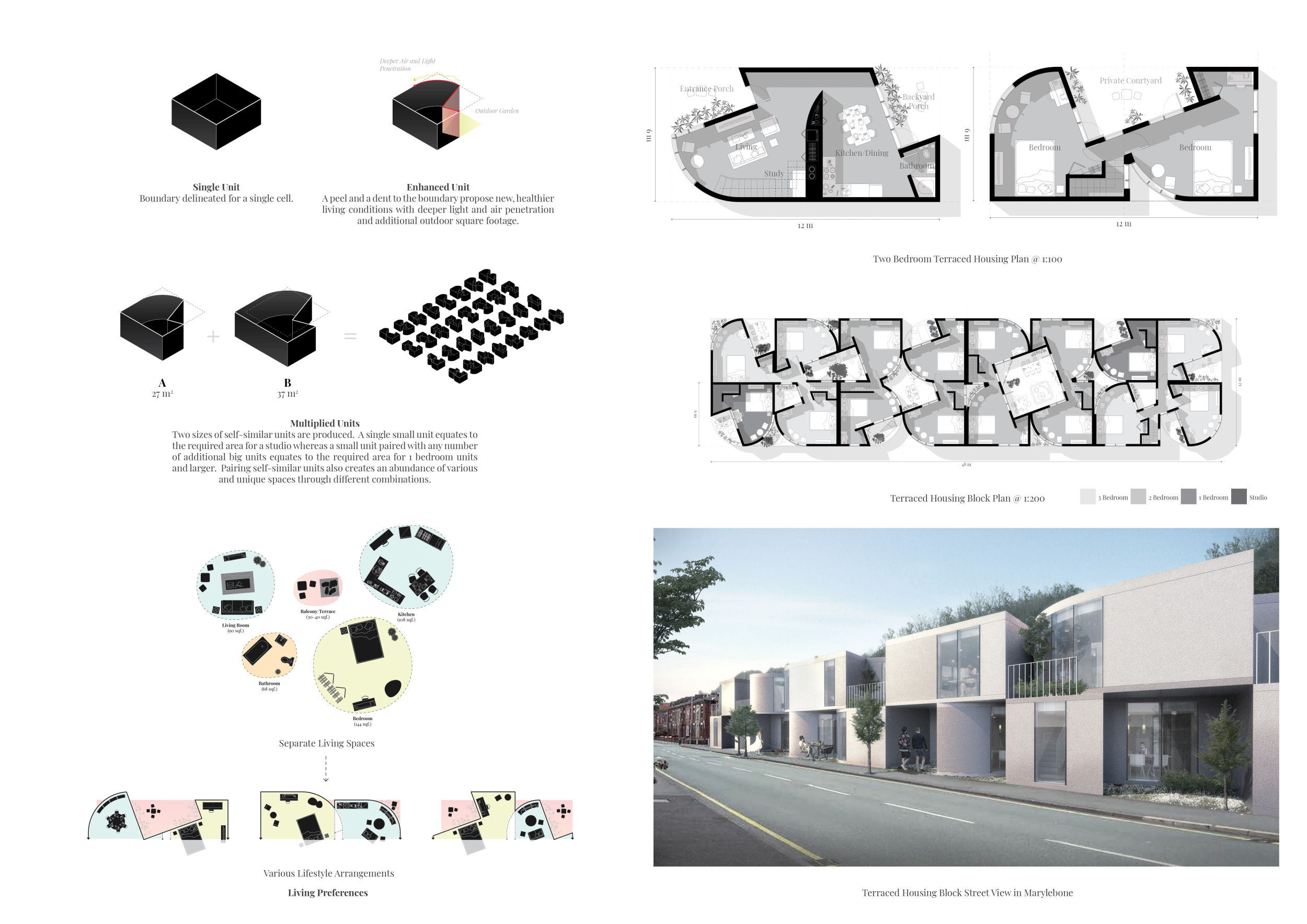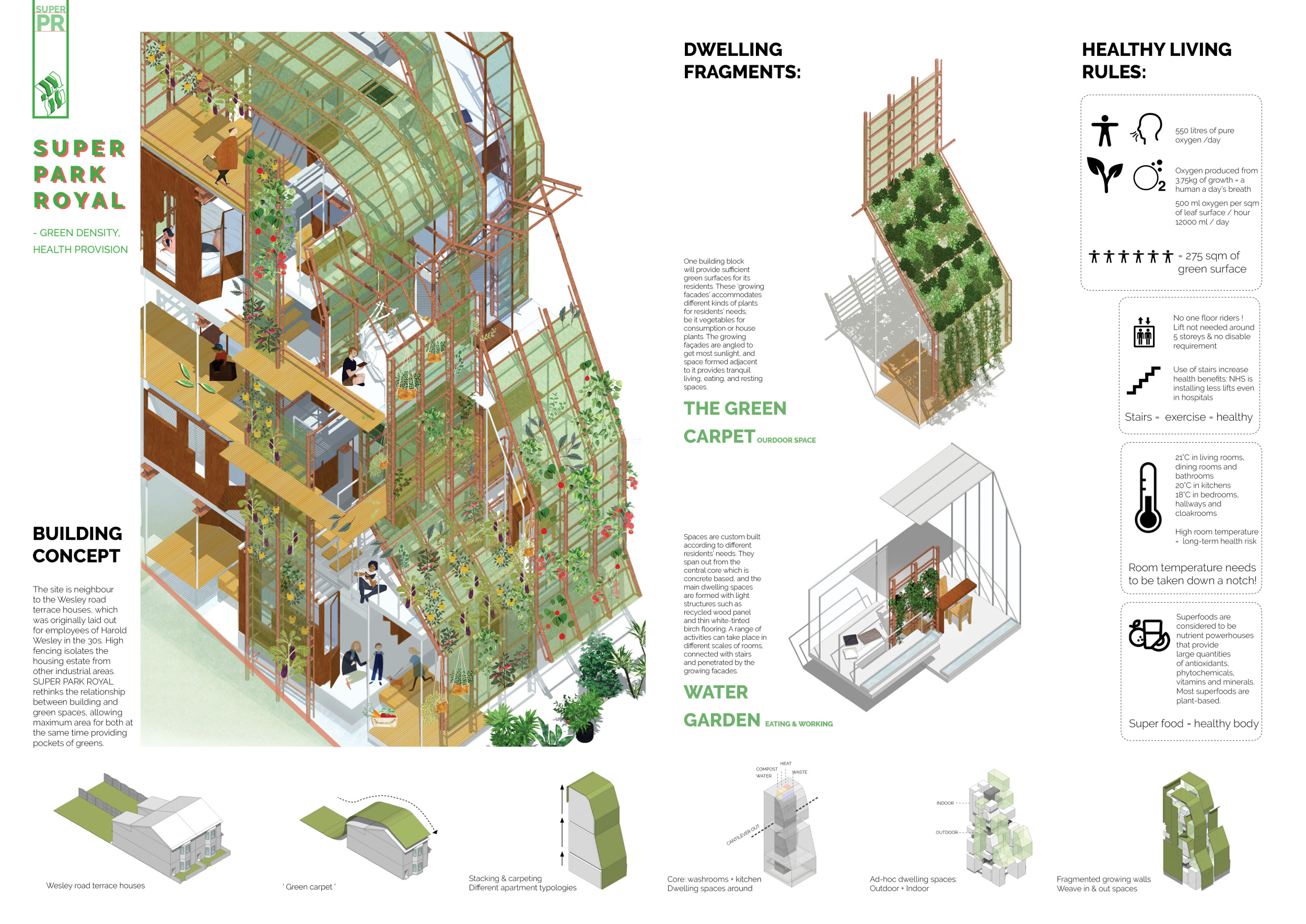 Coliving and cohabitation serve to increase density by reorganizing the layouts of existing buildings for more efficient spaces, and to include shared amenities for larger groups of inhabitants. The designer of this project states: “the real revolution in housing is indoors.” The proposal rearranges the interior layout of a typical london housing block, as the designer claims, to mirror the growing variety of job positions and of family arrangements.