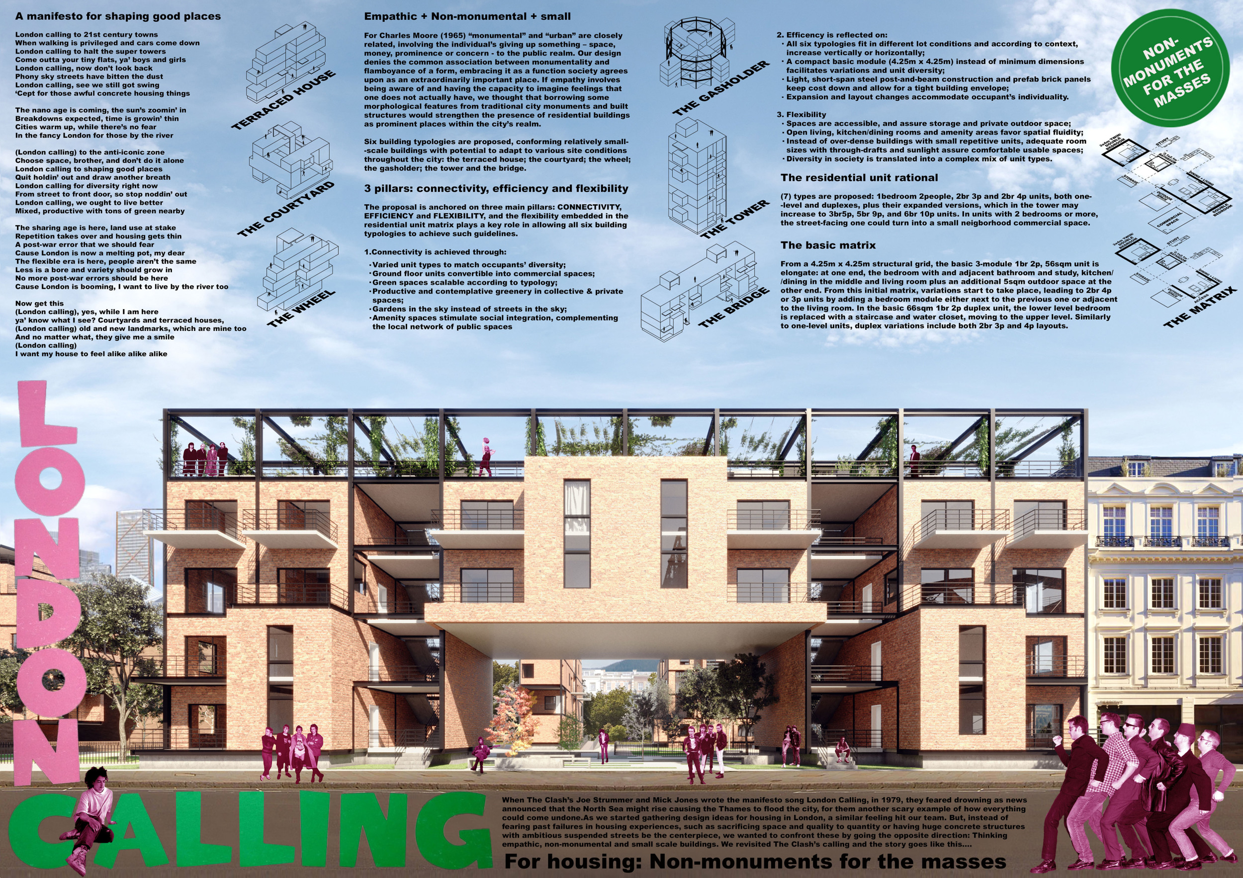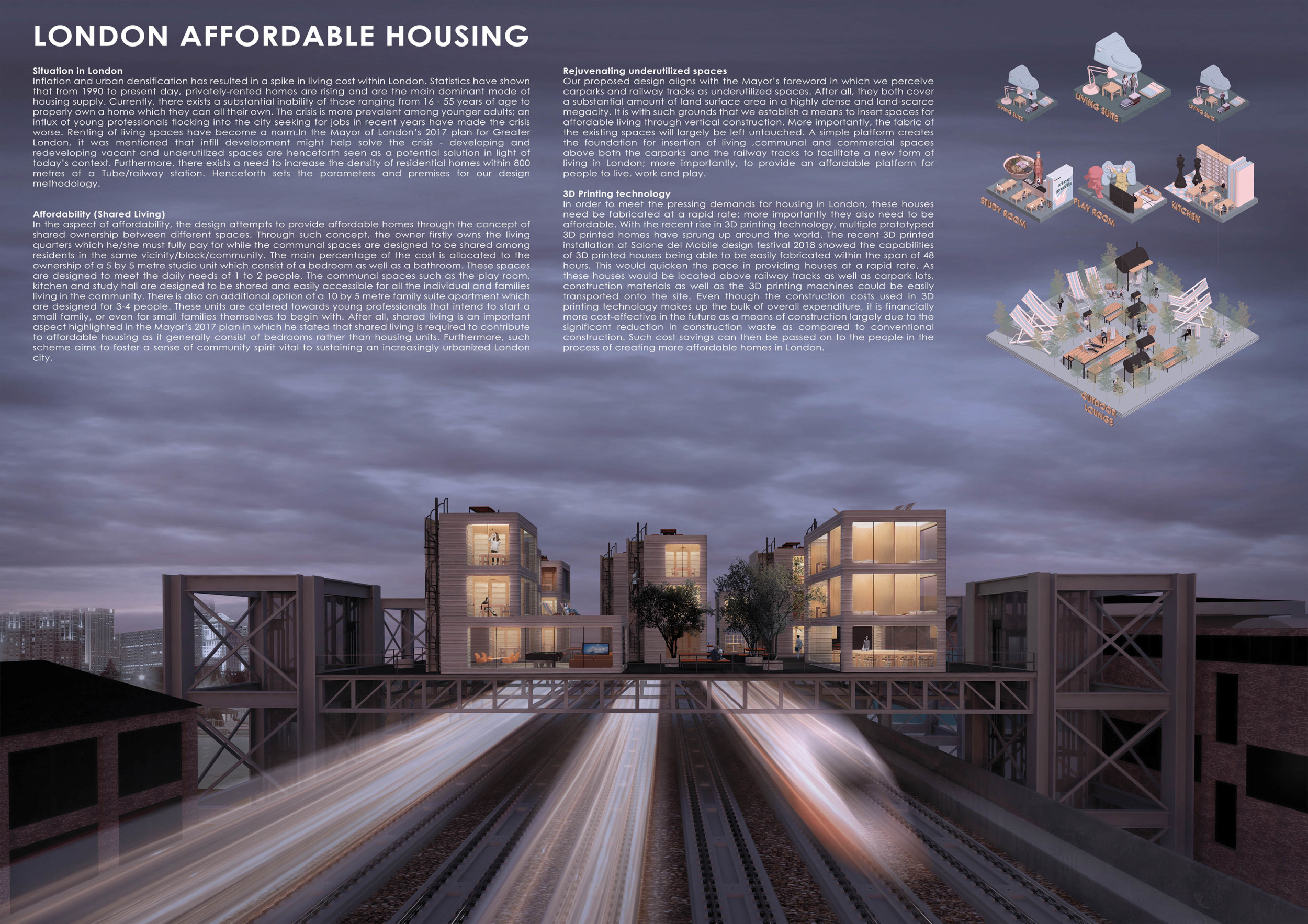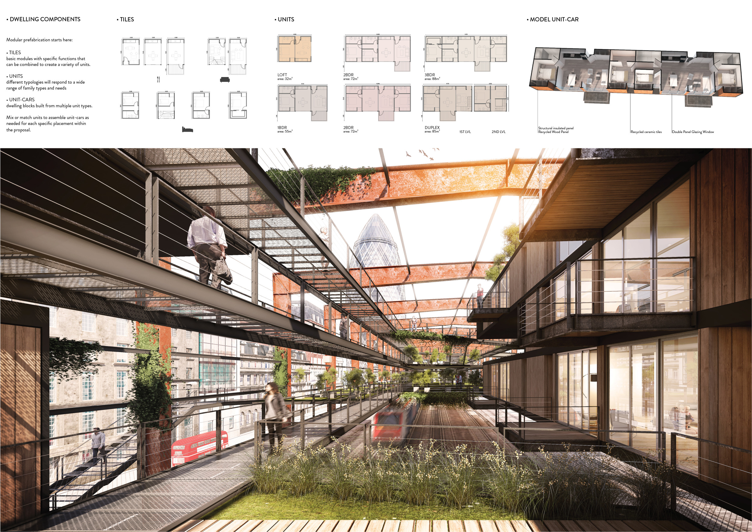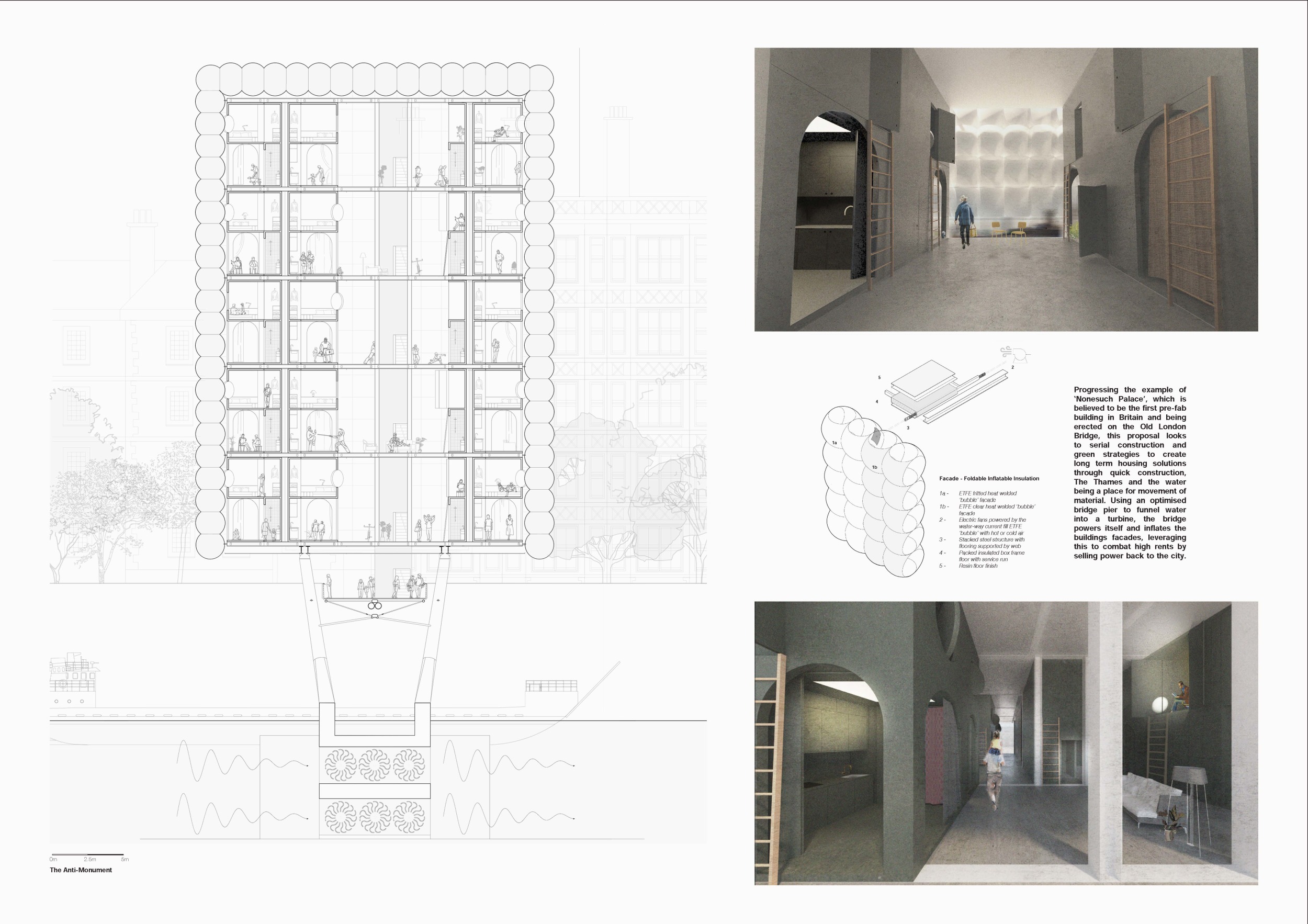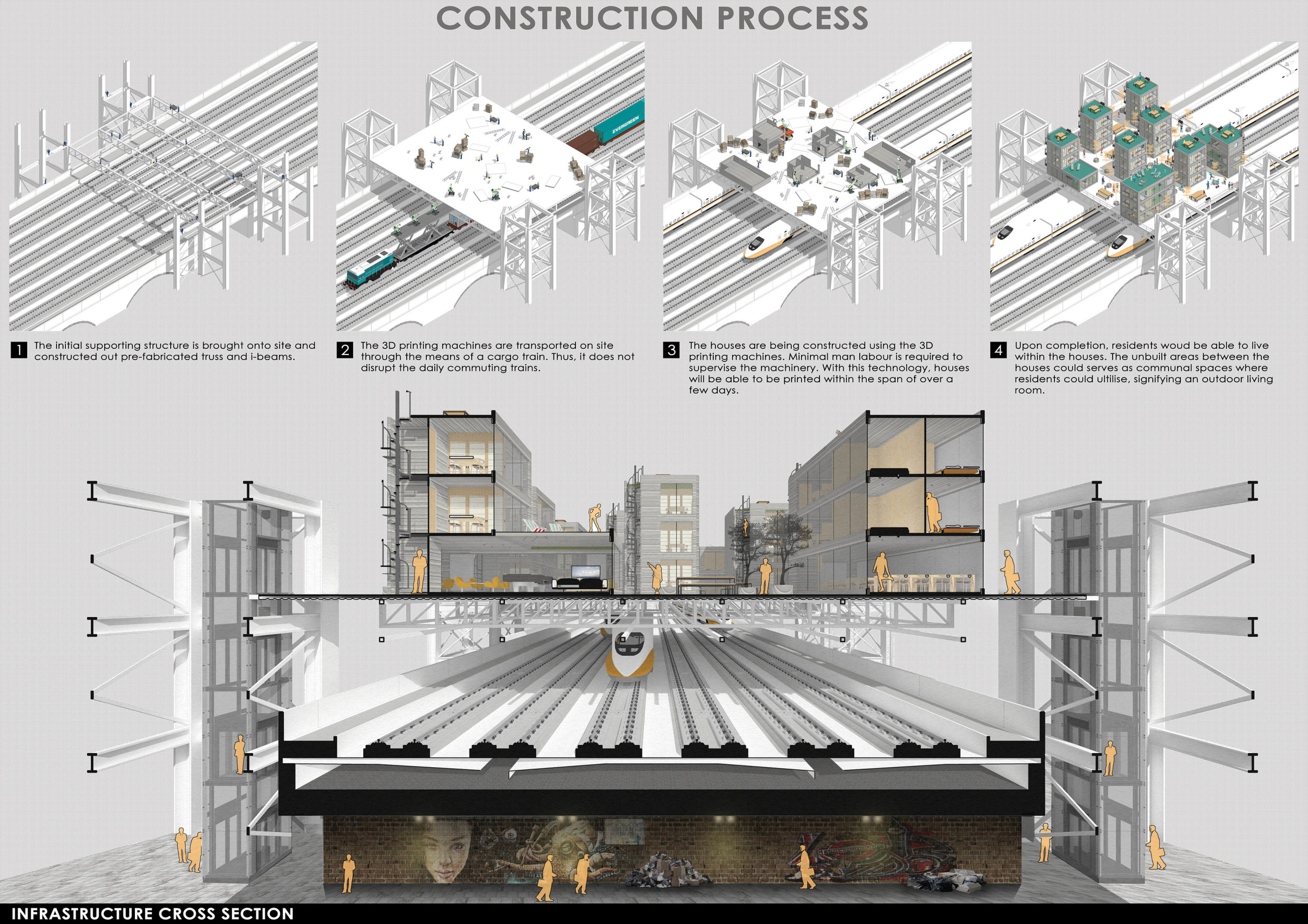 A range of ideas were submitted, some realistic and others conceptual. Common themes that were investigated include: methods of increasing density within the existing building stock; using shared or state-owned spaces like rivers, highways, bridges, train tracks, and even Buckingham Palace, to construct new housing above, below, or within; reworking low-density building types like warehouses and industrial spaces; and reintroducing alternative methods for land ownership, like community land trusts.