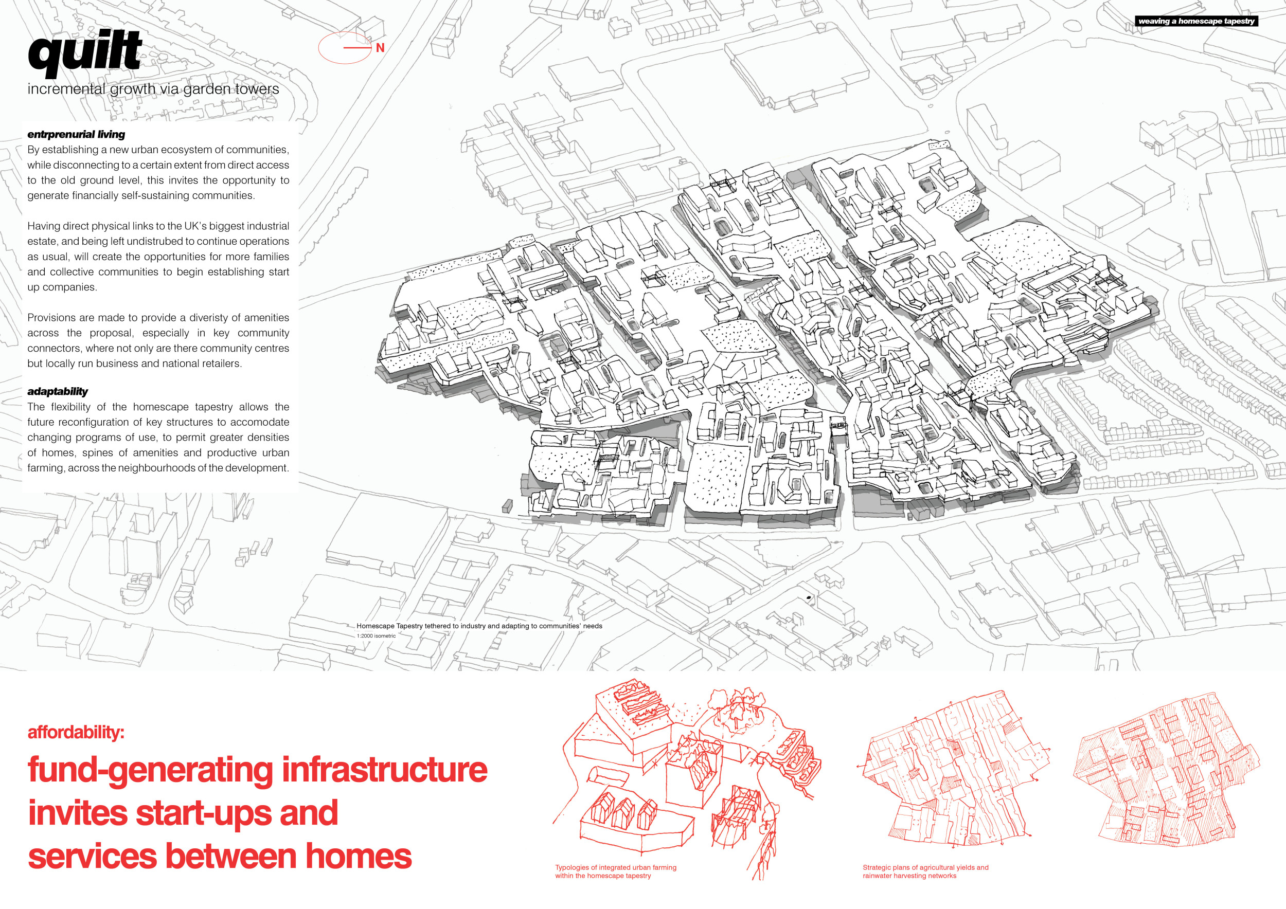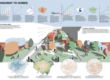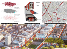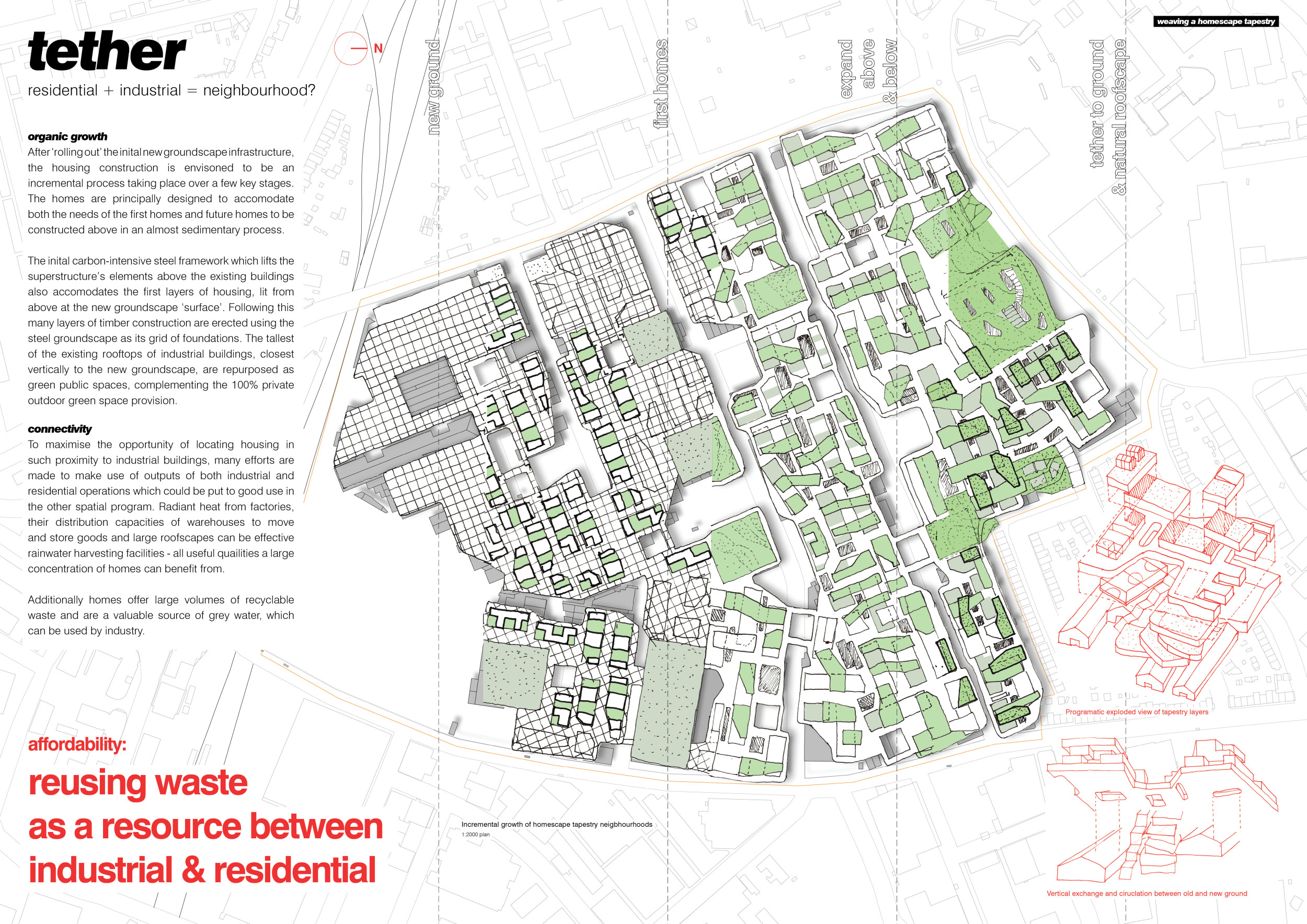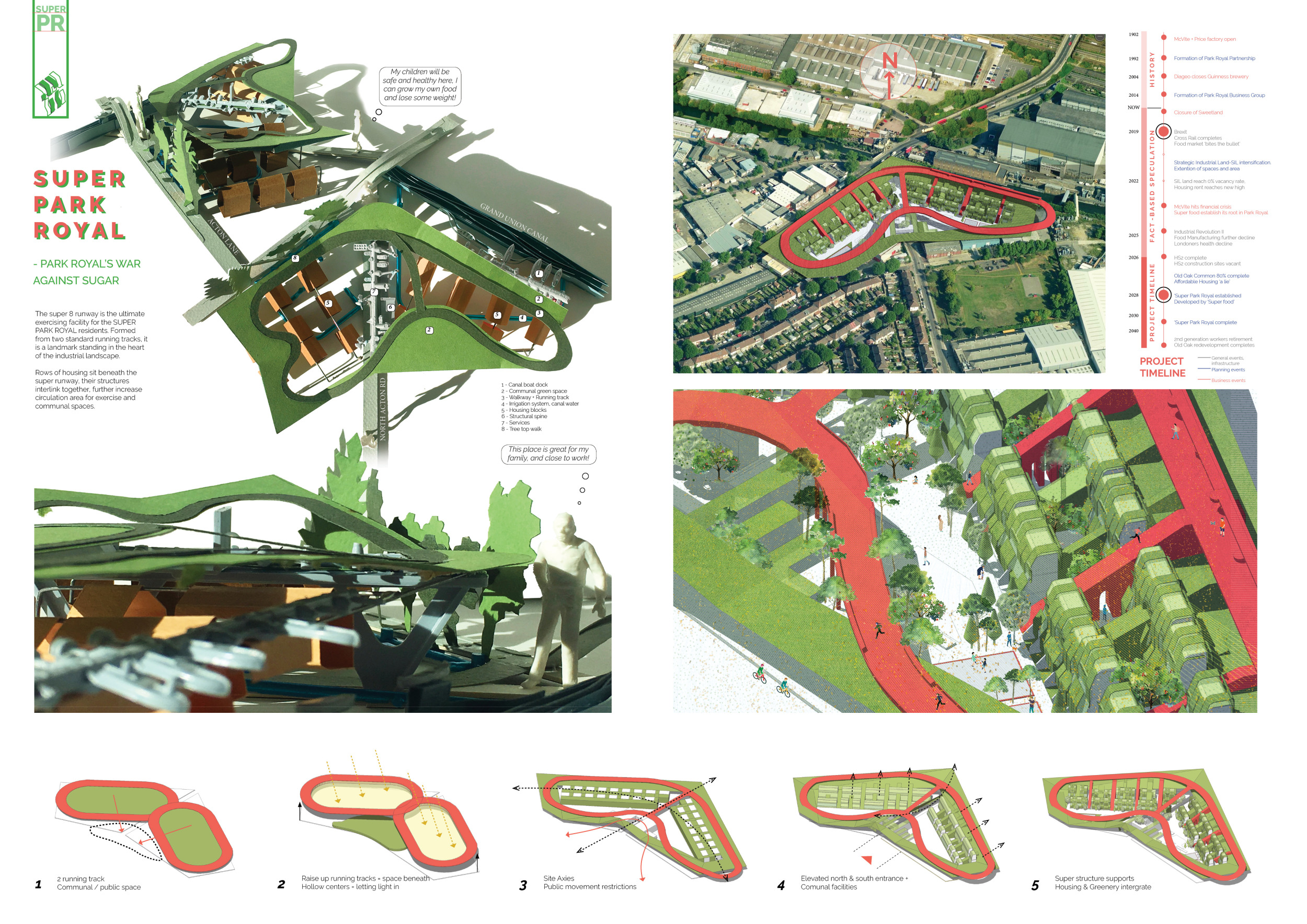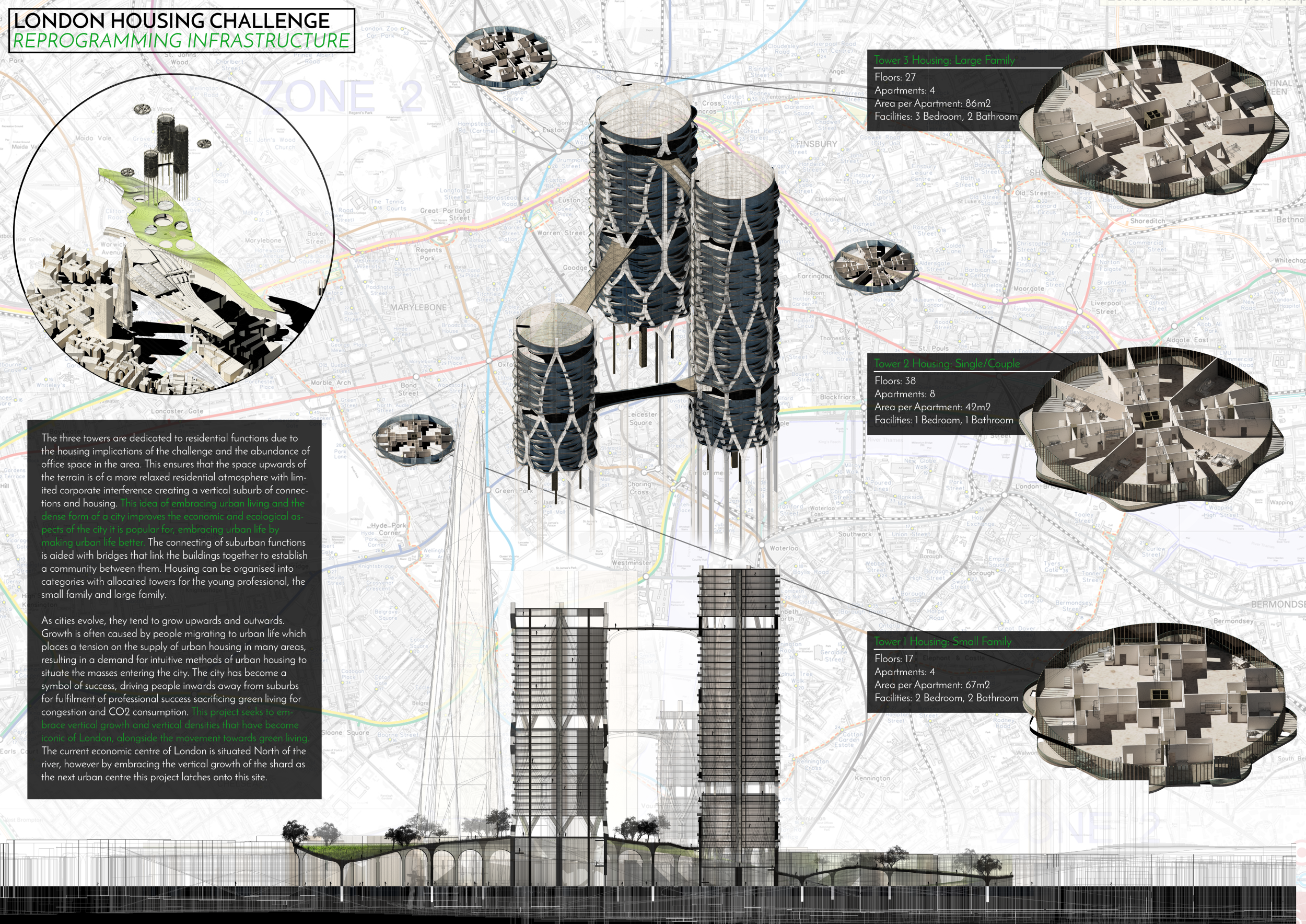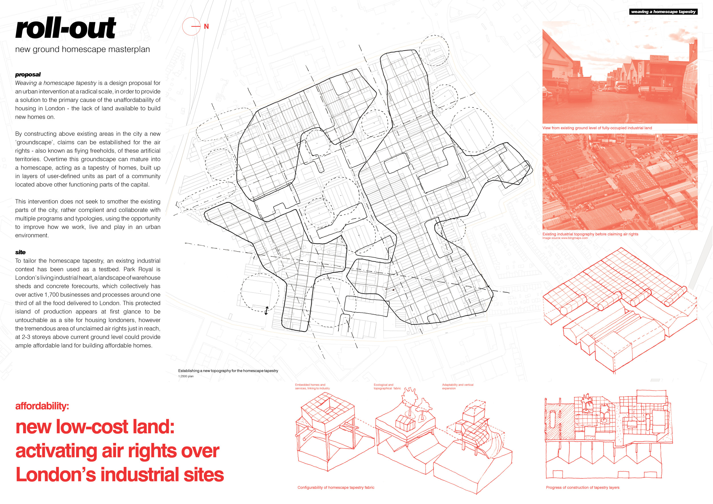 A range of ideas were submitted, some realistic and others conceptual. Common themes that were investigated include: methods of increasing density within the existing building stock; using shared or state-owned spaces like rivers, highways, bridges, train tracks, and even Buckingham Palace, to construct new housing above, below, or within; reworking low-density building types like warehouses and industrial spaces; and reintroducing alternative methods for land ownership, like community land trusts.